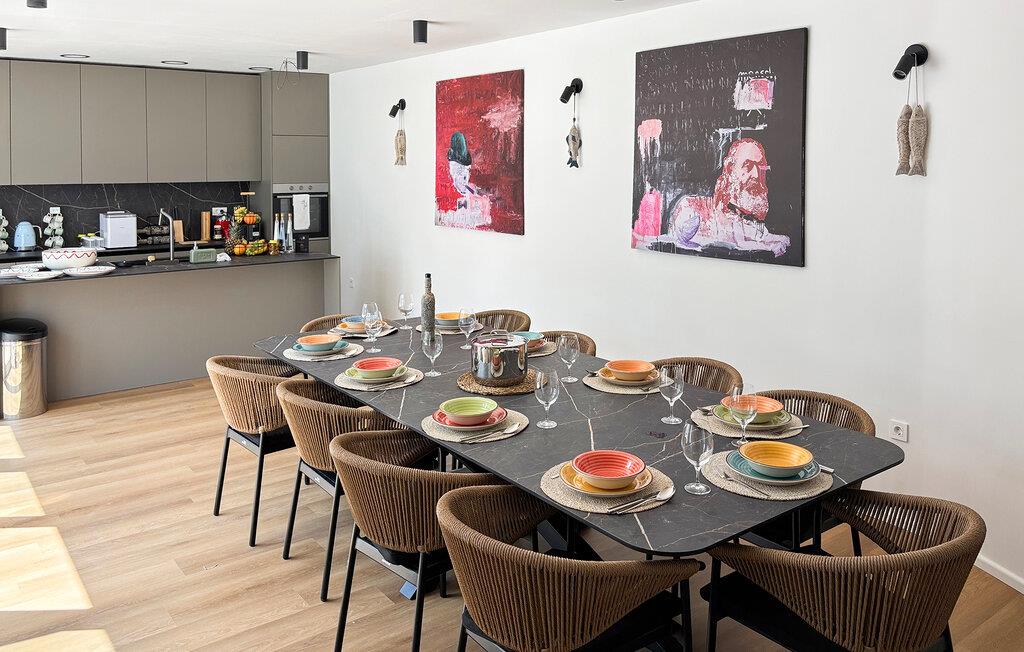 Komfort, privatliv og familievenlighed er topprioriteter i dette feriehus. Nyd det moderne interiør med lyst design og stilfulde indretningsløsninger. Brug den store spiseplads til fælles måltider, og tilbered jeres måltider i det fuldt udstyrede køkken. Tilbring afslappende timer i den åbne opholdsstue, og skab jeres ferie i en atmosfære, der kombinerer komfort og elegance.
