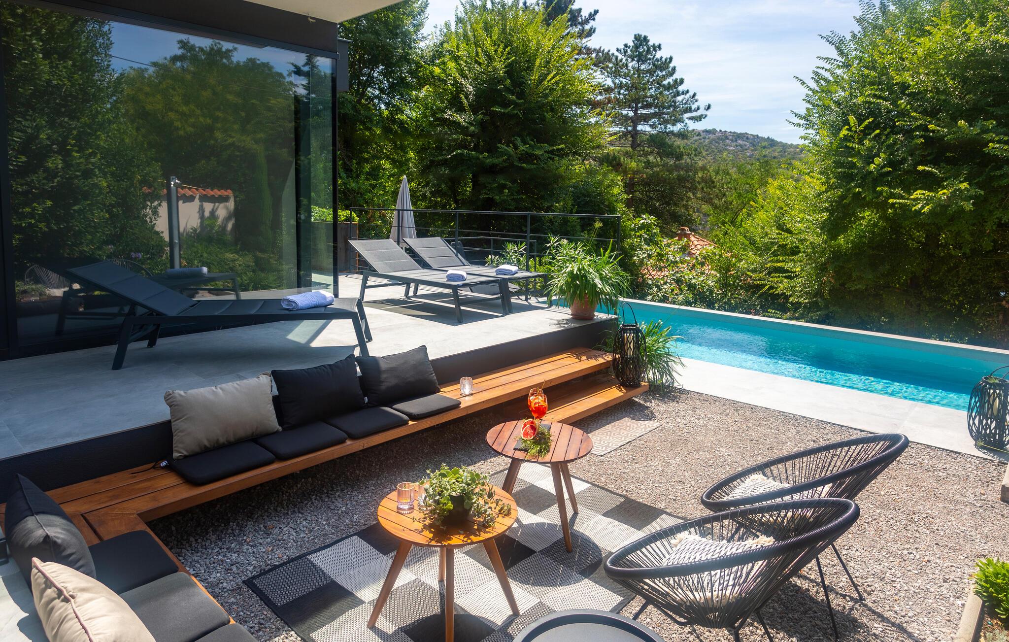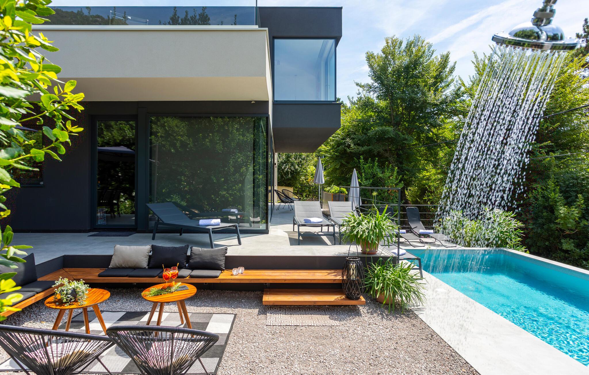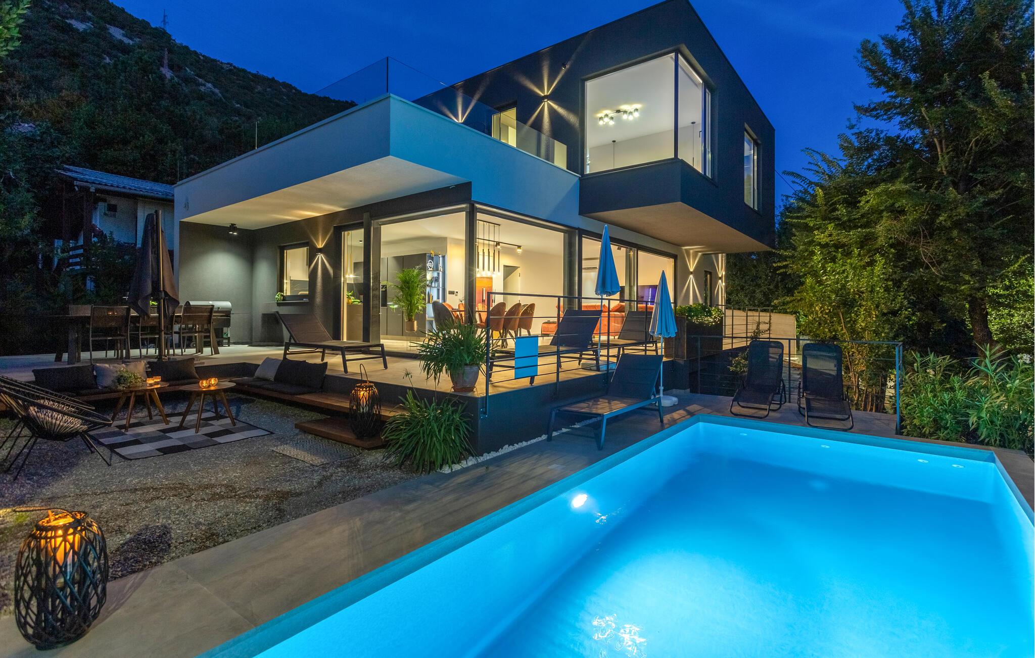 Hold en skøn ferie i jeres luksuriøse feriehus med plads til hele familien. Beliggende kun nogle få meter fra havet i den maleriske by Bakarac på Crikvenica Riviera, kan I nyde freden og charmen i den lille landsby. Besøg den lokale butik for at fylde friske dagligvarer og forkæl jer selv med regionale specialiteter på den fremragende taverna. Tilbered en overdådig morgenmad i jeres feriehus om morgenen og forkæl resten af ??familien med lækre kroatiske delikatesser om aftenen. De absolutte højdepunkter i jeres feriehus er den frisk pool og den fantastiske havudsigt, som I kan nyde fra balkonen på liggestolene.