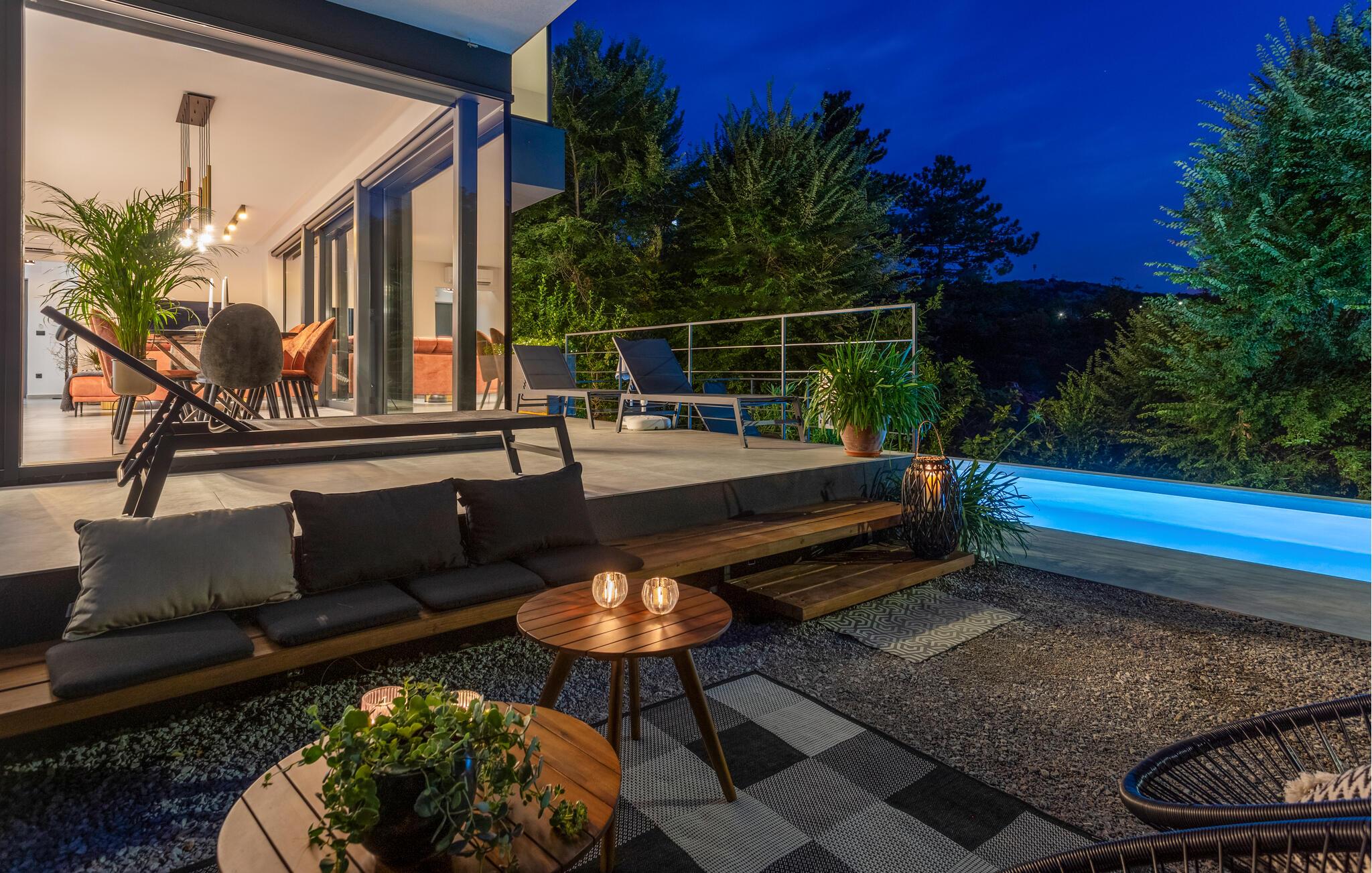 I nærheden finder I øen Krk, som er forbundet med fastlandet via en gratis bro. Oplev de mange maleriske hjørner af øen og nyd den betagende udsigt over havet. Og udforsk Crikvenica Riviera, hvor I kan besøge de historiske byer Crikvenica og Rijeka. Gå en tur gennem de charmerende gamle byer eller besøg et af de mange museer. I kan også prøve vandsport eller nyde en vandretur langs kysten. Besøg skiliften ved havet i Punat eller udforsk undervandsverdenen i dykkercentret i Kostrena.