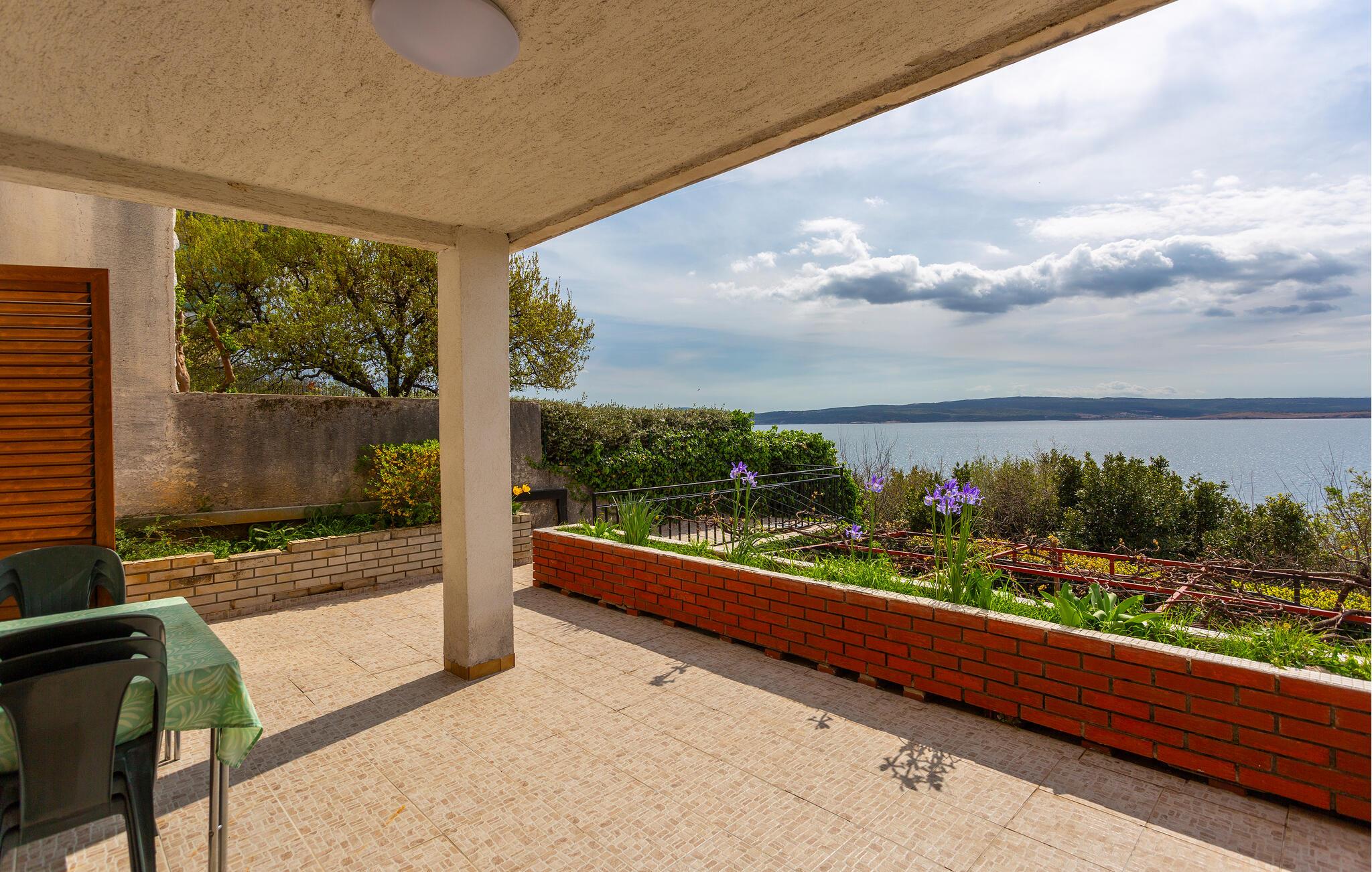 Denne praktiske ferielejlighed ligger i et lille etageejendom med flere ferielejligheder. Lejlighederne byder på plads til par såvel som børn og voksne familier. I finder også alt, hvad I skal bruge for at slappe af og have det godt her. Enkel komfort og en flot altan med udsigt over Kvarnerbugten skaber succesfulde rammer. I kan også slappe af i den fælles have på terrassen og solbade og socialisere med andre gæster.