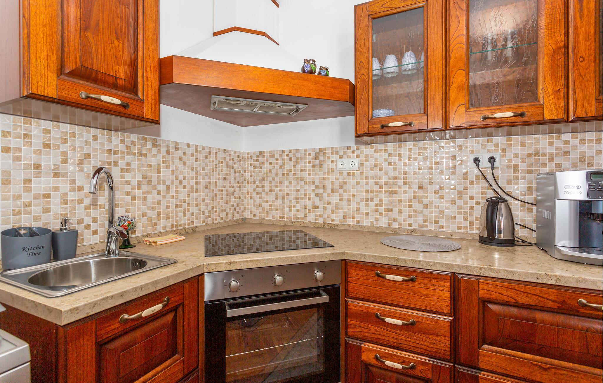 Denne praktiske ferielejlighed ligger i et lille etageejendom med flere ferielejligheder. Lejlighederne byder på plads til par såvel som børn og voksne familier. I finder også alt, hvad I skal bruge for at slappe af og have det godt her. Enkel komfort og en flot altan med udsigt over Kvarnerbugten skaber succesfulde rammer. I kan også slappe af i den fælles have på terrassen og solbade og socialisere med andre gæster.