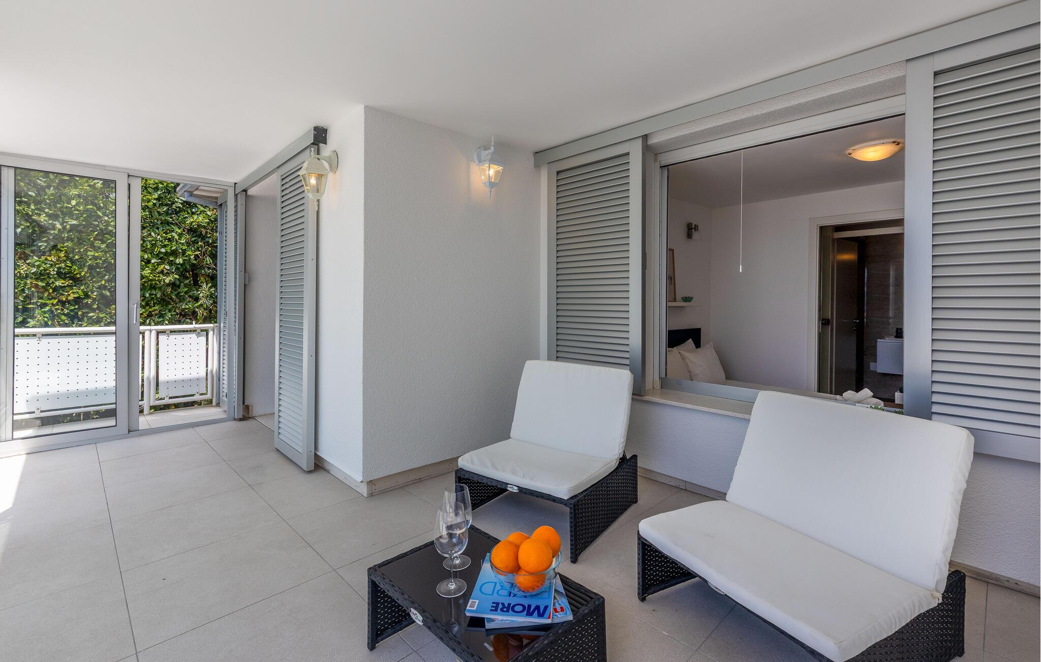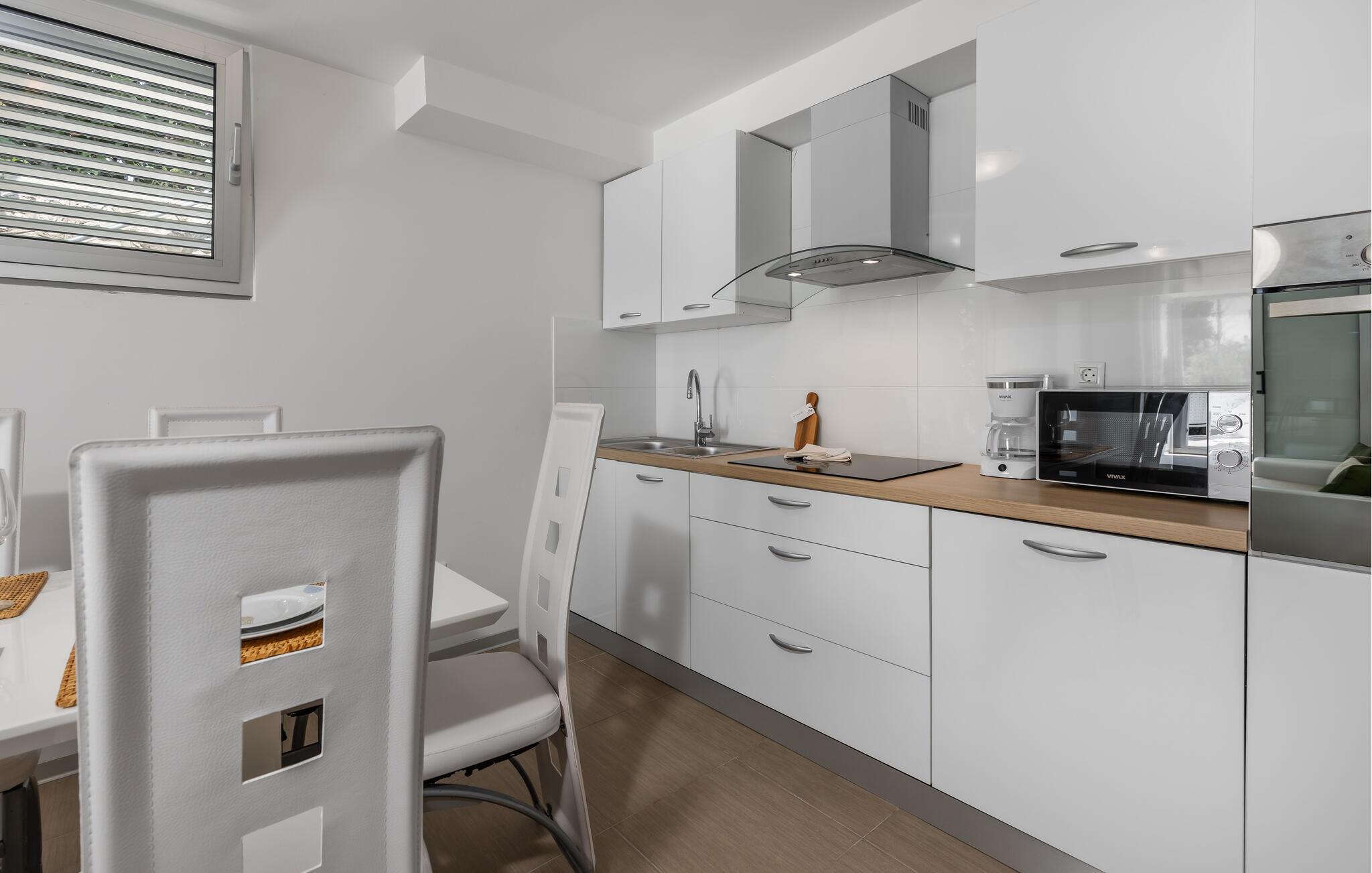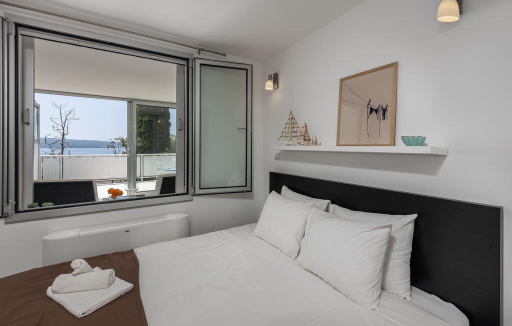 Forkæl jer selv og jeres partner med en afslappende ferie i denne komfortable ferielejlighed med en smuk havudsigt. Denne moderne og smagfuldt indrettede ferielejlighed byder jer velkommen kun få skridt fra stranden. Forkæl jer selv med middelhavsretter, lad den behagelige havbrise blæse gennem værelserne, og krøl jer sammen i sofaen om aftenen for at se jeres yndlings-tv-serie. Server en solrig morgenmad på terrassen, glæd jer til en dejlig dag med udsigt over det blå hav, og snak om aftenen over et glas vin i den varme sommernat. Dyk ned i Adriaterhavets krystalklare vand, eller tag en bådtur til de omkringliggende øer som Krk eller Rab. Udforsk det charmerende bagland på cykel eller på en vandretur gennem Vinodol-dalene, besøg historiske byer som Rijeka med dens livlige gamle bydel og den imponerende Trsat-fæstning, eller nyd regionale specialiteter i traditionelle konobas. For dem, der søger eventyr, er der ziplining i Tribalj-kløften eller kajakture på Gacka-floden.
