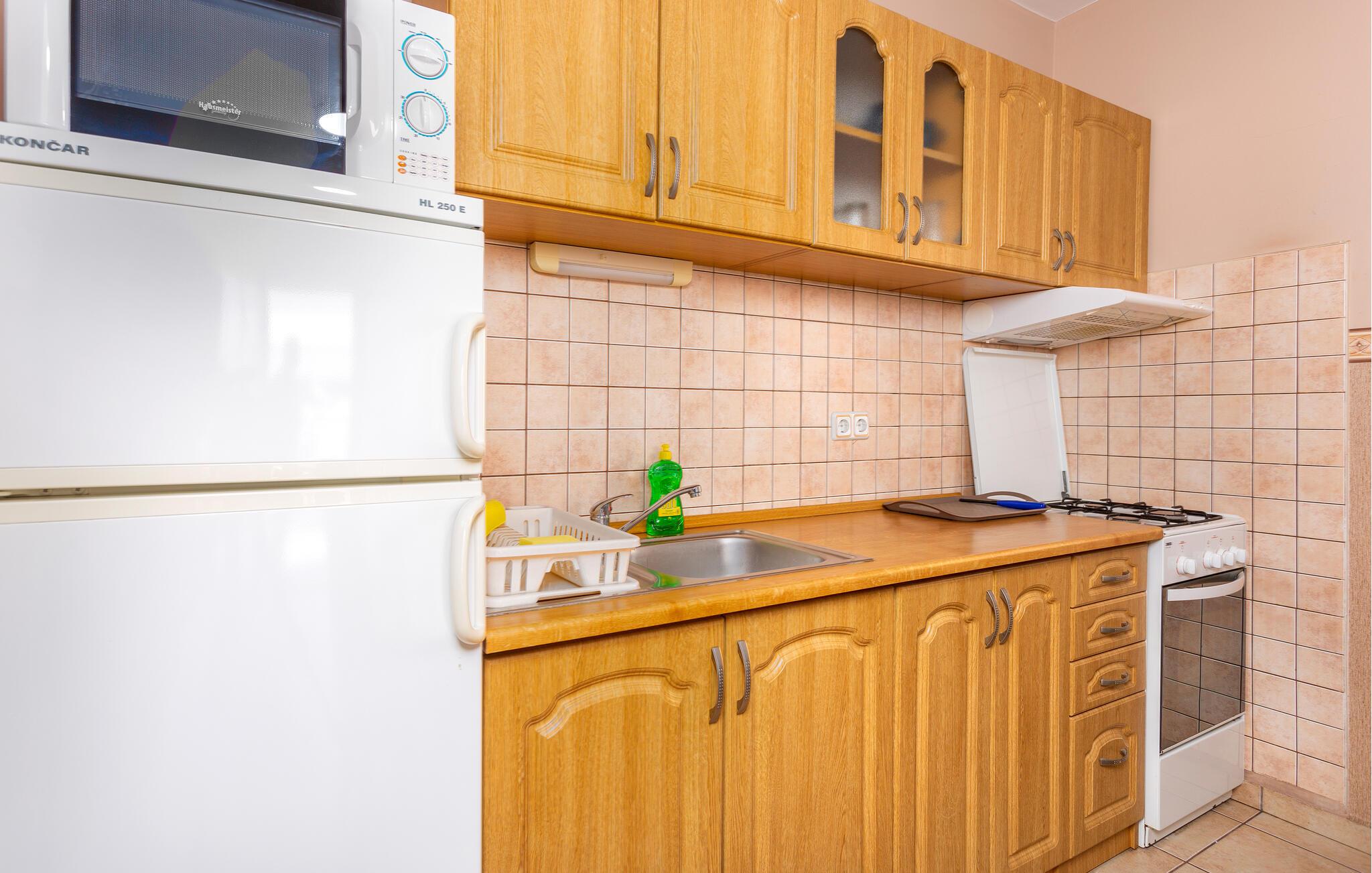 I bor kun en kort gåtur fra stenstranden, hvor I kan dykke ned i det klare vand og nyde det lave tempo i den hyggelige kystby Dramalj. Crikvenica er en livlig by og byder på alt, hvad en feriegæst kunne ønske sig; her kan I slentre langs den smukke havnepromenade, nyde livet på de smukke strande og vælge mellem mange lækre restauranter. I kan også tage på vandretur i området og se frem til skønne naturoplevelser i Risnjak Nationalpark.