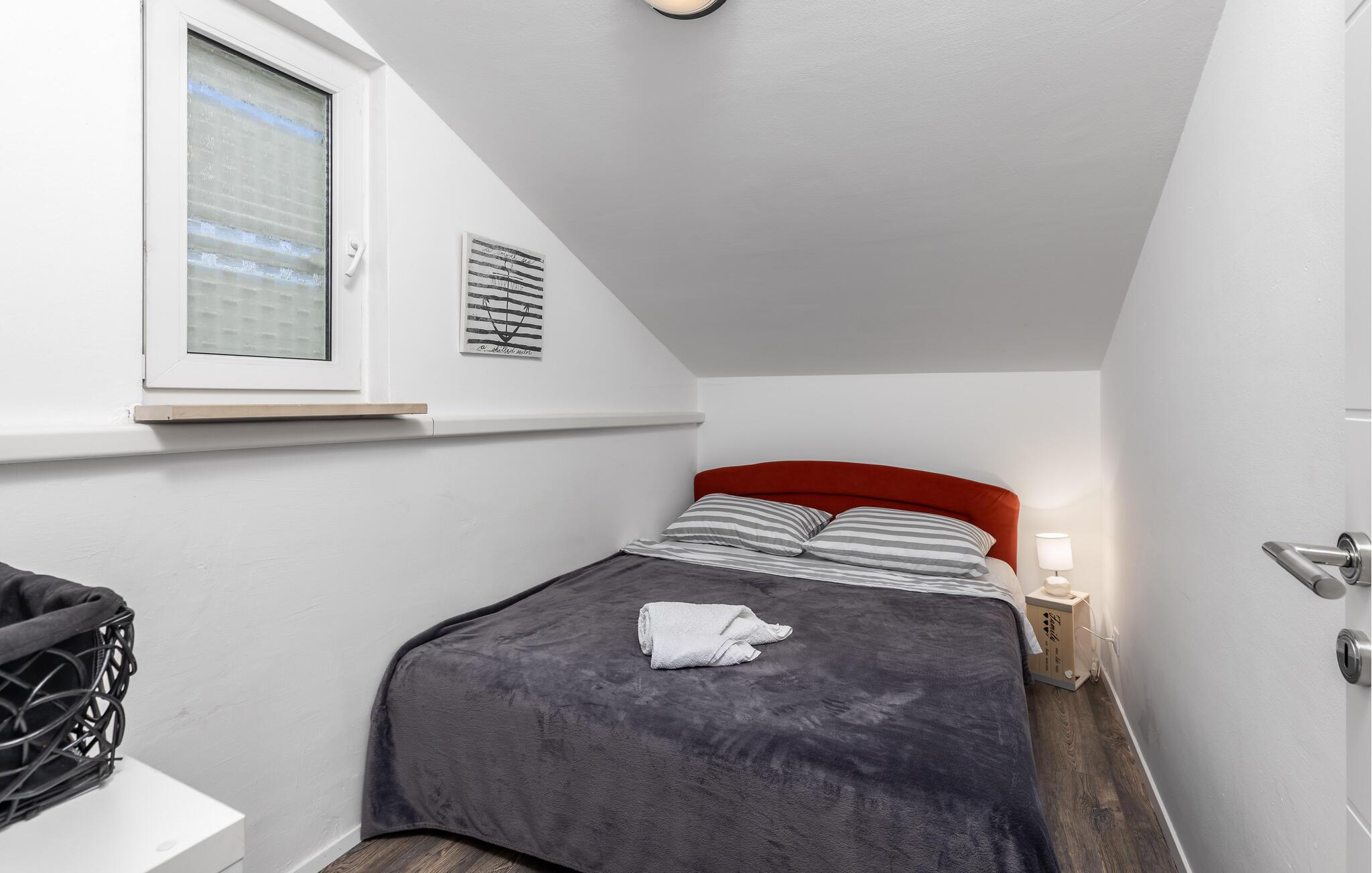 Denne skønne ferielejlighed ligger på 2. sal i den charmerende by Dramalj nær Crikvenica, som er forbundet med nabobyen af ??en smuk promenade langs havet. Taghældningen går op til 140 cm. Nyd den panoramiske havudsigt fra den store balkon og slap af på bagterrassen. Den venlige husejer vil vise dig strande, supermarkeder og restauranter i nærheden. Crikvenica Riviera tilbyder dig adskillige muligheder for at fylde din ferie med sport og underholdning, og du kan også opdage historien her.