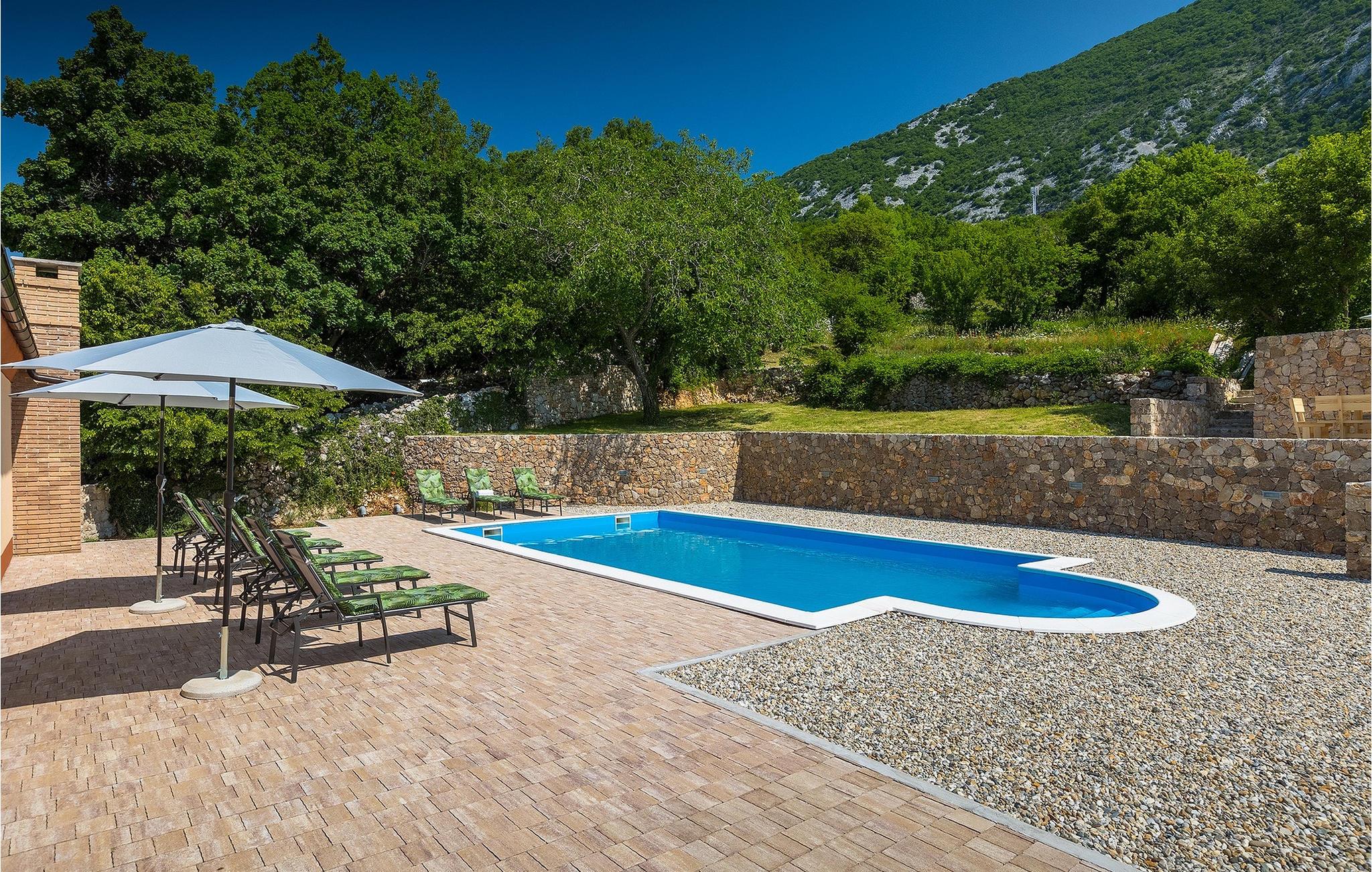 Start din familieferie i den smukke villa Lukata beliggende nær byen Crikvenica. Villaen kan maksimalt rumme 8+2 gæster, fordelt på 4 soveværelser. Stueetagen af villaen består af en stue, spiseplads og et fuldt udstyret køkken til at tilberede lækre måltider. På samme etage er der et soveværelse til din rådighed, mens der på første sal er tre meget komfortable soveværelser med private badeværelser. I den ydre del af villaen er der en privat pool, der indbyder til en svømmetur eller en afslappende stund på liggestolene, mens du læser din yndlingsbog. Ud over poolen er der foran villaen en udendørs terrasse, der vil være et ideelt sted at tilbringe perfekte stunder med din familie. Tilbring din ferie i den smukke villa Lukata og bestil den i dag!Villa Lukata ligger i en lille landsby Drivenik. Kystarkitektur såvel som traditionens pust vil få dig til at have en behagelig tid i Drivenik, især under Vinodols sommeraftener og barokmusikkoncerter. Blot en kort køretur fra Villa Lukata kommer du til Crikvenica, som kan siges at være en lille by med en hundredeårig historie inden for turisme, der byder på alt, hvad du behøver til en ferie. Smukke sandstrande og en promenade omgivet af palmer, forskellige butikker og forskellige turistbegivenheder. Det er et af de mest populære turistmål i Kroatien. Sportsentusiaster kan vælge mellem en række aktiviteter såsom cykling, minigolf, bordtennis, sejlads, jetski, paragliding, dykning, beachvolley og meget mere. Hvis du beslutter dig for at udforske omgivelserne, er der mange udflugtsbåde til rådighed til øerne Rab, Krk og Lošinj.