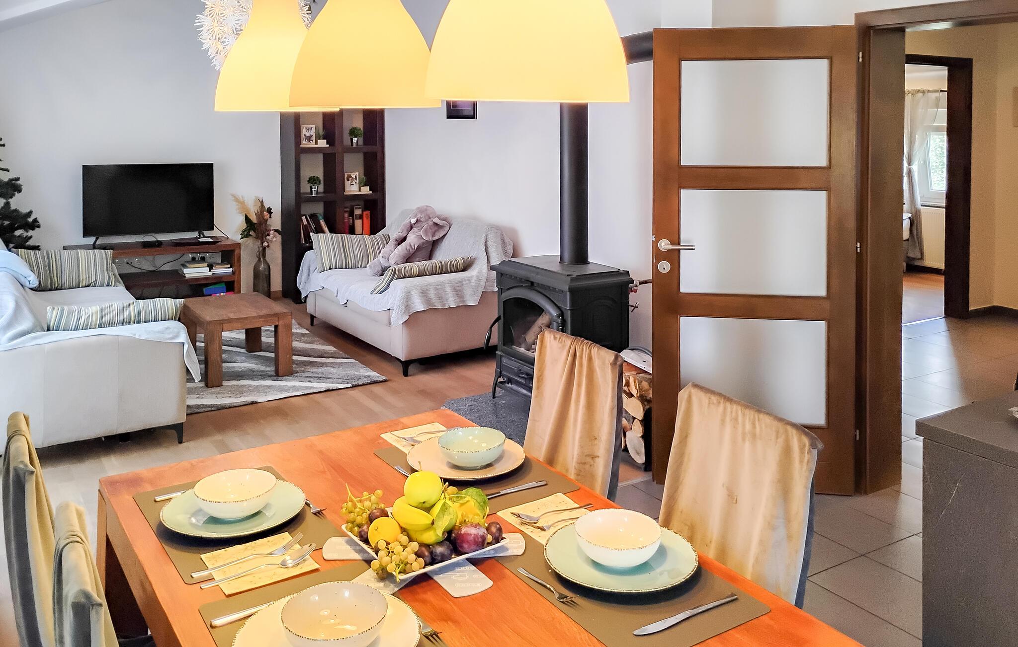 Dette indbydende hus kombinerer harmonisk hygge og komfort. Komfortable sofaer lægger op til at tilbringe en afslappende eftermiddag med kaffe og te, og i det praktiske køkken kan I trylle lækre måltider frem til hele familien. Slap af her og genoplad batterierne, mens I lytter til musik eller snakker.