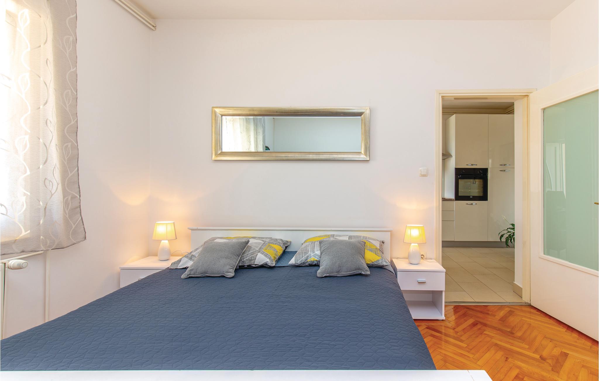 Fra denne charmerende ferielejligheds terrasse er der en herlige udsigt over det azurblå hav. Den ligger i Jadranovo, tæt på den populære by Crikvenica. Lejligheden ligger i stueetagen og består af at to soveværelser, badeværelse, køkken og en stor terrasse, som husejeren bruger som gennemgangsområde. Den del af grunden som bruges som parkeringsplads er ikke indhegnet. I Jadranovo ligger der flere dejlige og romantiske strande, ligesom der også er et stort udvalg af udmærkede restauranter. I Crikvenica forefindes et hav af sports, kultur og underholdningsmuligheder. Også udflugter til de nærtliggende byer Novi Vinodolski, Rijeka og Opatija kan anbefales. Naturelskere vil sætte pris på nationalparkerne Risnjak og Plitvica søerne.