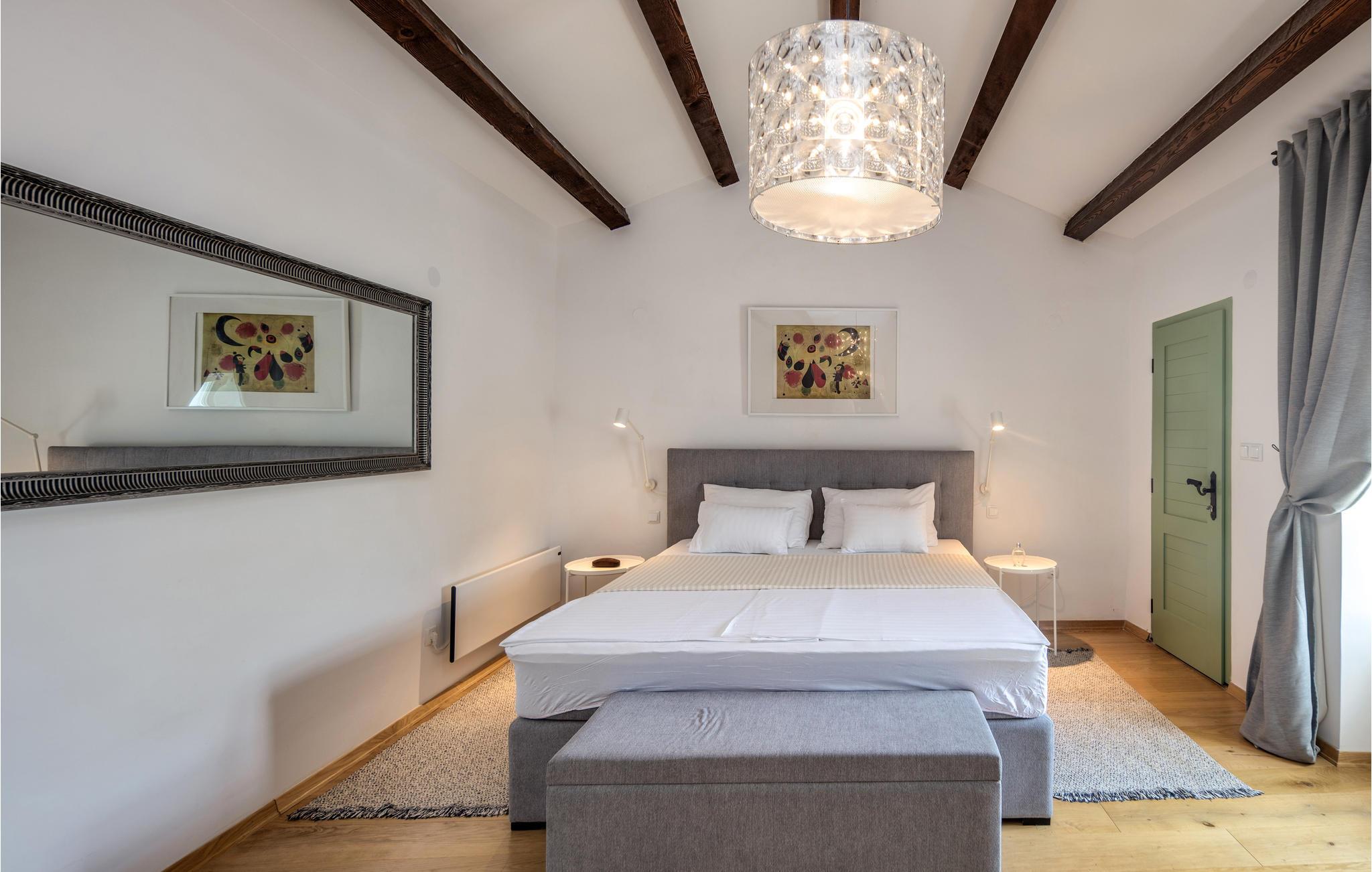 Det rummelige hus med fem soveværelser og fire badeværelser kan komfortabelt rumme op til 10 personer. De lyse møbler og synlige træbjælker giver feriehuset en umiskendelig charme. Et poolbord sørger for underholdning, og takket være klimaanlægget kan I altid nyde behagelige stuetemperaturer her, selv om sommeren.