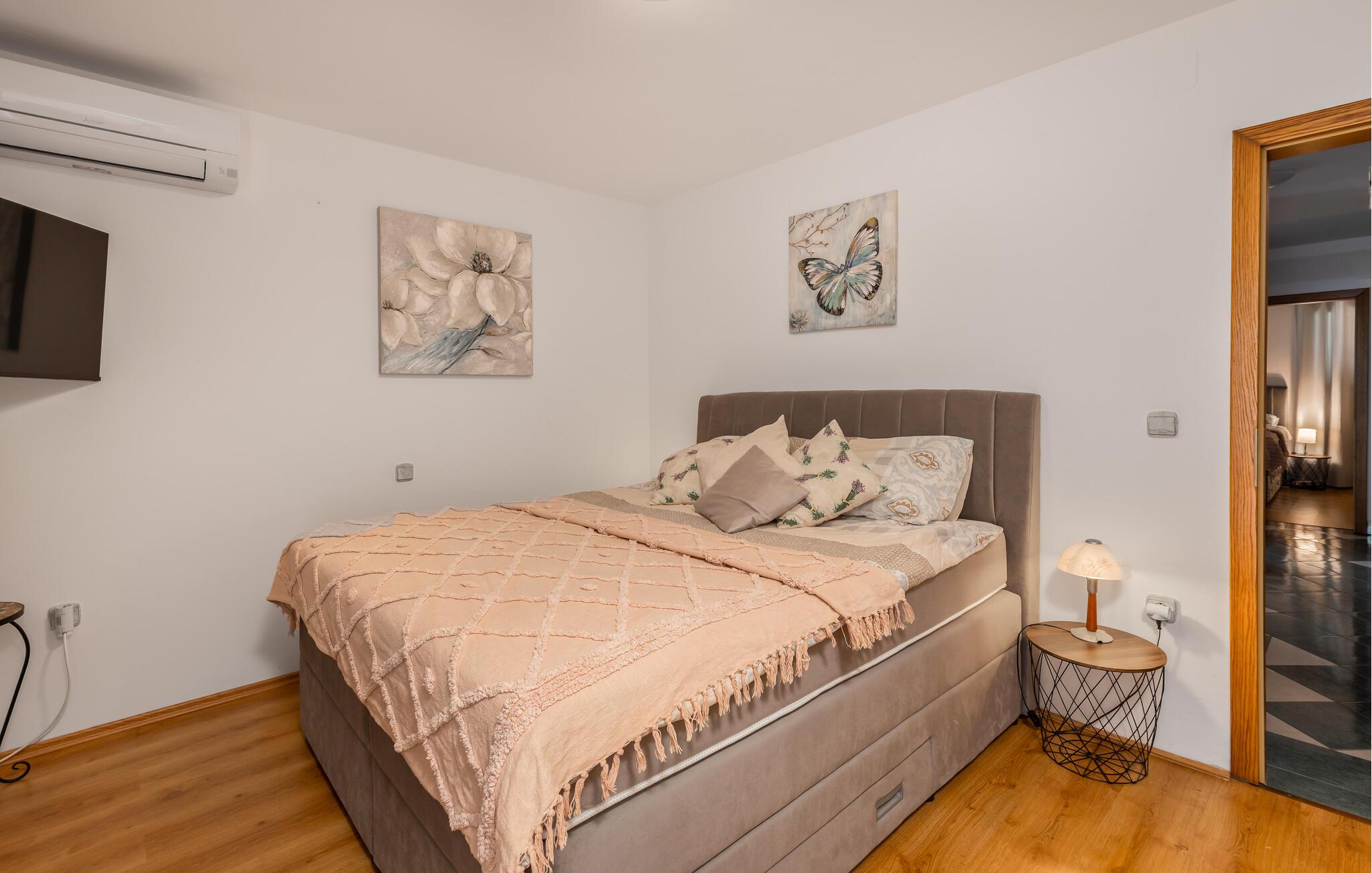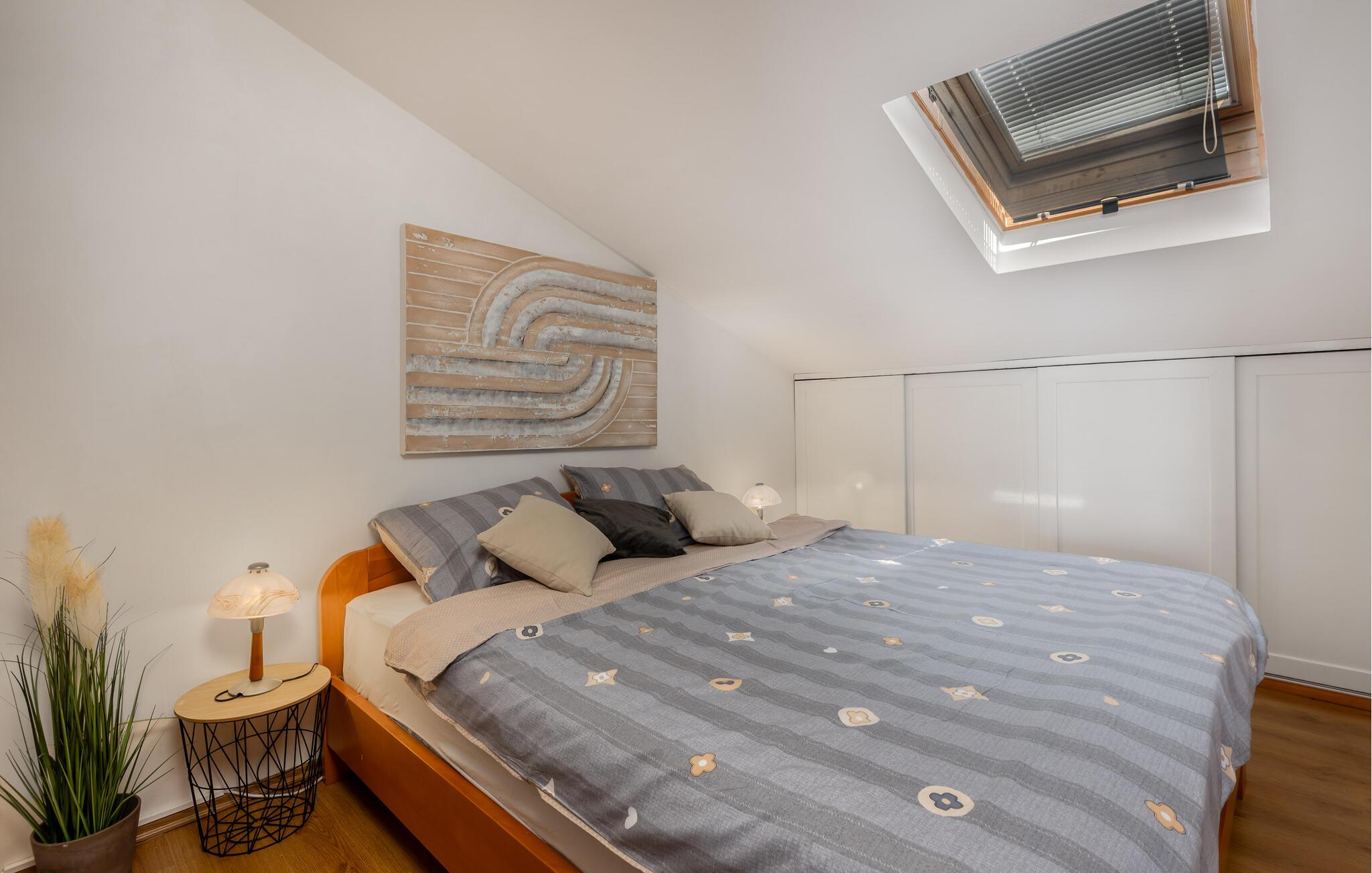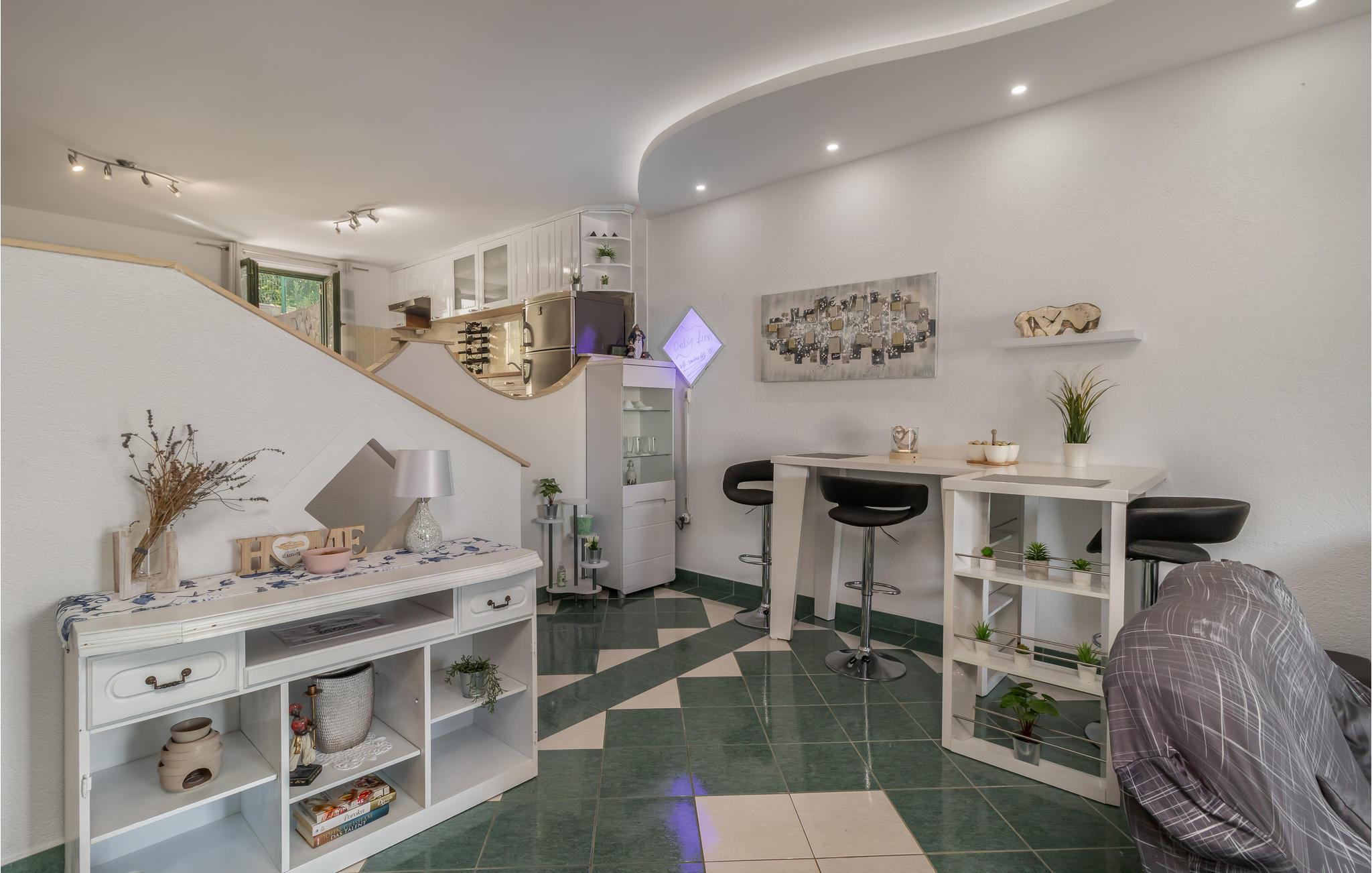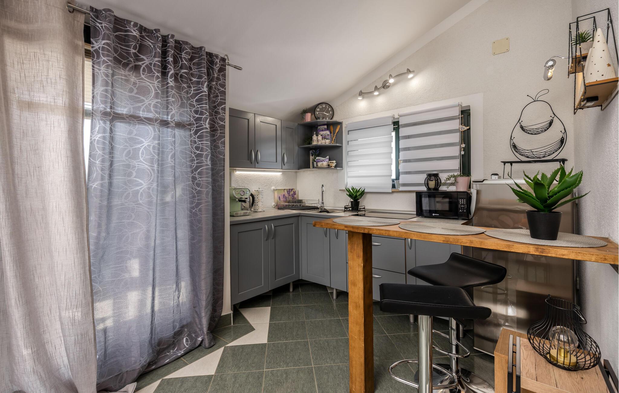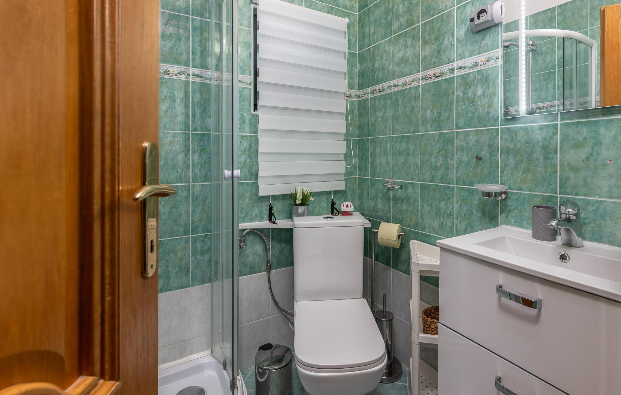 Velkommen til dette rummelige feriehus med swimmingpool, jacuzzi og sauna. Lad jeres sjæl dingle her! Dette skønne feriehus byder ikke kun på mange faciliteter fordelt på tre etager, men også en vidunderlig udsigt over havet. Føl jer godt tilpas på de forskellige niveauer, der har alle mulige ting i vente til jer. Glæd jer til komfort, gode faciliteter og en sauna til afslapning. Derudover har I to køkkener til jeres rådighed, så I også kan rejse med en familie, I er venner med, og nyde jeres privatliv. Spis jeres morgenmad på jeres altan med en fantastisk havudsigt og kom sammen lidt senere på terrassen. Her kan I virkelig hygge jer. Slap af i spabadet, leg i poolen med børnene eller grill på den skyggefulde terrasse om aftenen. Oplev den smukke fiskerlandsby Jadranovo, hvis gæstfrie beboere vil med glæde fortælle jer om stedets rige tradition og historie. Et lille fisketuremuseum vidner også om den lille kystbys fortid. Det, der pryder Jadranovo, er bestemt den uberørte natur, mange fyrreskove og en smuk kyst med mange romantiske bugter, der skal opdages. I kan også besøge den smukke Grabrova-strand og Percin-Jadranovo-havnen. I vil nyde udsigten over de smukke strande, duften af ren luft, fyrretræer og middelhavsplanter.