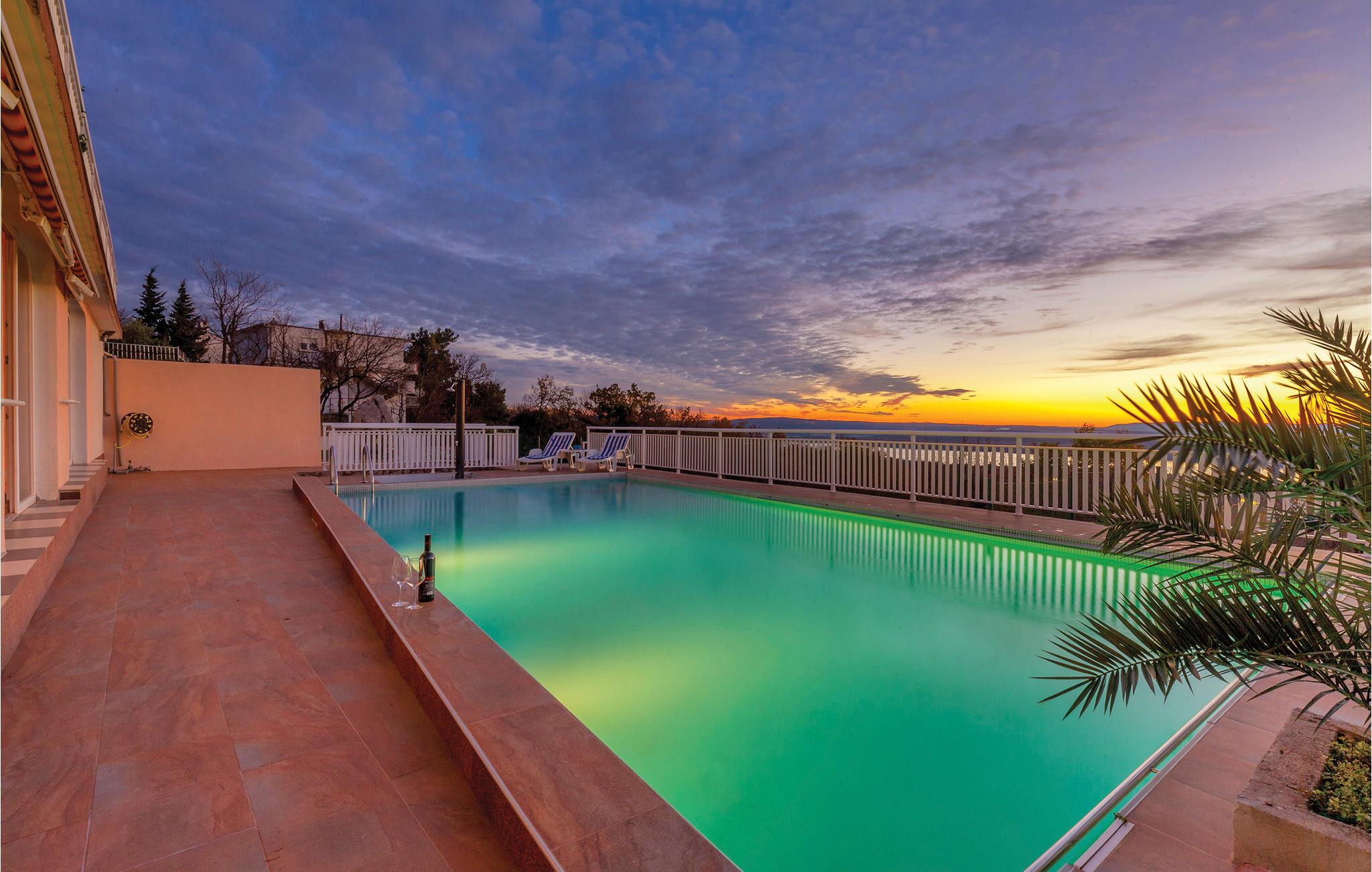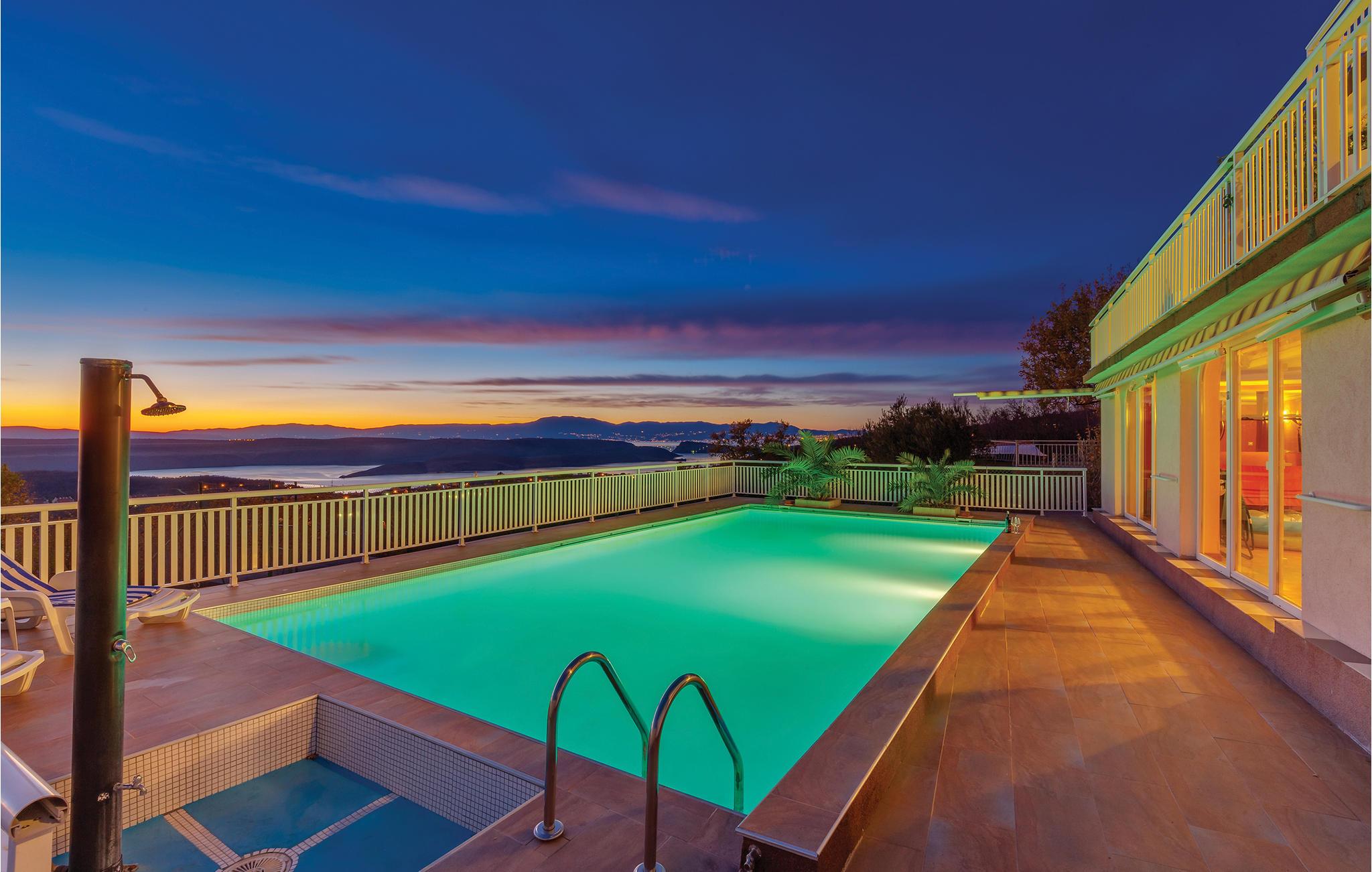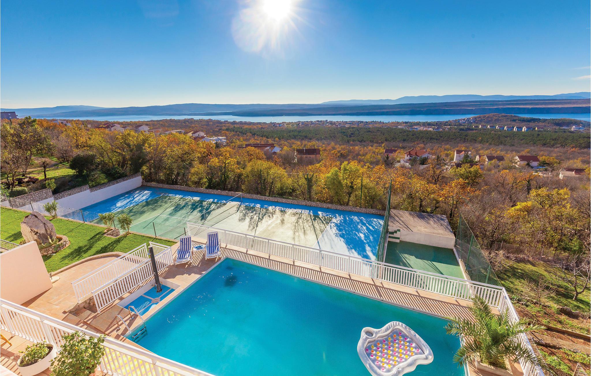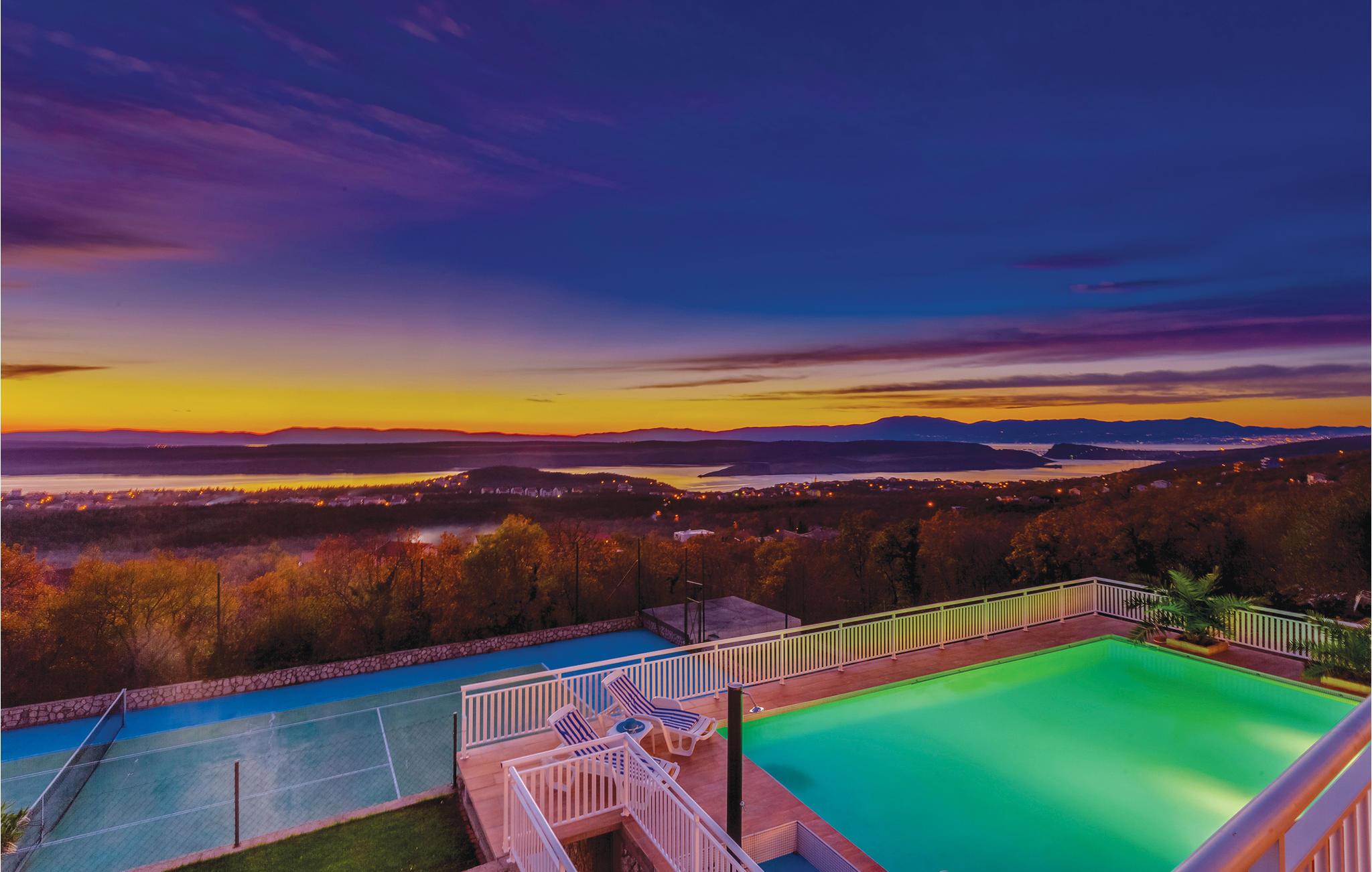 Dette eksklusive feriehus ligger i en forstad til Jandranovo, der hører med til Crikvenicas riviera. Den er meget komfortabel, rigt udstyret, her kan I blive godt underholdt. Ud over underholdningsmulighederne, kan I også slappe af i saunaen og efterfølgende i hvilerummet, evt. efter en svømmetur i den store pool, der ligger omgivet af en stor terrasse hvor I kan tage solbad. Her er også tennisbane til en rask feriekamp. Nyd den skønne udsigt og oplev romantiske solnedgange. Besøg feriebyen Crikvenica, hvor der er meget at se og opleve, tag en dagsudflugt til øen Krk. For de der holder af naturen, kan vi anbefale besøg i nationalparken Risnjak og naturparken Ucka.