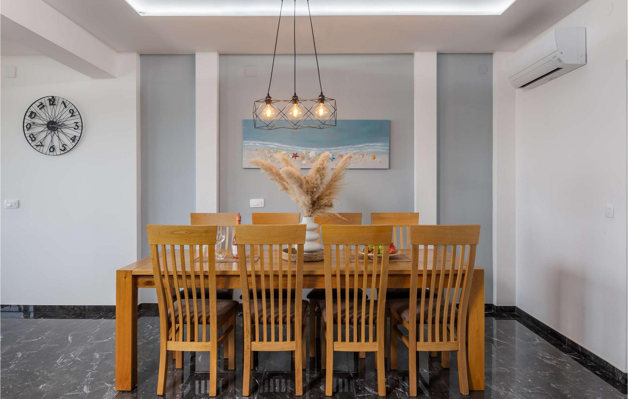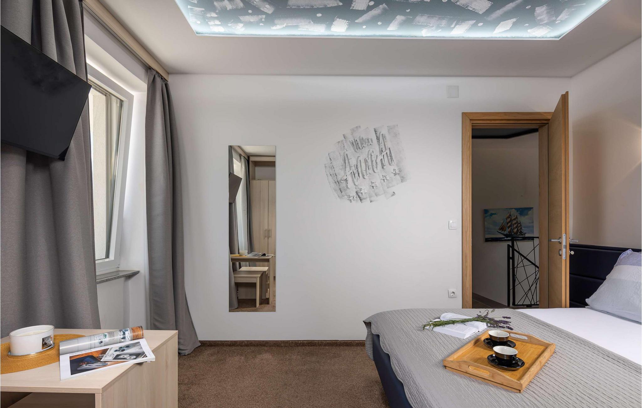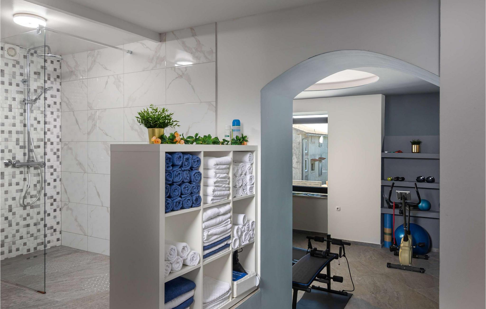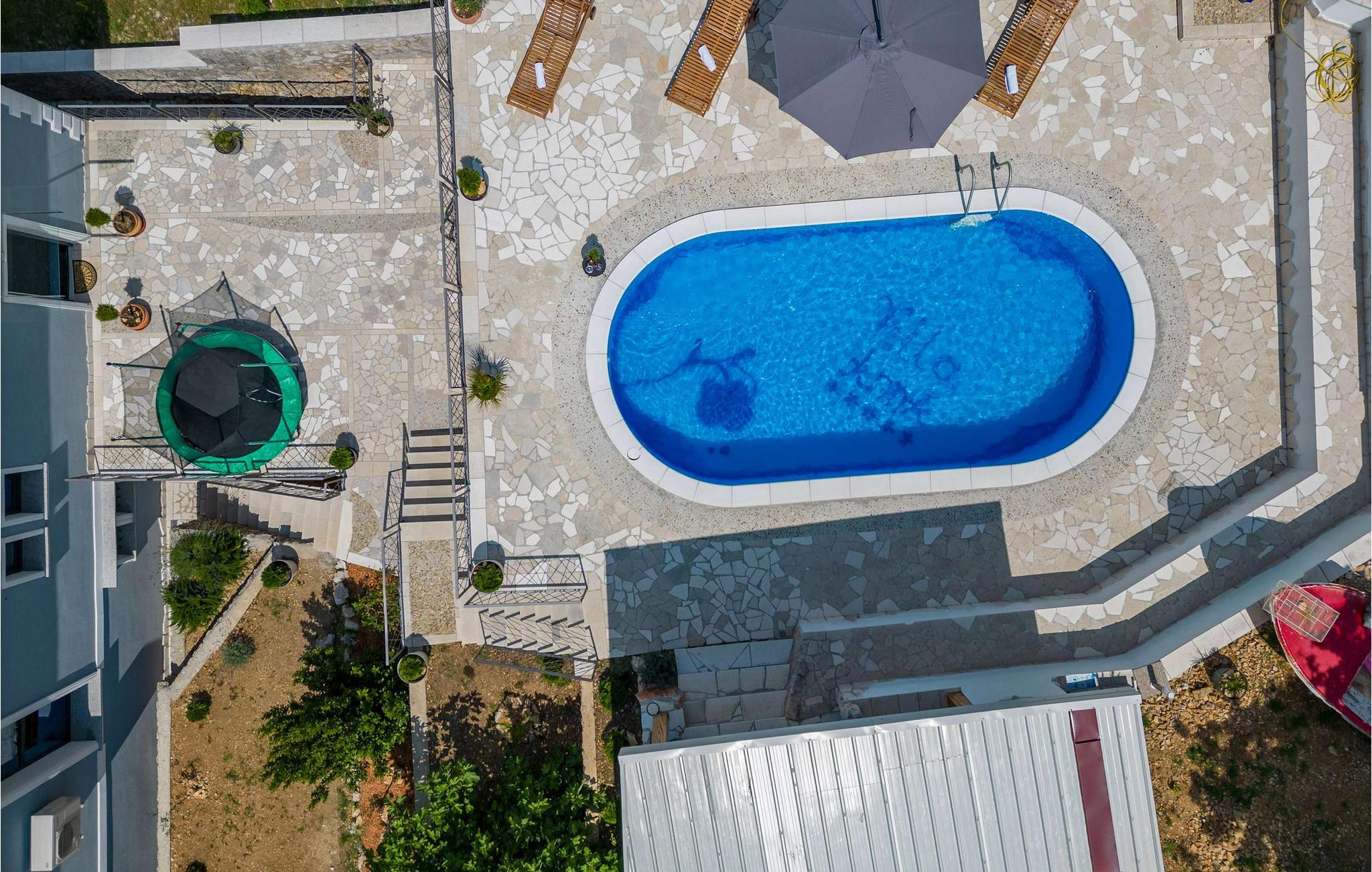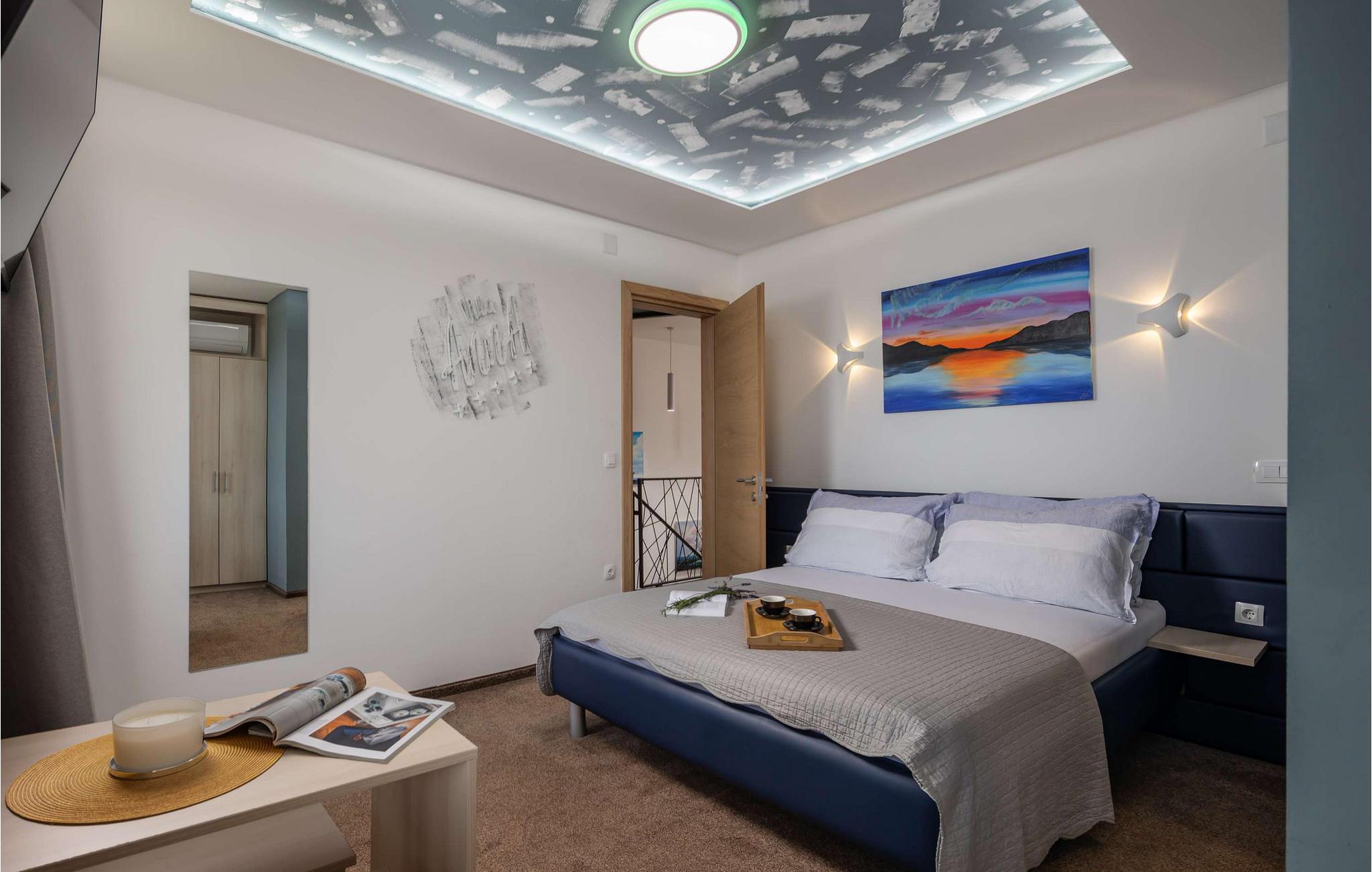 Beliggende i Jordanovo, kun 9 km fra Crikvenica, er Villa Ancora kendt som et sted for gæstfrie værter og smuk uberørt natur. Her finder du en fyrreskov og en kyst med romantiske bugter og strande, hvor du kan udforske havets dybder og nyde med familie og venner. Denne villa, bygget i 2022, er en kombination af moderne og rustik konstruktion og tilbyder sine gæster 350 m2 boligareal. Det er fuldt airconditioneret og kan rumme maksimalt 10, optimalt 8 personer. Du vil bo komfortabelt i 5 soveværelser (200x165), hvoraf tre er på øverste etage, og til børnene er der en tremmeseng, der også er tilgængelig! Villaen har også 6 badeværelser med bruser og 2 ekstra toiletter. På øverste etage er der også en stue med en tre-personers, to lænestole, to taburetter, to sofaborde og et fjernsyn. Ved siden af stuen er der en spisestue med spisebord og et køkken udstyret med alt hvad du behøver for at tilberede måltider til familie eller venner. I stueetagen er de to andre værelser, wellness med sauna, spabad og fitnessudstyr, som især vil glæde fans af aktiv ferie. Der er selvfølgelig også et rum til leg og hygge, hvor børn og voksne kan prøve kræfter med dart, billard eller bordfodbold. Uden for villaen, i gården ved siden af poolen, er der også en trampolin. Ved siden af villaen er resten af faciliteterne, såsom en 32m2 swimmingpool med en dybde på 1,5 meter, 6 liggestole til solbadning og afslapning og en udendørs kul-, træ- eller gasgrill. Der er også to overdækkede udendørs spiseborde, perfekt til aftensammenkomster over et glas vin. På terrassen kan du nyde udsigten over havet og omgivelserne og forkæle dig med charmen ved Villa Ancora. Gården er indhegnet og byder på 4 private parkeringspladser, mens der er yderligere to udenfor. Du vil nyde udsigten over smukke strande, duften af ren luft, fyrretræer og middelhavsplanter. Du vil lære om skikke ved adskillige begivenheder, forkæle dine smagsløg med at smage lokale specialiteter fra berømte lokale restauratører og nyde historierne om de fiskere, der vender tilbage fra havet hver morgen med fulde net. Velkommen til Villa Ancora! Kæledyr er tilladt på denne ejendom efter ejerens skøn eller mod et gebyr.