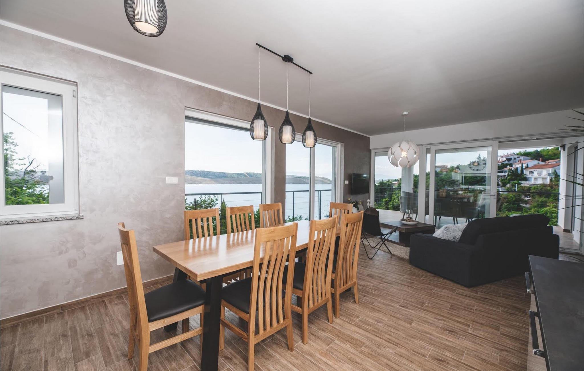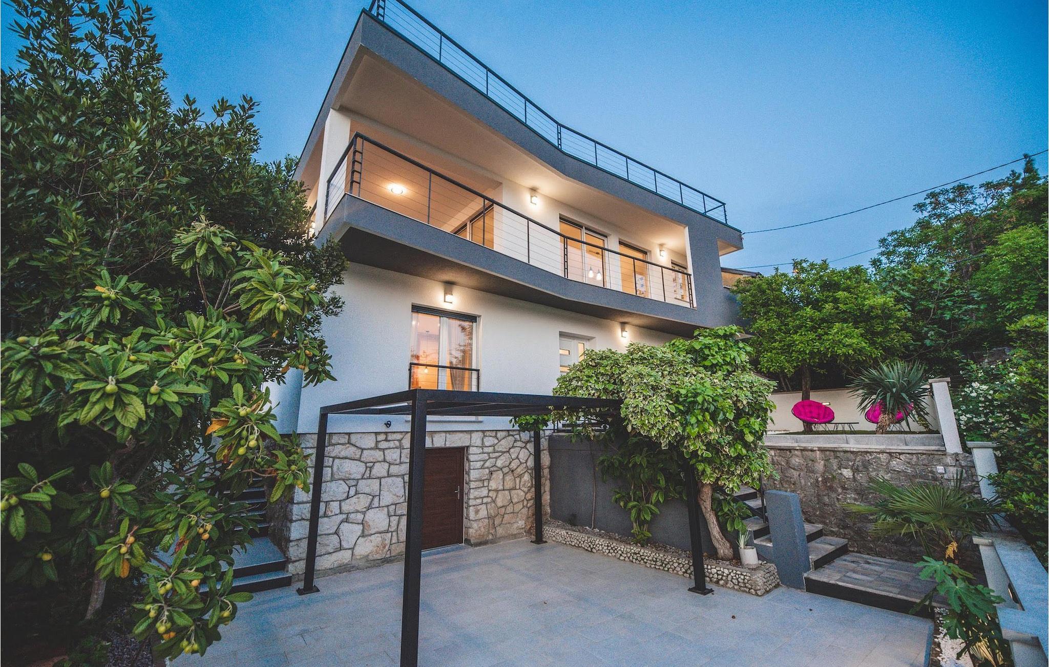 Gorgeous Villa Grace ligger kun få skridt væk fra den nærmeste stenstrand i Jadranovo, et lille sted i Kvarner-regionen. Denne villa repræsenterer ideel sommerferieindkvartering, da den byder på masser af udendørs plads og muligheder for at nyde hvert minut af din ferie, nyde middelhavsatmosfæren og nyde den fantastiske havudsigt. Den private pool er et særligt godt sted at slappe af. Udvidelsen af poolområdet er tagterrassen med liggestole - det perfekte sted at være i solnedgangstimer. Villaen er opdelt i to etager. Hovedindgangen fører fra poolområdet, som faktisk er den øverste etage. På denne etage er der et smukt fællesareal med masser af dagslys og selvfølgelig en fantastisk udsigt. Værelset er opdelt i et fuldt udstyret køkken samt opholds- og spisestue. To soveværelser ligger på samme niveau og de resterende to soveværelser er placeret i stueetagen og har adgang til græsplænen med to liggestole med havudsigt. Tre af de fire soveværelser har eget badeværelse, der tilbyder maksimal komfort for gæsterne. En overdækket spiseplads med plads til 8 gæster er på terrassen ved siden af stuen og en kulgrill er til rådighed for dem, der kan lide at tilberede måltider al fresco. Sådan en fornøjelig villa vil være svær at forlade, når du først ankommer! Madlevering fra supermarkeder samt fra lokale fødevareproducenter tilgængelig efter anmodning for gæster. Vigtigt: ikke en festdestination. Ejendommens gunstige beliggenhed giver en ideel mulighed for dem, der foretrækker en rolig ferie væk fra stress og larm. All Vinodol-dalen er et paradis for fiskere, cyklister, vandrere, vandrere, klatrere, paraglidere med mange cykelstier, vandreture og vandrestier, der passerer gennem fascinerende Vinodols områder, som giver vores gæster mulighed for at opleve bevaret natur og kulturarv. Kystbyerne Crikvenica og Novi Vinodolski med smukke strande og restauranter eller øen Krk ligger kun 10 minutters kørsel derfra. Den største kroatiske havneby Rijeka ligger 30 km derfra, og Rijeka Lufthavn ligger 5 km derfra. En bil anbefales.