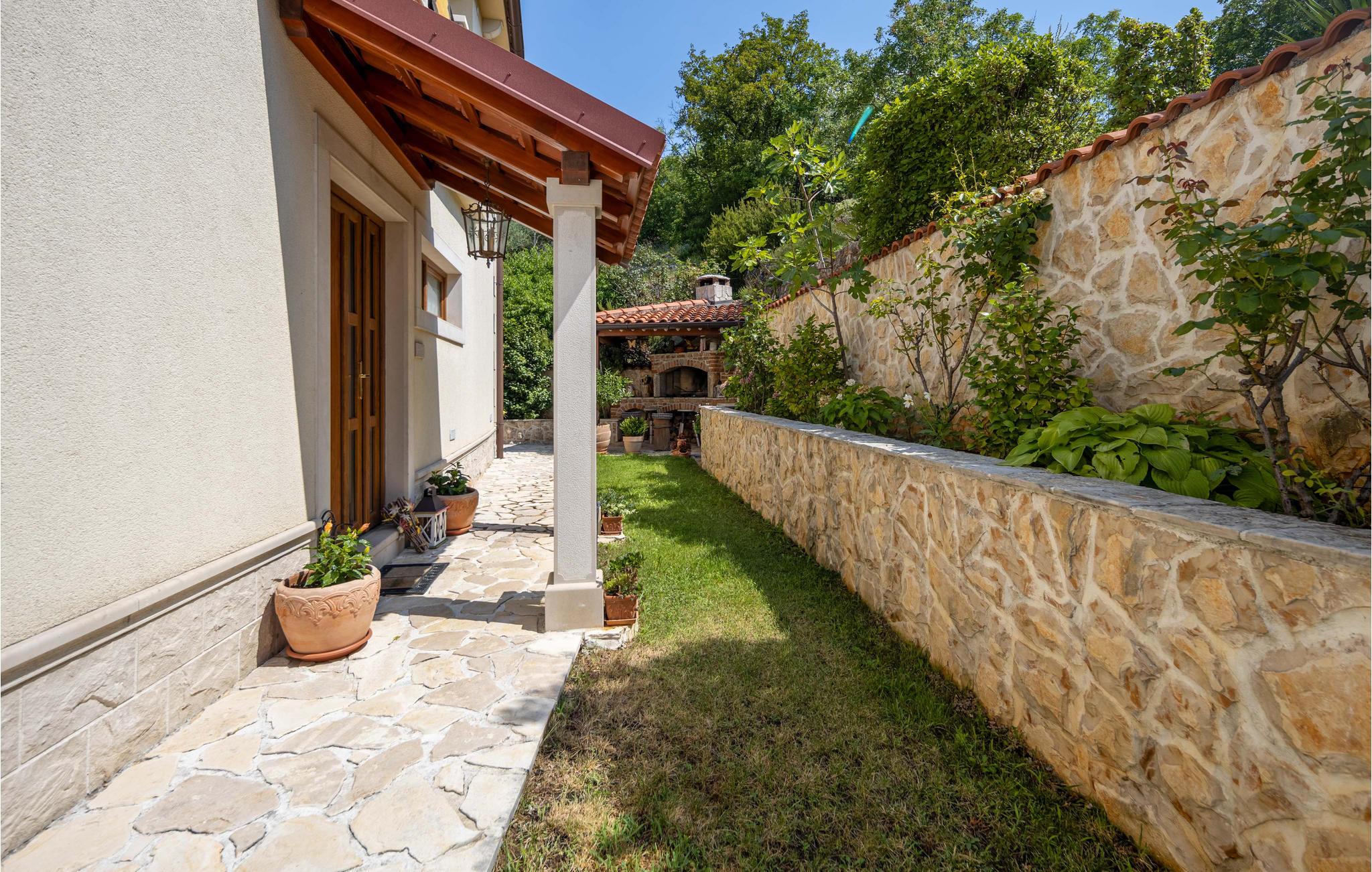Dette rummelige og smukke feriehus er dekoreret med forskellige udsmykningsgenstande fra middelhavsområdet. Det ligger i den lille by Kostrena, tæt på byen Rijeka. I stueetagen er der et dejligt køkken, en dagligstue, et soveværelse og et badeværelse. Fra dagligstuen og køkkenet kommer I ud til poolområdet, hvor I helt sikkert vil være i mange timer. På første sal, der kan nås ad indvendige trapper, ligger soveværelserne. Til at hygge jer sammen i har I den velegnede konoba i den høje kælder. På dette plan er der et badeværelse med sauna, et motionsapparat, et fjernsyn og en spillekonsol. Feriehuset ligger oven for den lille by og har panoramaudsigt over Kvarn-Bugten.