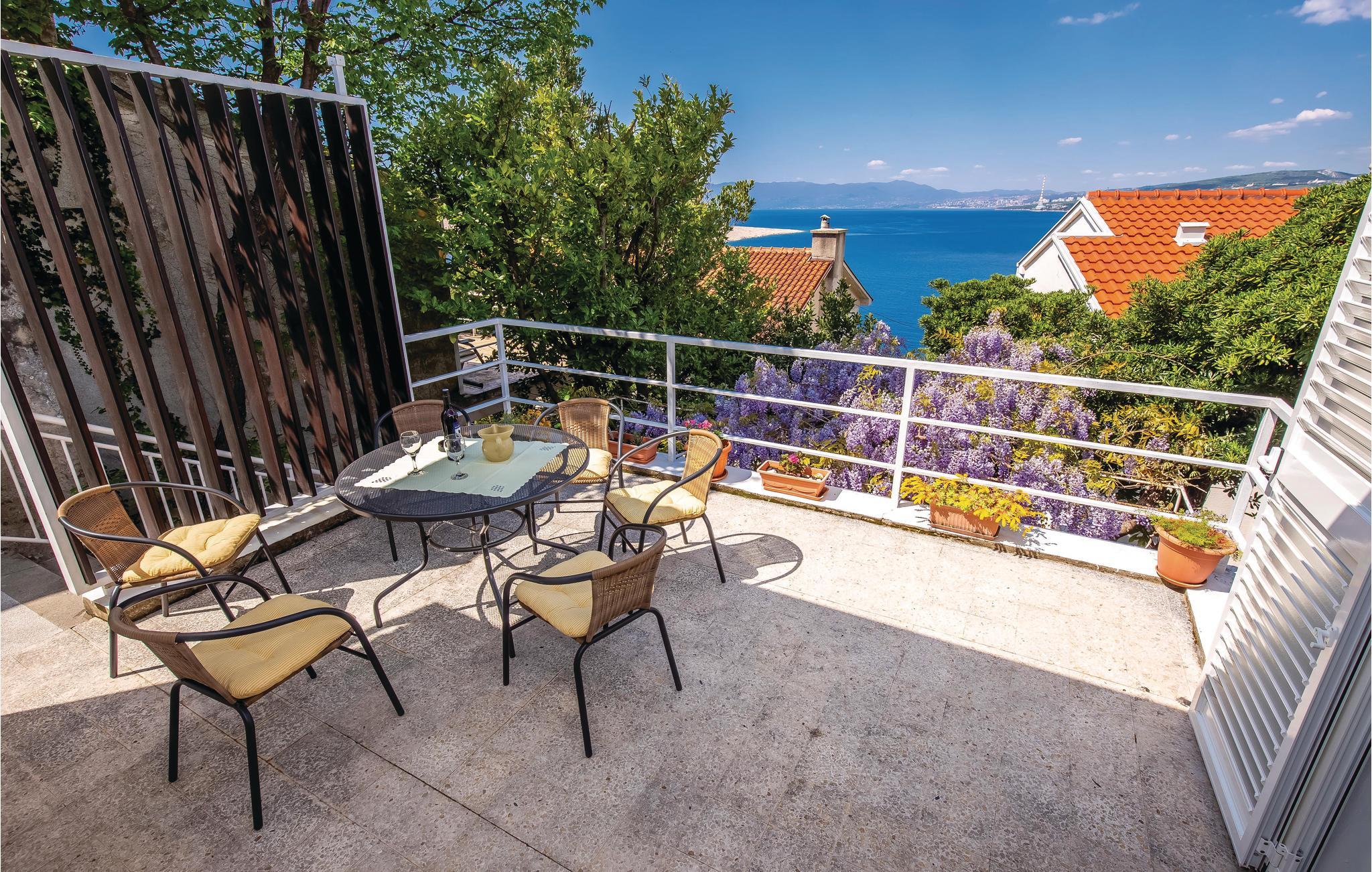 Tæt på havet ligger denne feriebolig på en skråning med en vidunderlig udsigt. Foran huset ligger en terrasse, som garanteret bliver feriens omdrejningspunkt fra morgenkaffen til aftenens solnedgang. I stueetagen ligger køkkenalrum og på øverste etage findes to små soveværelser. Crikvenica er absolut et besøg værd med sin smukke bymidte og den livlige promenade, eller øen Krk hvor naturen, seværdigheder og aktiviteter går op i en højere enhed. Denne region rummer et hav af oplevelser. På grund af skrå vægge er den laveste loftshøjde på 180 cm.