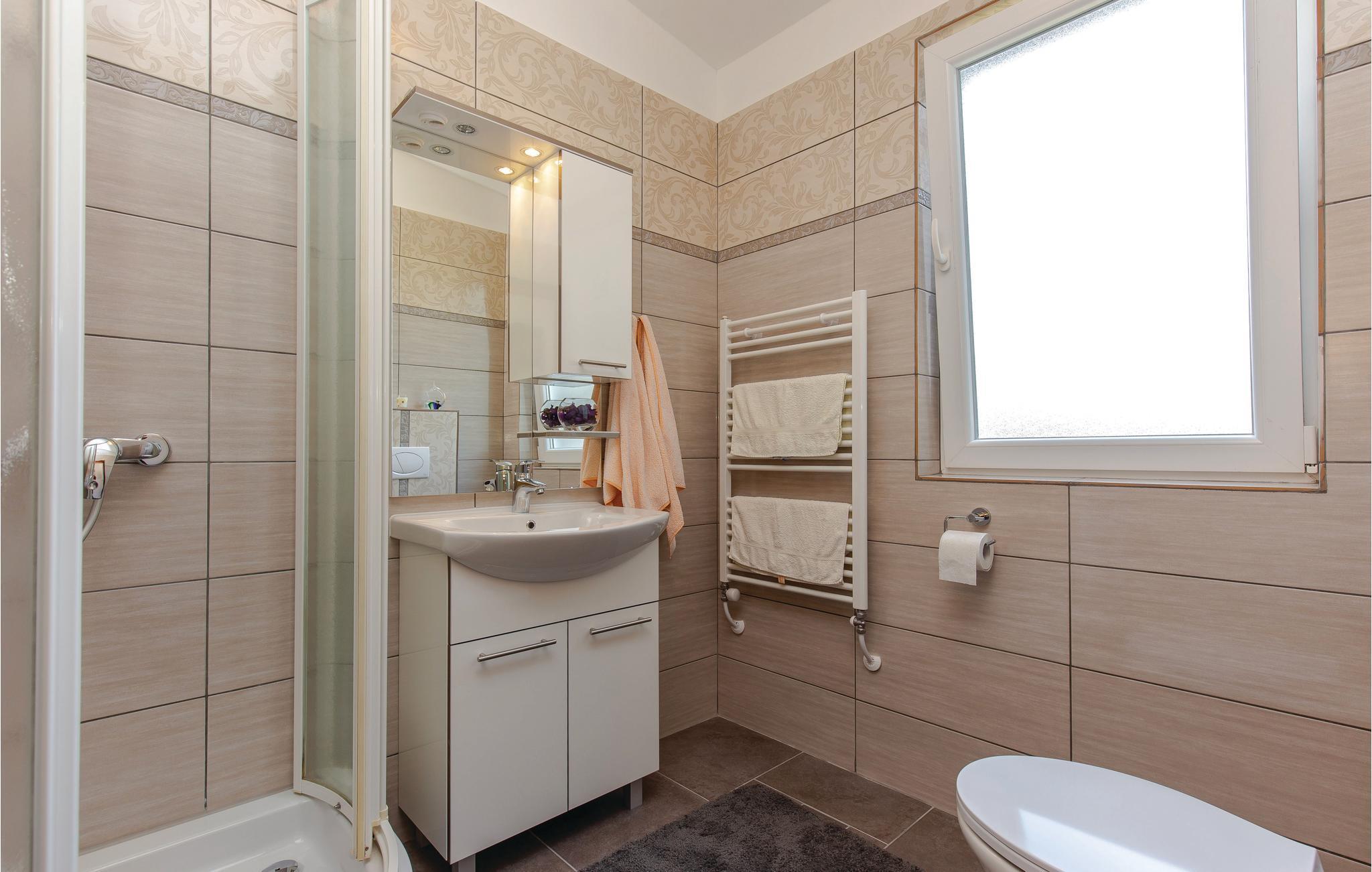 Badeværelse (nr. 1) - WC. Varmt og koldt vand. Bruser