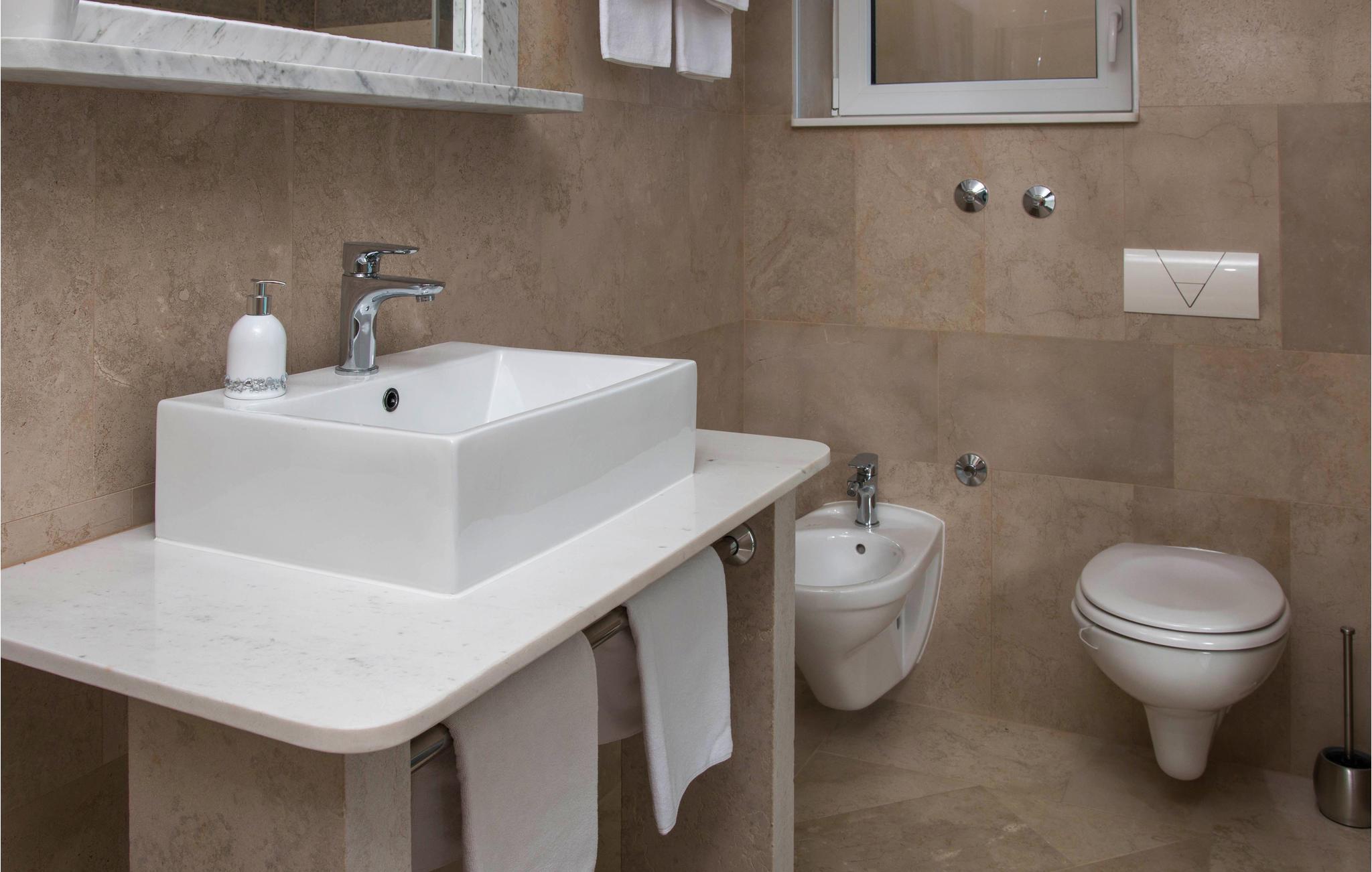 - WC. Varmt og koldt vand, Bruser og badekar