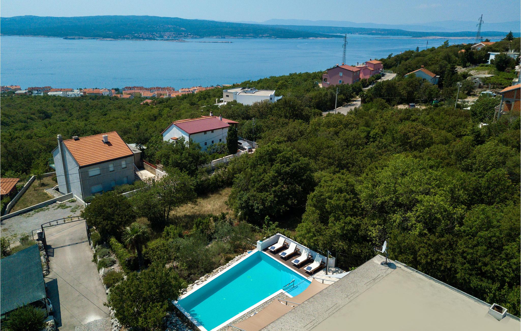Hold en uforglemmelig ferie i denne luksuriøse ferievilla ved den populære riviera ved Crikvenica. Den ligger i bakkerne over byen Crikvenica, i et roligt område med en herlig udsigt over havet, Kvarner-Bugten og øerne Krk og Cres. Villaen omkranses af en stor grund og have med frugt og grøntsager.