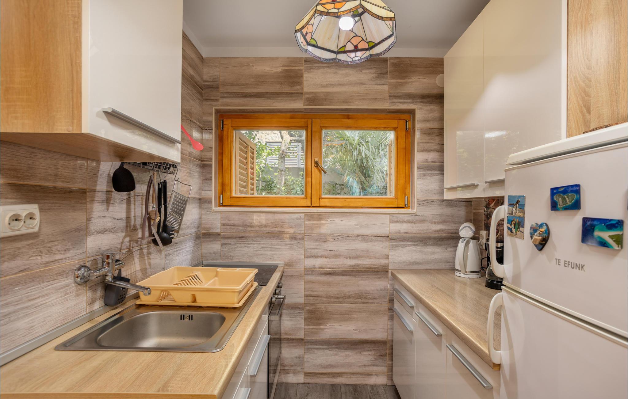 Interiøret strækker sig over en høj stueetage, som kan nås via en ekstern trappe. Det meste af tiden vil I nok tilbringe på den overdækkede udendørs terrasse. Ikke langt fra huset ligger det krystalklare hav med smukke naturlige strande. Det anbefales at besøge byen Crikvenica, der er fyldt med restauranter og inviterer jer til at smage traditionelle retter. Lær disse beboers kultur og mentalitet at kende, og nyd en stund langt væk fra jeres hverdag.