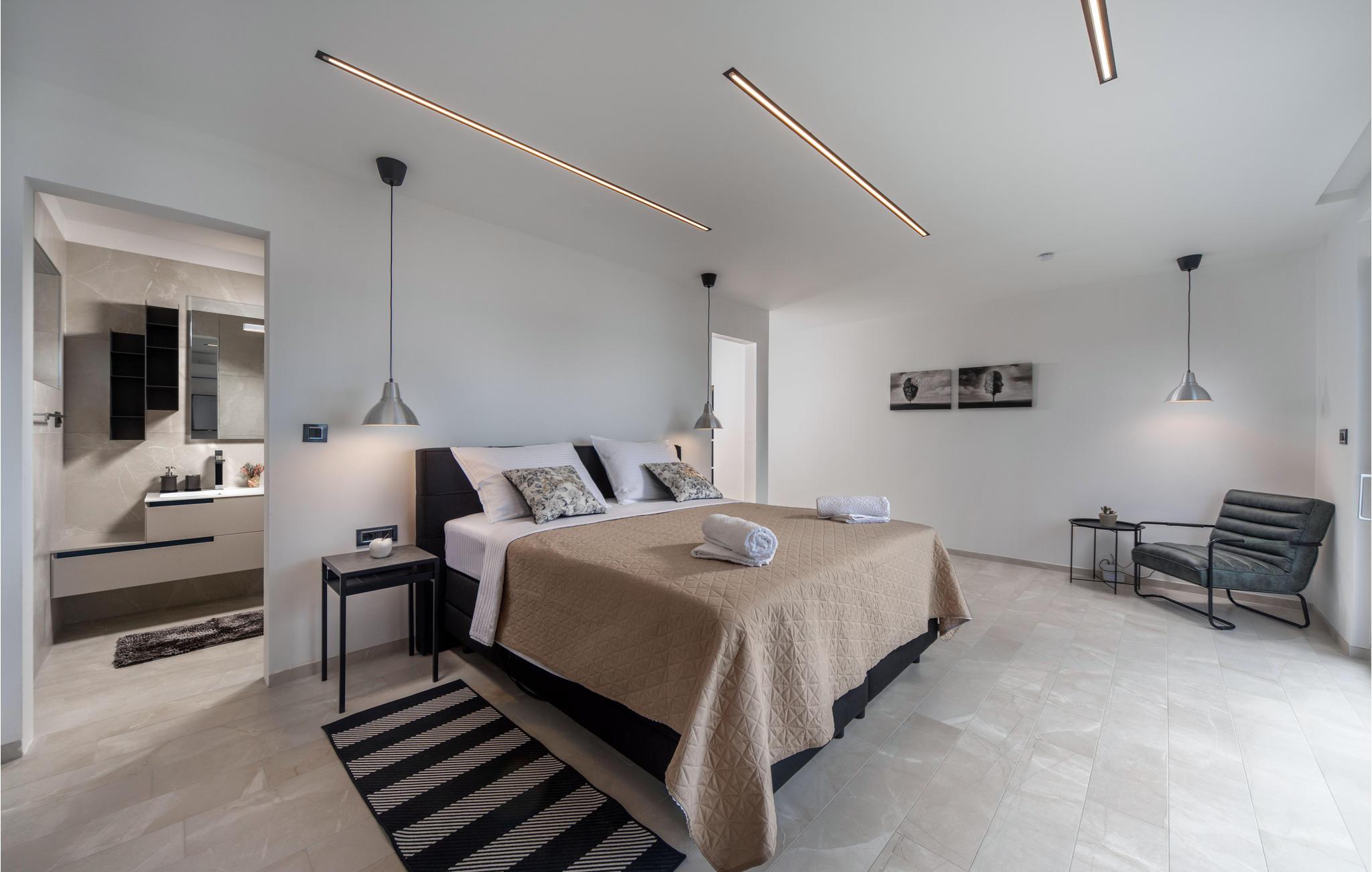Dette komfortable og luksuriøst indrettede sommerhus tilbyder jer en uforglemmelig ferie i Crikvenica. I stueetagen er der en stue med køkken og spisestue, 1 soveværelse, 1 badeværelse og et ekstra toilet, mens der på første sal er 3 soveværelser, 3 badeværelser og en opholdsstue med en multifunktionel motionsmaskine.