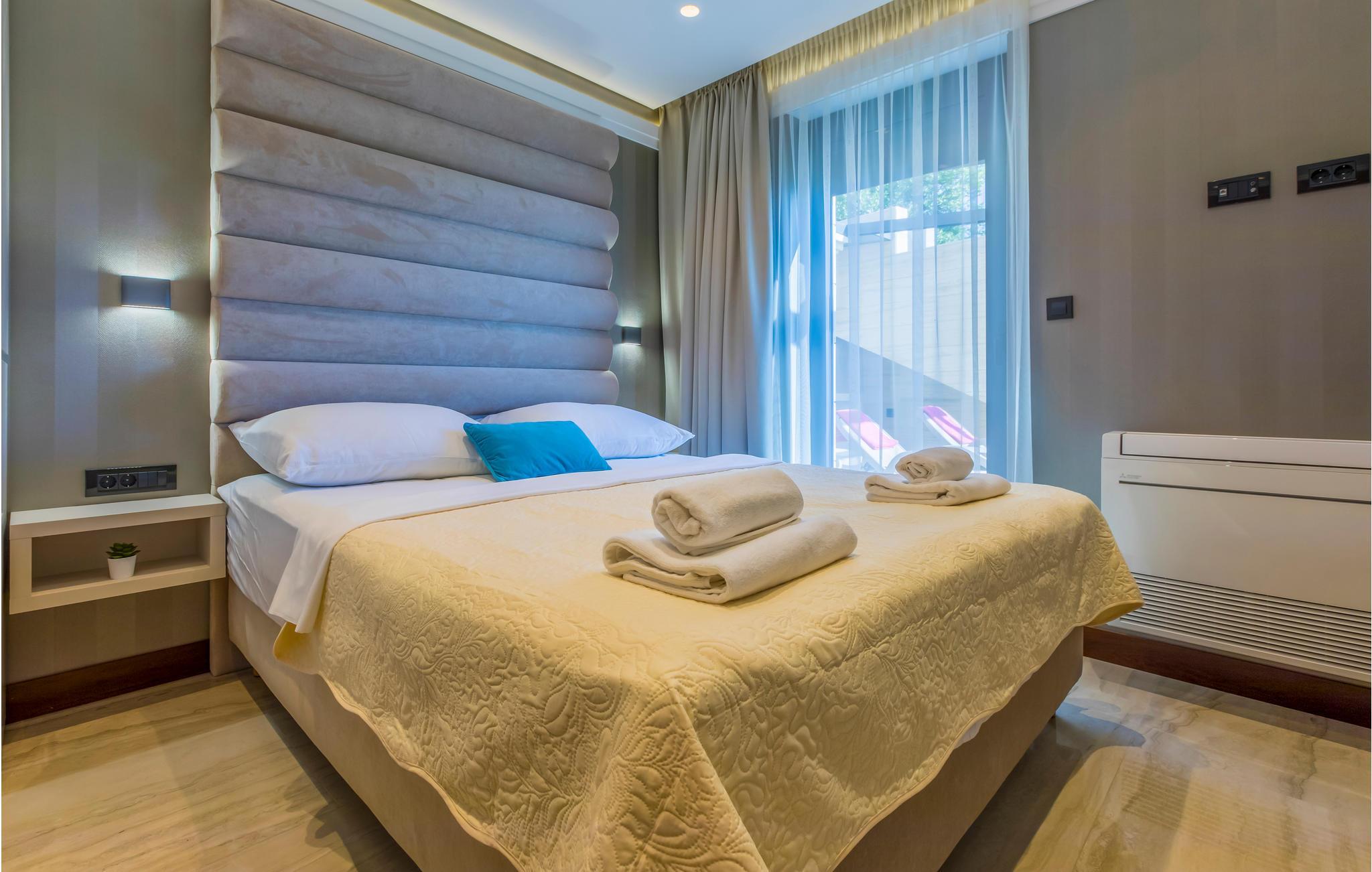 Tilbring skønne timer med at solbade fra liggestolene på den åbne terrasse. Hvis I trænger til en dukkert, ligger stenstranden kun få skridt væk, hvor I kan bade i krystalklart vand. På køligere dage har I en fællessauna til rådighed. Om aftenen kan I spise på restaurant og gå en skøn tur langs kysten, mens I beundrer en fortryllende solnedgang. Eller I kan blive hjemme og selv tilberede et lækkert feriemåltid i lejlighedens rummelig og veludstyrede køkken. Afrund dagen med en cocktail på terrassen og flad efterfølgende ud foran fladskærmen i opholdsstuen.
