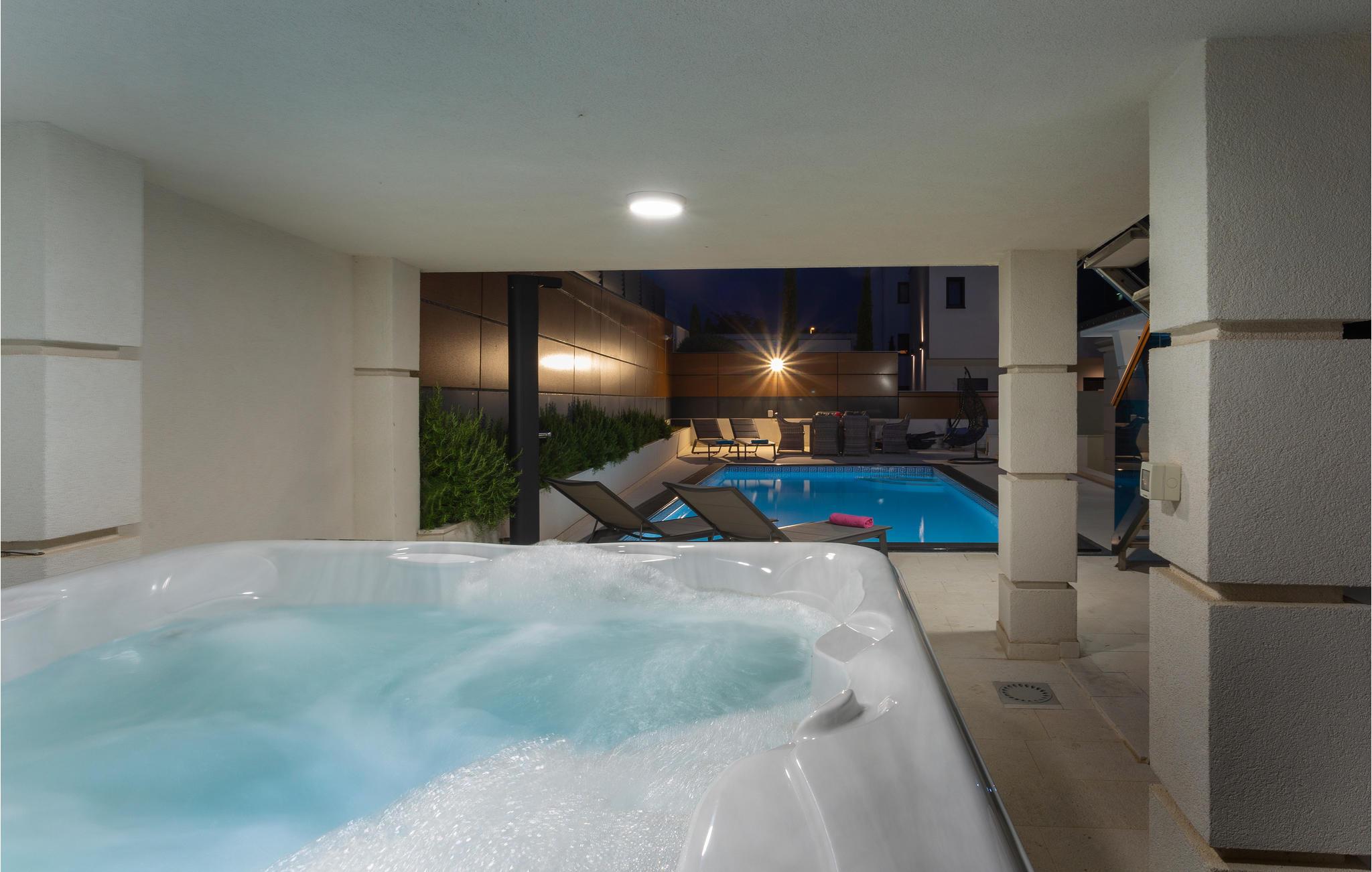 I kan også slappe meget af udendørs, der er mange smukke steder uden for huset. Nyd solen på terrassen og altanerne, tag en forfriskende dukkert i poolen og afslut dagen med et lækkert måltid fra grillen under åben himmel, eller se ud mod stjernehimlen med en dukkert i spabadet.