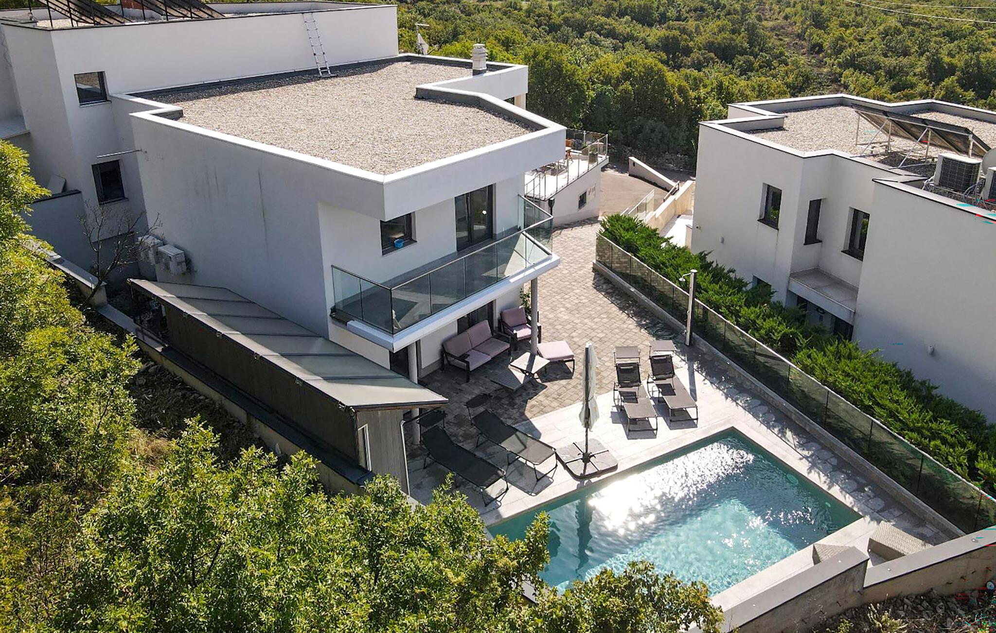Forkæl jer selv med en luksuriøs ferie i dette rummelige feriehus med pool og havudsigt. Træd indenfor og bliv betaget af det moderne og rummelige interiør i denne stilfulde villa. Der er masser af plads til at slippe væk fra hverdagens travlhed med hyggelige måltider, selv med en større familie eller en gruppe venner. Hold sjove madlavningsaftener, saml jer til underholdende spil i det store sofaområde, eller stream en film, som alle nyder efter en lang dag på stranden. På den øverste terrasse kan I nyde den smukke udsigt over det nærliggende hav. Server morgenmad her og se solnedgangen med et glas vin. I løbet af dagen inviterer den smukke, afsidesliggende pool jer til at tilbringe timevis med solbadning. Gå en tur langs Crikvenicas strandpromenade, tag en bådtur til øen Krk, og udforsk charmerende gamle byer med deres smalle gader og traditionelle taverner. Oplev den fascinerende undervandsverden, mens I snorkler eller dykker, vandr gennem den grønne Vinodol-dal, og besøg den historiske by Rijeka med dens museer og markeder.
