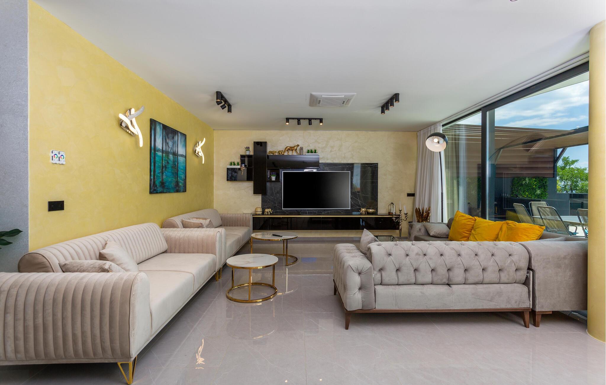 Huset har mange fremragende faciliteter. Herunder en stor, opvarmet udendørs swimmingpool, et indendørs spabad, en sauna på en overdækket tagterrasse samt en udendørs legeplads. Både unge og gamle får rigeligt for pengene her. I kan også nyde den panoramiske havudsigt over hele Kvarnerbugten og øerne Krk og Cres.