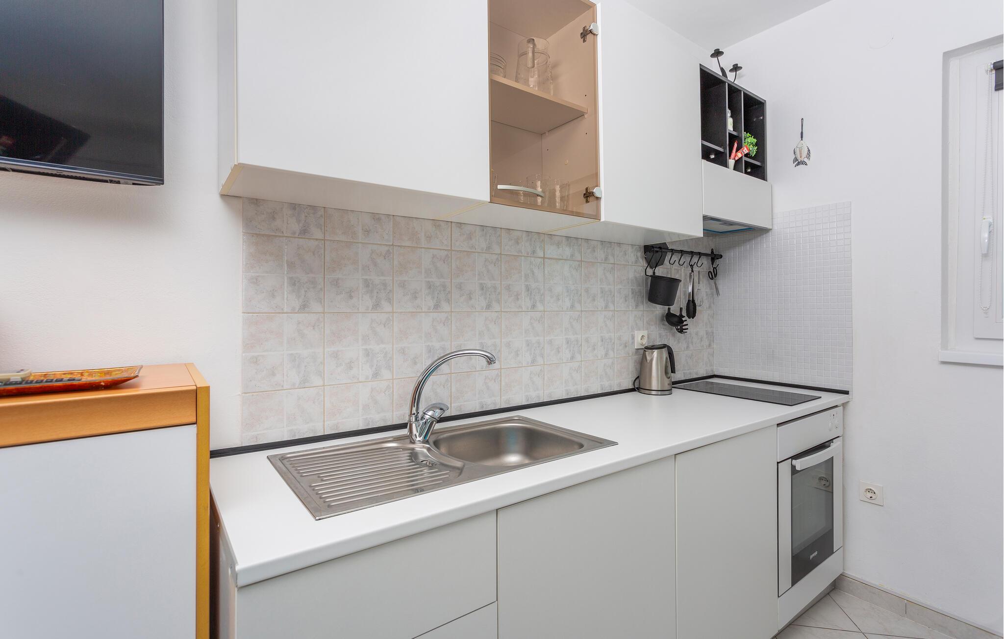I denne charmerende etværelseslejlighed, kun nogle få skridt fra havet, kan I nyde en ægte feel-good atmosfære. Den hyggeligt indrettede lejlighed er smart designet, så det åbne opholds- og soveværelse tilbyder maksimal komfort. Et veludstyret køkken og stilfulde detaljer gør jeres ophold særligt behageligt. Den lyse, luftige atmosfære lægger op til afslapning, og den lille hyggelige altan byder på en vidunderlig udsigt over havet. optimal til par, der leder efter et romantisk tilflugtssted eller små familier, der leder efter et optimalt udgangspunkt for deres aktiviteter.