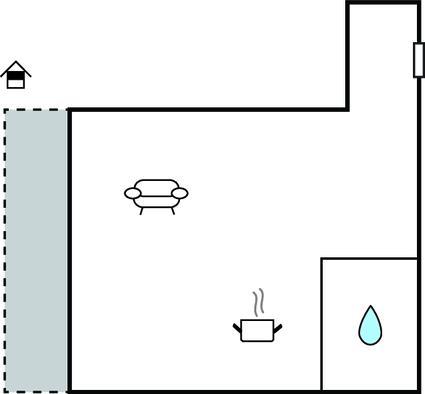 Opholdsstue/køkken 20m2 - 2 Sovepladser. (Dobbeltseng(e)). 1 Soveplads. (Sofa, madras eller lignende).