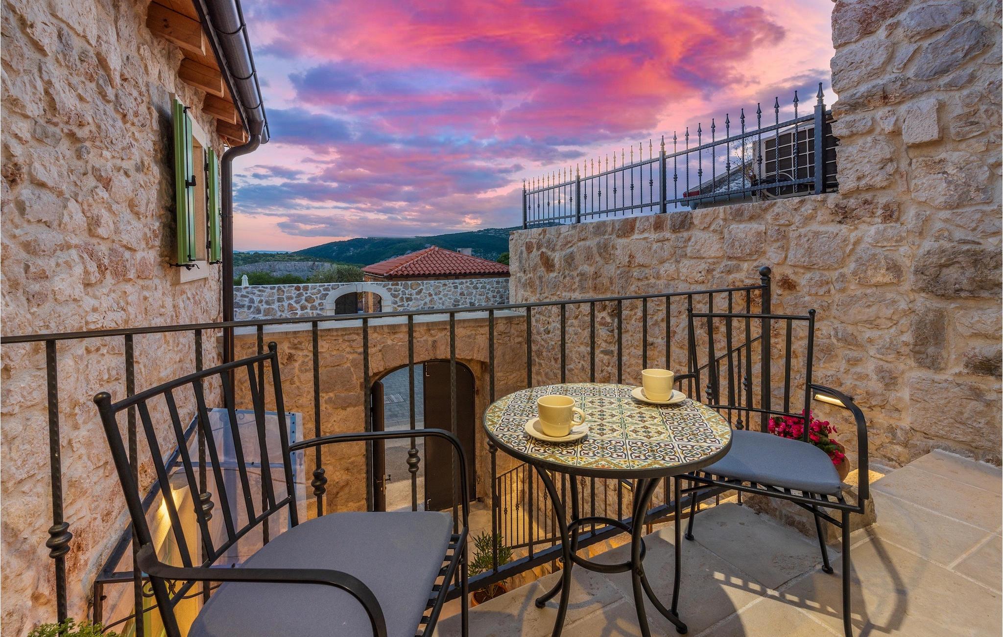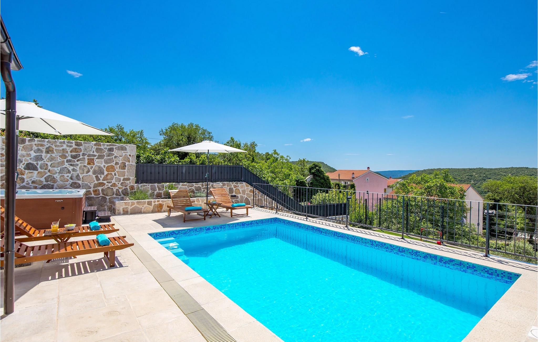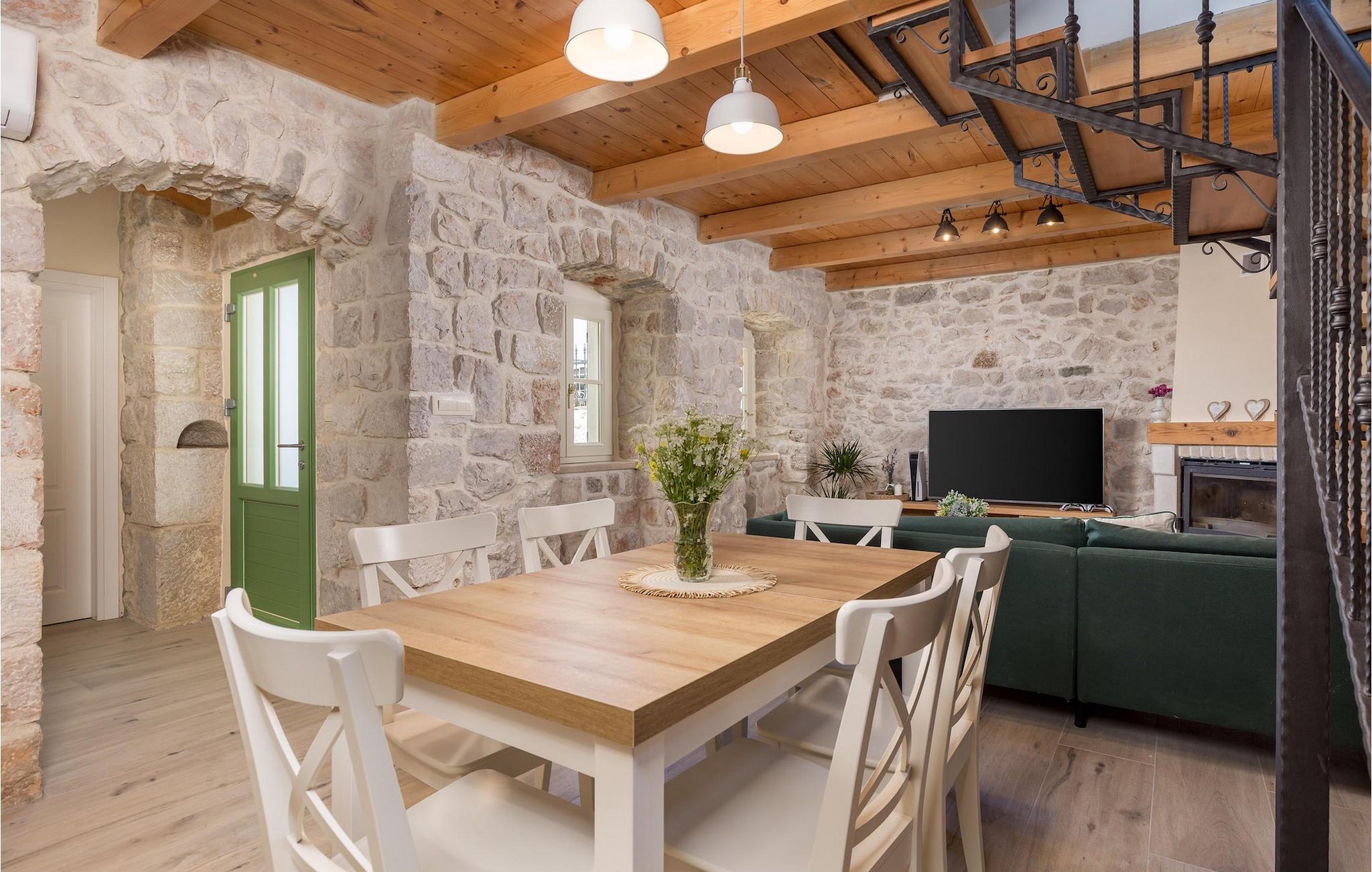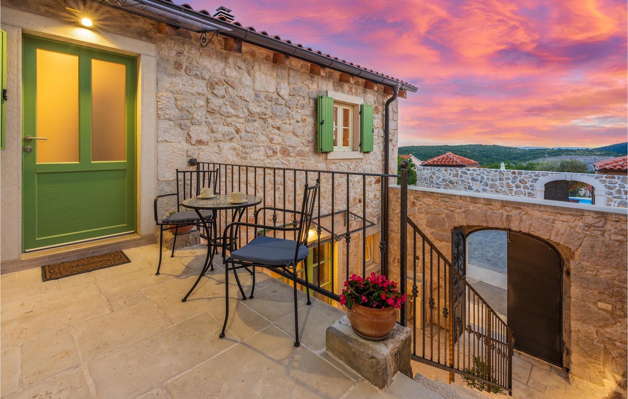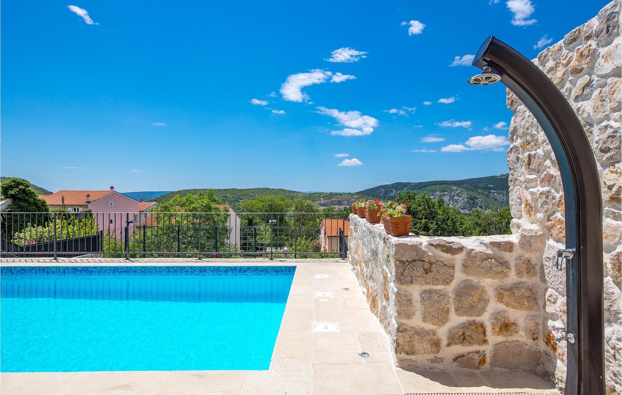 Villa Mavric, en smuk stenvilla vil give dig en drømmeferie. Det emmer af tradition og minder om de middelalderborge, der er typiske for Vinodol-området. På husets nederste etage med egen indgang er der soveværelse med eget badeværelse og dobbeltseng dekoreret med stenhvælving. Tilbring tid for dig selv i rekreationsrummet, som omfatter fitnesscenter og sauna, og det er også placeret i stueetagen med egen indgang. Denne etage er forbundet med første sal med en udendørs trappe. På husets første sal er der et soveværelse med eget badeværelse, et åbent område med en stue, et fuldt udstyret køkken og en spisestue, hvis træoverflader giver varme og er ideelle til at tilberede traditionelle opskrifter. Nyd morgensolens stråler, mens du nyder kaffe på den charmerende terrasse på første sal. På anden sal er der endnu et hyggeligt soveværelse med eget badeværelse. Alle værelser er udstyret med tv og aircondition. Lige over for adgangsvejen er der en parkeringsplads og en have med swimmingpool. Forfrisk dig selv i swimmingpoolen eller i jacuzzien og nyd panoramaudsigten over Grižane. I det overdækkede område ved poolen kan du tilbringe uforglemmelige sammenkomster med familie og venner med en grill, forfriskende drinks, brætspil eller dart. Hav det sjovt i haven med bordtennis, og der er et bord og stole, der er ideelle til børns leg. Gå ikke glip af en ferie, som du vil huske i lang tid, og nyd den lokale atmosfære i Grižane. Grižane er en landsby i nærheden af Crikvenica. Det er kendt for sine middelalderborge og Frankopan-familiens rige historie. Du vil blive henrykt over den omkringliggende skov og stilheden, som dette sted tilbyder. Der er masser af vandre- og cykelstier, der forbinder dig med Crikvenica-kysten og smukke strande. Nyd det rige traditionelle gastronomiske tilbud. Crikvenica, Selce, Dramalj, Jadranovo er blot et par kilometer væk. Ikke langt fra Grižane ligger nationalparken Plitvice Lakes. Besøg dette lille sted, hvor du vil blive fortryllet af duften af fyrreskoven og havet, og opdag det brede udvalg af restauranter i området.