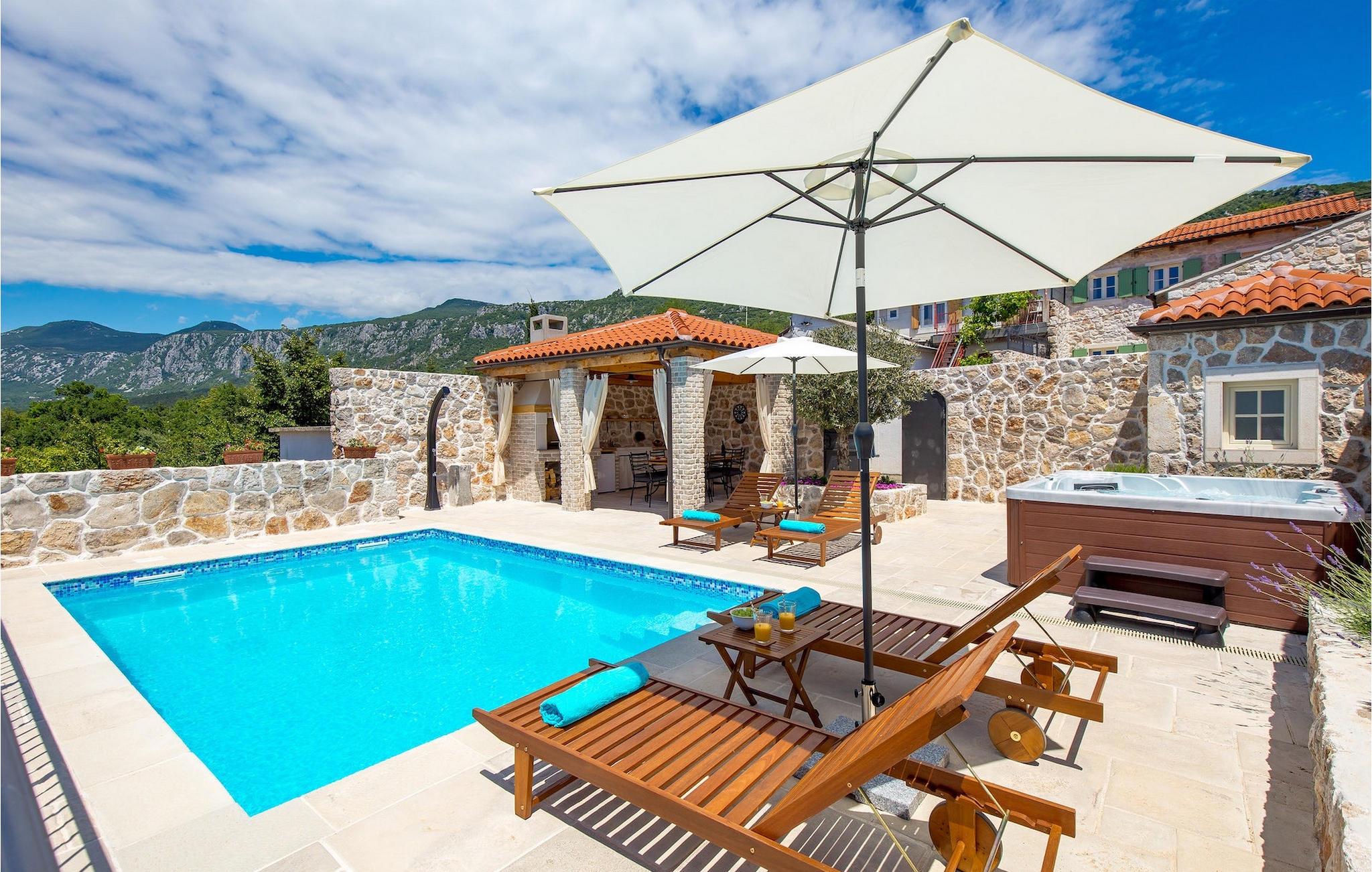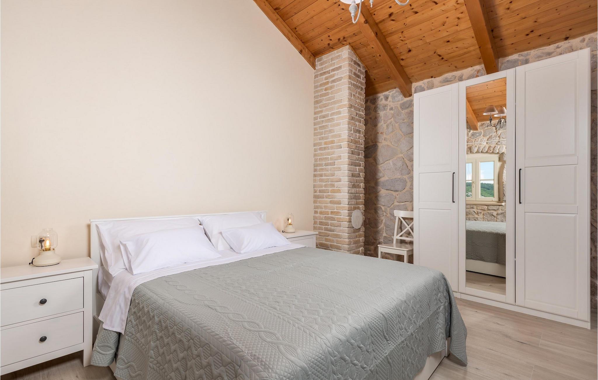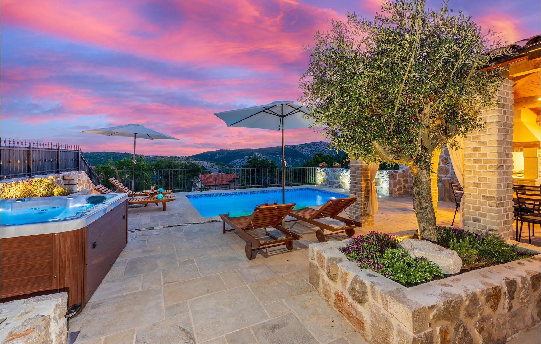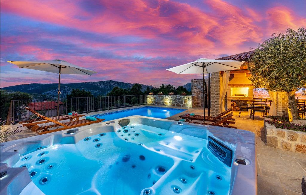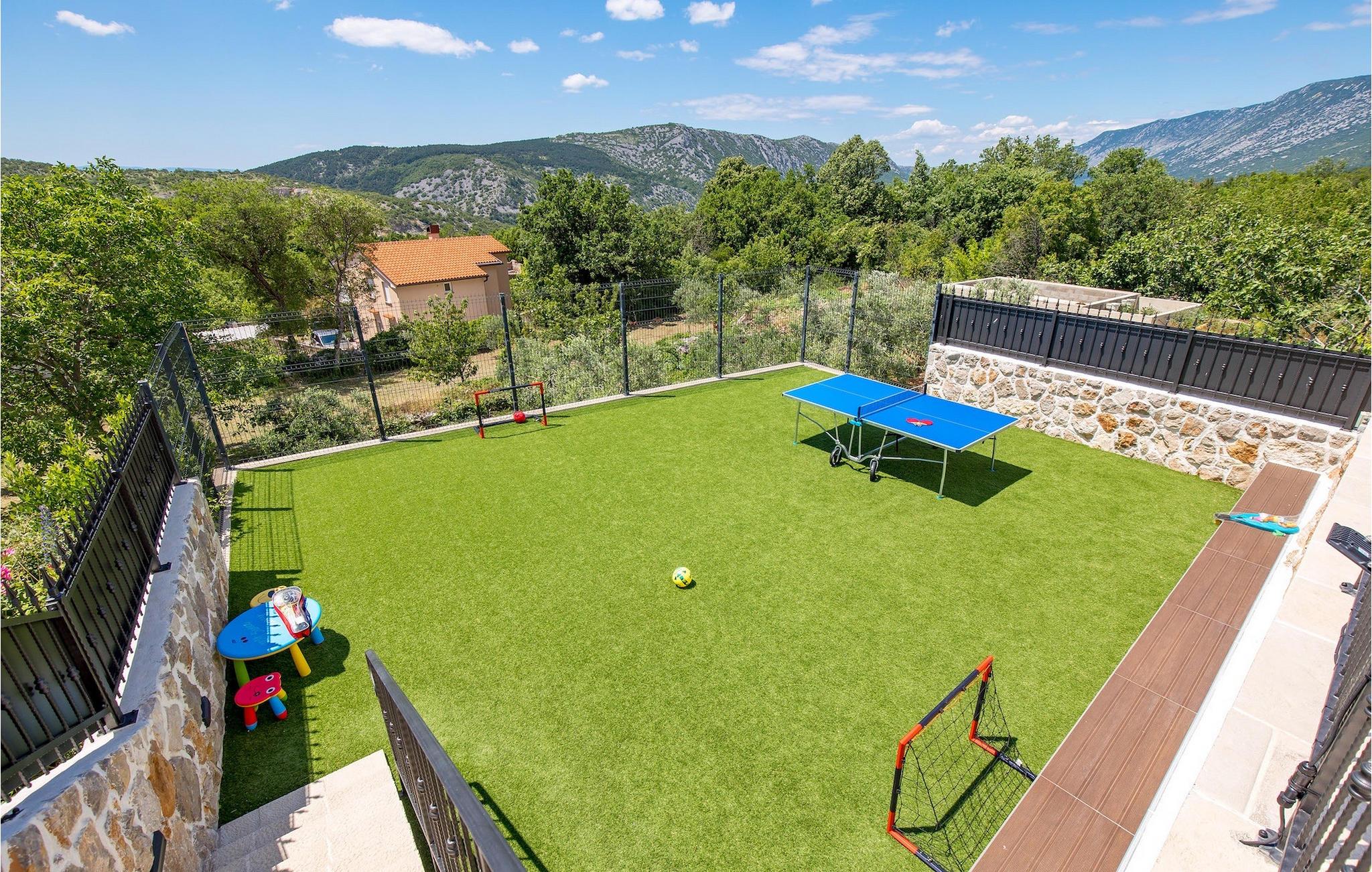 Villa Mavric, en smuk stenvilla vil give dig en drømmeferie. Det emmer af tradition og minder om de middelalderborge, der er typiske for Vinodol-området. På husets nederste etage med egen indgang er der soveværelse med eget badeværelse og dobbeltseng dekoreret med stenhvælving. Tilbring tid for dig selv i rekreationsrummet, som omfatter fitnesscenter og sauna, og det er også placeret i stueetagen med egen indgang. Denne etage er forbundet med første sal med en udendørs trappe. På husets første sal er der et soveværelse med eget badeværelse, et åbent område med en stue, et fuldt udstyret køkken og en spisestue, hvis træoverflader giver varme og er ideelle til at tilberede traditionelle opskrifter. Nyd morgensolens stråler, mens du nyder kaffe på den charmerende terrasse på første sal. På anden sal er der endnu et hyggeligt soveværelse med eget badeværelse. Alle værelser er udstyret med tv og aircondition. Lige over for adgangsvejen er der en parkeringsplads og en have med swimmingpool. Forfrisk dig selv i swimmingpoolen eller i jacuzzien og nyd panoramaudsigten over Grižane. I det overdækkede område ved poolen kan du tilbringe uforglemmelige sammenkomster med familie og venner med en grill, forfriskende drinks, brætspil eller dart. Hav det sjovt i haven med bordtennis, og der er et bord og stole, der er ideelle til børns leg. Gå ikke glip af en ferie, som du vil huske i lang tid, og nyd den lokale atmosfære i Grižane. Grižane er en landsby i nærheden af Crikvenica. Det er kendt for sine middelalderborge og Frankopan-familiens rige historie. Du vil blive henrykt over den omkringliggende skov og stilheden, som dette sted tilbyder. Der er masser af vandre- og cykelstier, der forbinder dig med Crikvenica-kysten og smukke strande. Nyd det rige traditionelle gastronomiske tilbud. Crikvenica, Selce, Dramalj, Jadranovo er blot et par kilometer væk. Ikke langt fra Grižane ligger nationalparken Plitvice Lakes. Besøg dette lille sted, hvor du vil blive fortryllet af duften af fyrreskoven og havet, og opdag det brede udvalg af restauranter i området.