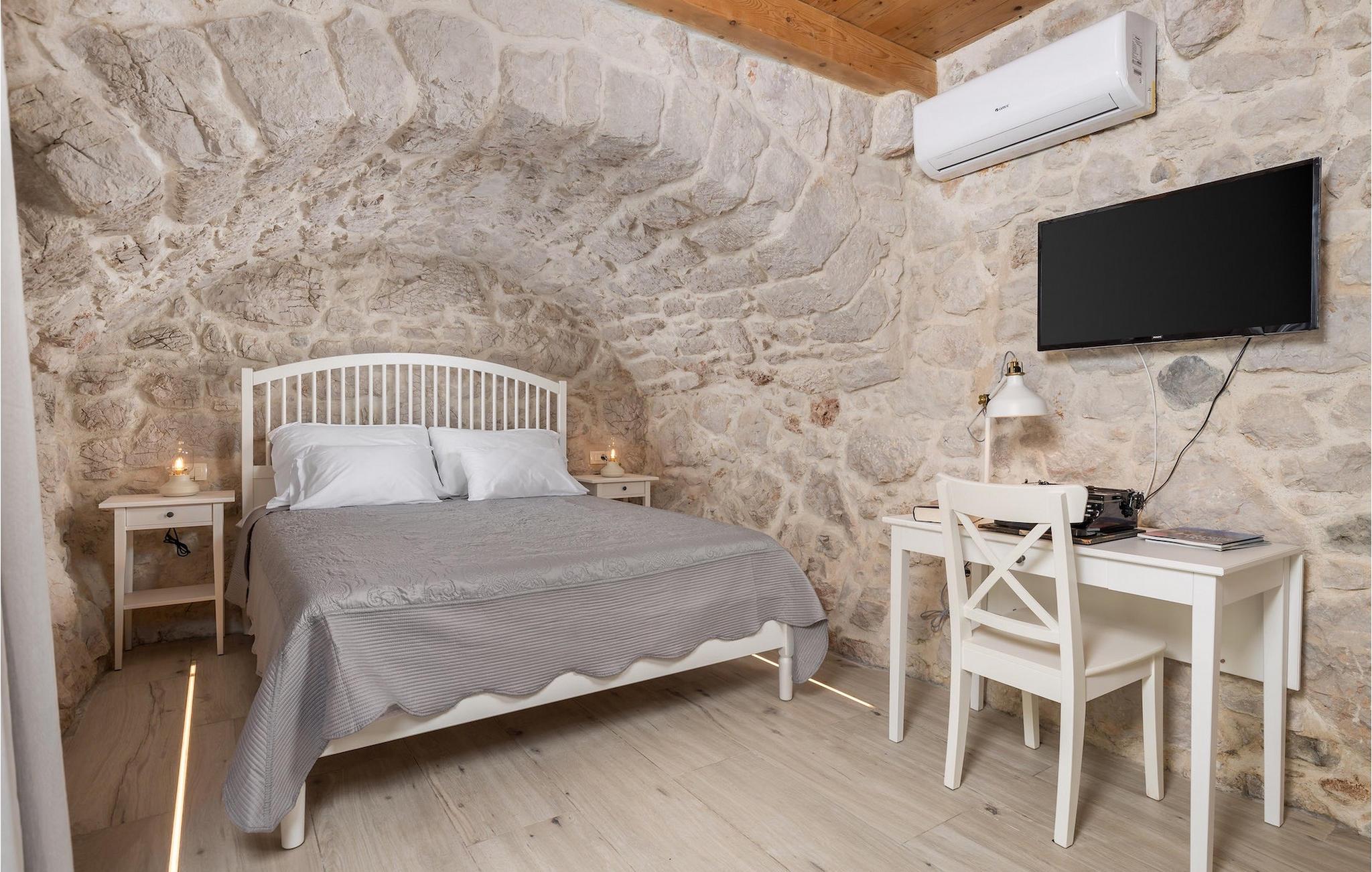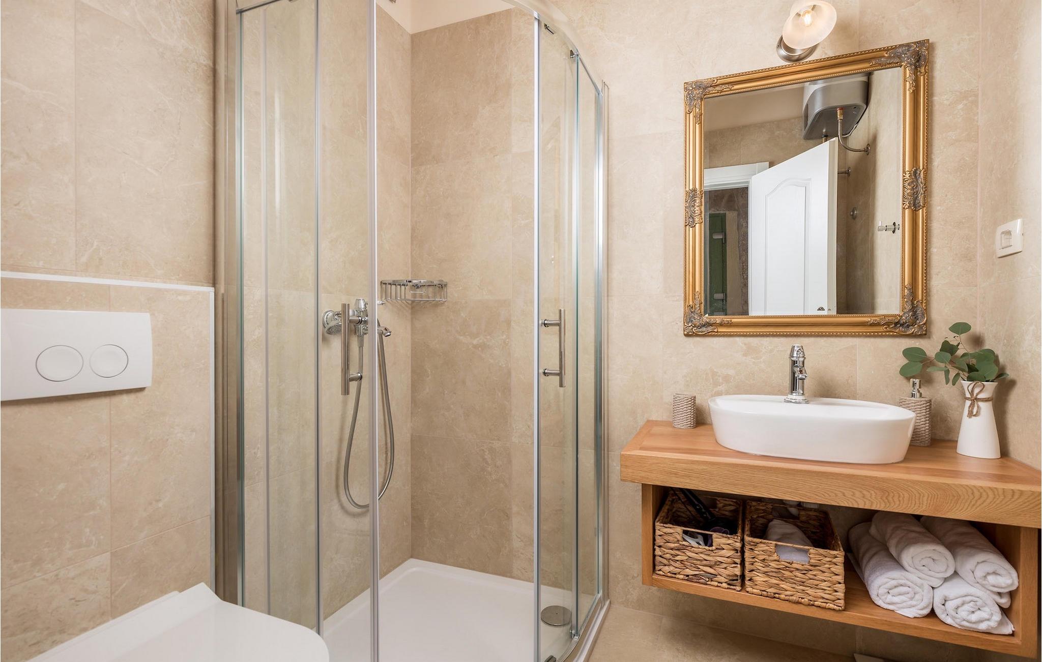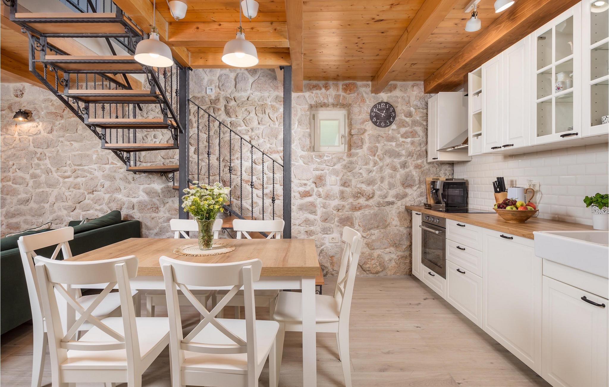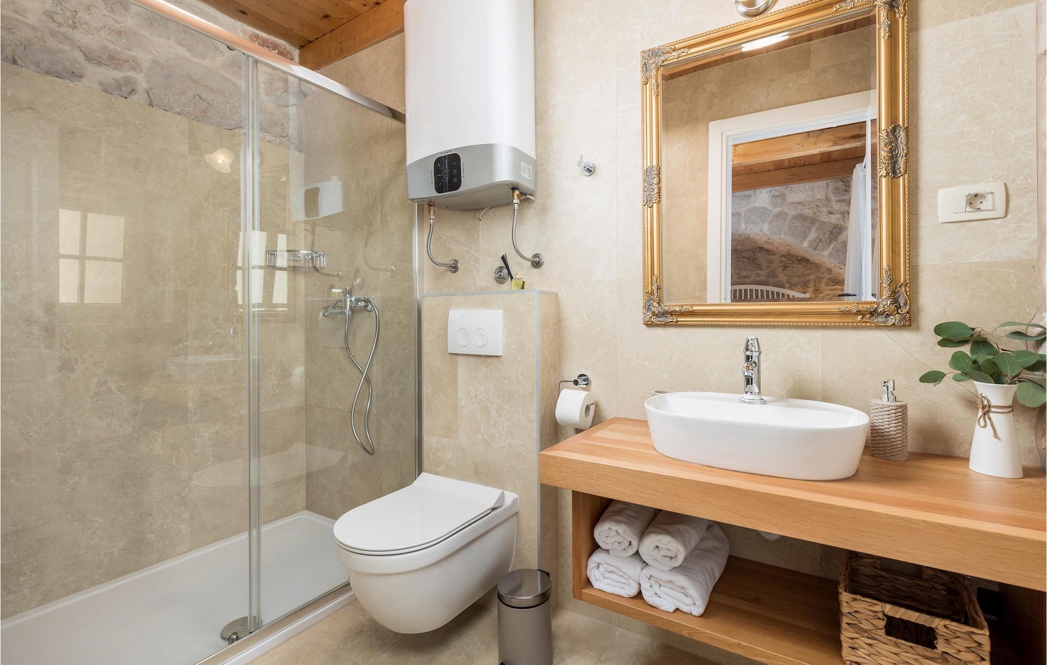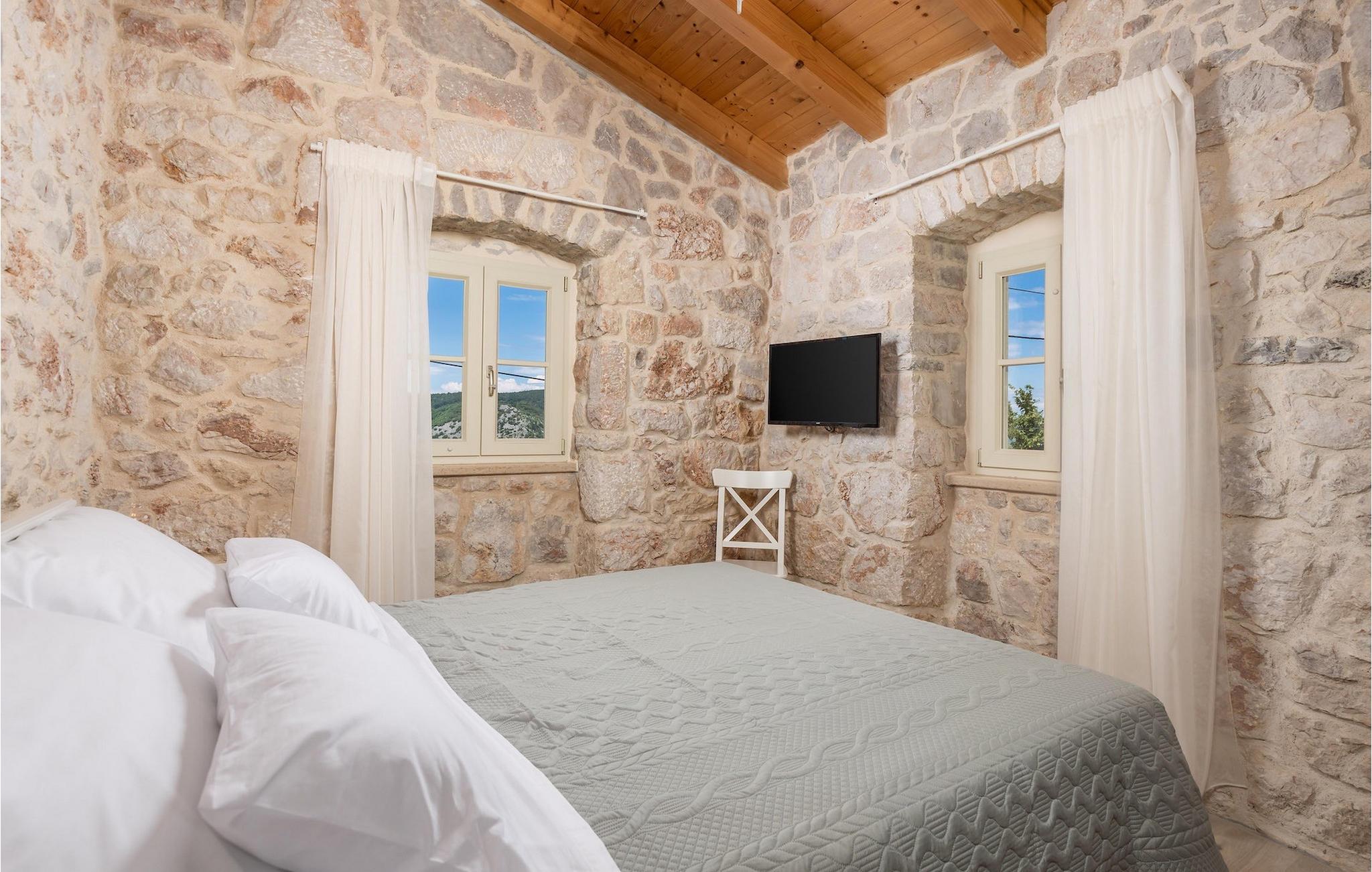Villa Mavric, en smuk stenvilla vil give dig en drømmeferie. Det emmer af tradition og minder om de middelalderborge, der er typiske for Vinodol-området. På husets nederste etage med egen indgang er der soveværelse med eget badeværelse og dobbeltseng dekoreret med stenhvælving. Tilbring tid for dig selv i rekreationsrummet, som omfatter fitnesscenter og sauna, og det er også placeret i stueetagen med egen indgang. Denne etage er forbundet med første sal med en udendørs trappe. På husets første sal er der et soveværelse med eget badeværelse, et åbent område med en stue, et fuldt udstyret køkken og en spisestue, hvis træoverflader giver varme og er ideelle til at tilberede traditionelle opskrifter. Nyd morgensolens stråler, mens du nyder kaffe på den charmerende terrasse på første sal. På anden sal er der endnu et hyggeligt soveværelse med eget badeværelse. Alle værelser er udstyret med tv og aircondition. Lige over for adgangsvejen er der en parkeringsplads og en have med swimmingpool. Forfrisk dig selv i swimmingpoolen eller i jacuzzien og nyd panoramaudsigten over Grižane. I det overdækkede område ved poolen kan du tilbringe uforglemmelige sammenkomster med familie og venner med en grill, forfriskende drinks, brætspil eller dart. Hav det sjovt i haven med bordtennis, og der er et bord og stole, der er ideelle til børns leg. Gå ikke glip af en ferie, som du vil huske i lang tid, og nyd den lokale atmosfære i Grižane. Grižane er en landsby i nærheden af Crikvenica. Det er kendt for sine middelalderborge og Frankopan-familiens rige historie. Du vil blive henrykt over den omkringliggende skov og stilheden, som dette sted tilbyder. Der er masser af vandre- og cykelstier, der forbinder dig med Crikvenica-kysten og smukke strande. Nyd det rige traditionelle gastronomiske tilbud. Crikvenica, Selce, Dramalj, Jadranovo er blot et par kilometer væk. Ikke langt fra Grižane ligger nationalparken Plitvice Lakes. Besøg dette lille sted, hvor du vil blive fortryllet af duften af fyrreskoven og havet, og opdag det brede udvalg af restauranter i området.