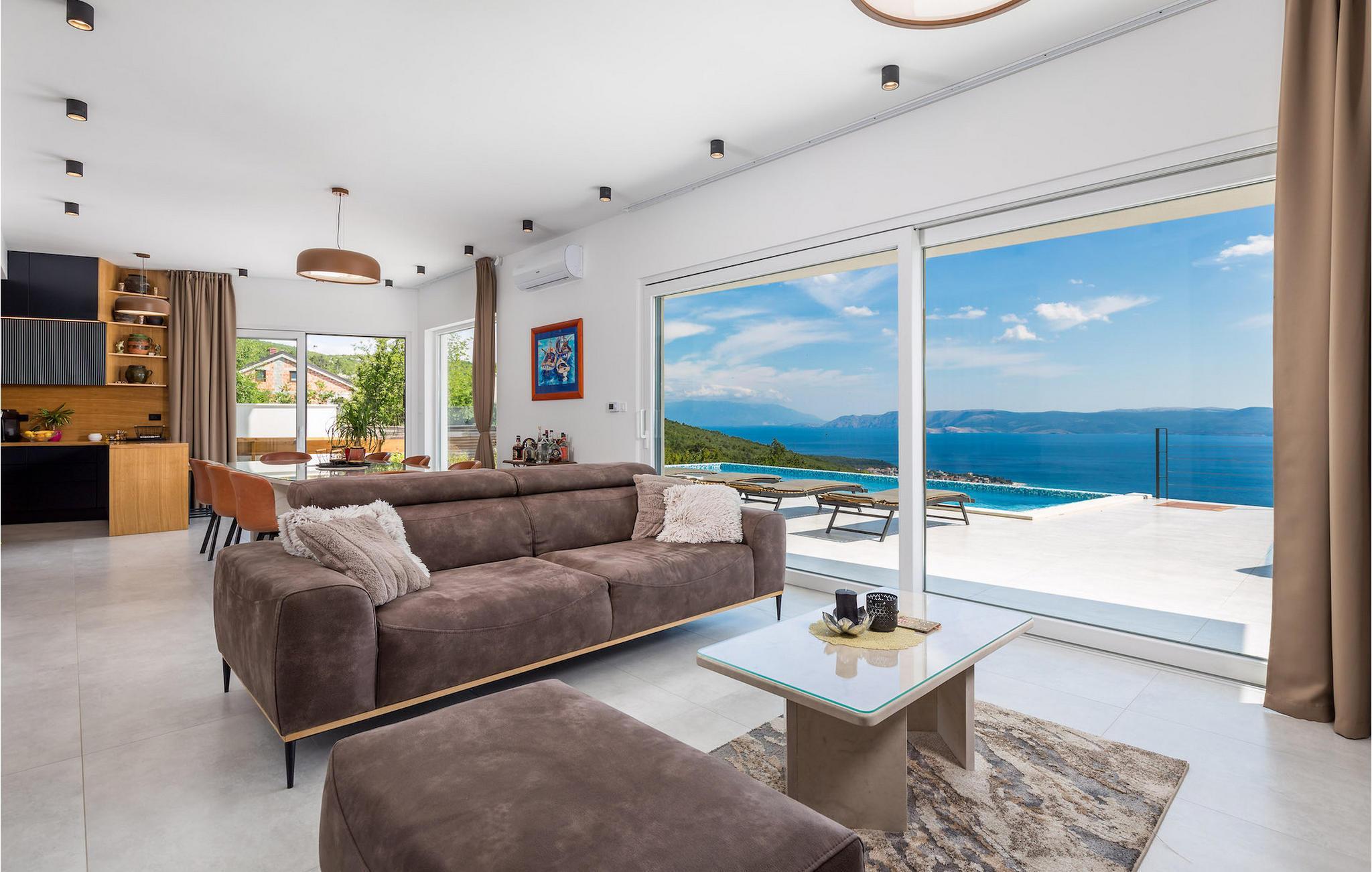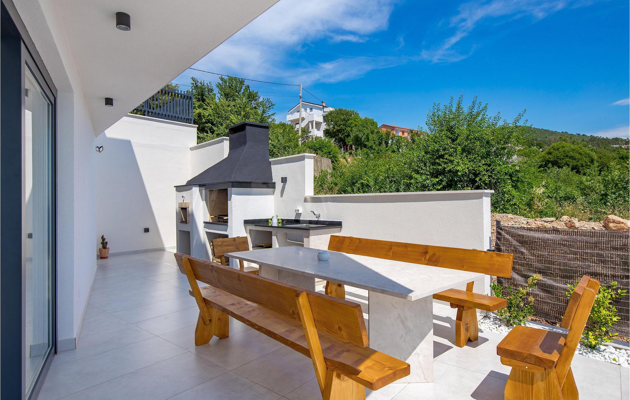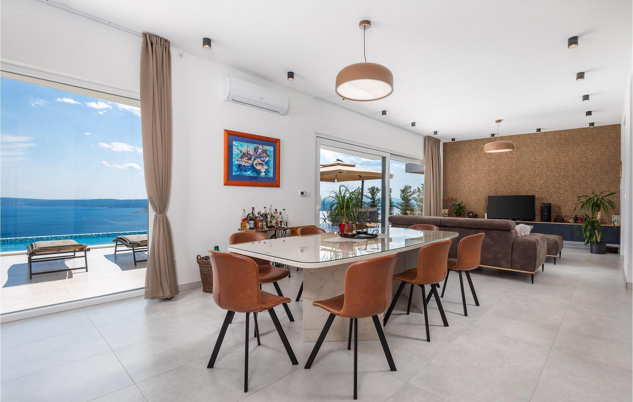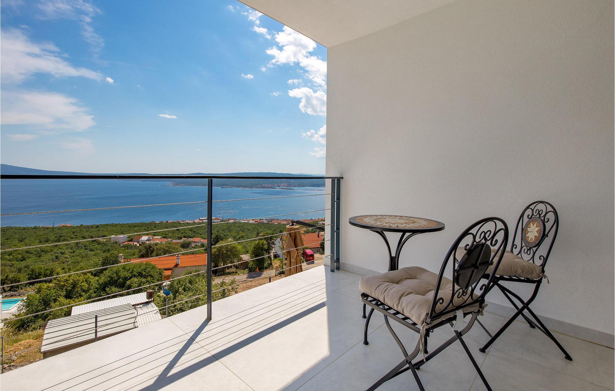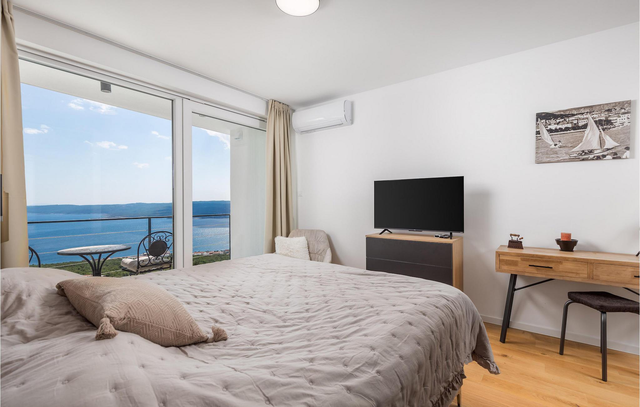 Moderne Villa Murn vil forbløffe dig med sin forbløffende panoramaudsigt over havet lige fra den private pool på kanten af terrassen. Ved siden af poolen kan du nyde solskinnet på 6 strandstole eller køle ned i det skyggefulde loungeområde. Udekøkkenet med grill og spiseplads til op til 10 gæster er perfekt til en privat middagsoplevelse med udsigt. Gennem den delvise vinduesvæg kan du komme ind i stuen, dækket af naturligt lys. På samme etage er det fuldt udstyret køkken og et andet spisebord til op til 8 personer. En etage oppe finder du 3 komfortable dobbeltværelser, hver med eget badeværelse og tv. Den solbelyste balkon byder på 2 separate små borde til to personer hver for at nyde udsigten over morgenkaffen. For en luksuriøs ferie med en uforglemmelig udsigt er Vila Murn det rigtige valg. Villa Murn ligger i Crikvenica, hvor du kan nyde sjove aktiviteter såsom dykning og besøge adrenalinparker. For en mere fredelig aktivitet kan du nyde udsigten over den smukke kyst fra pariserhjulet eller slappe af på en af de fantastiske strande. Omkring en halv time væk kan du besøge Rijeka og udforske Trsat Slot. Slottets gårdhave er nu omdannet til restaurant og er perfekt til en unik middagsoplevelse ved en fæstning.