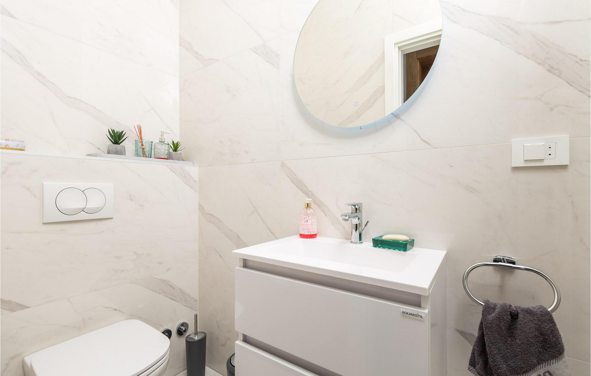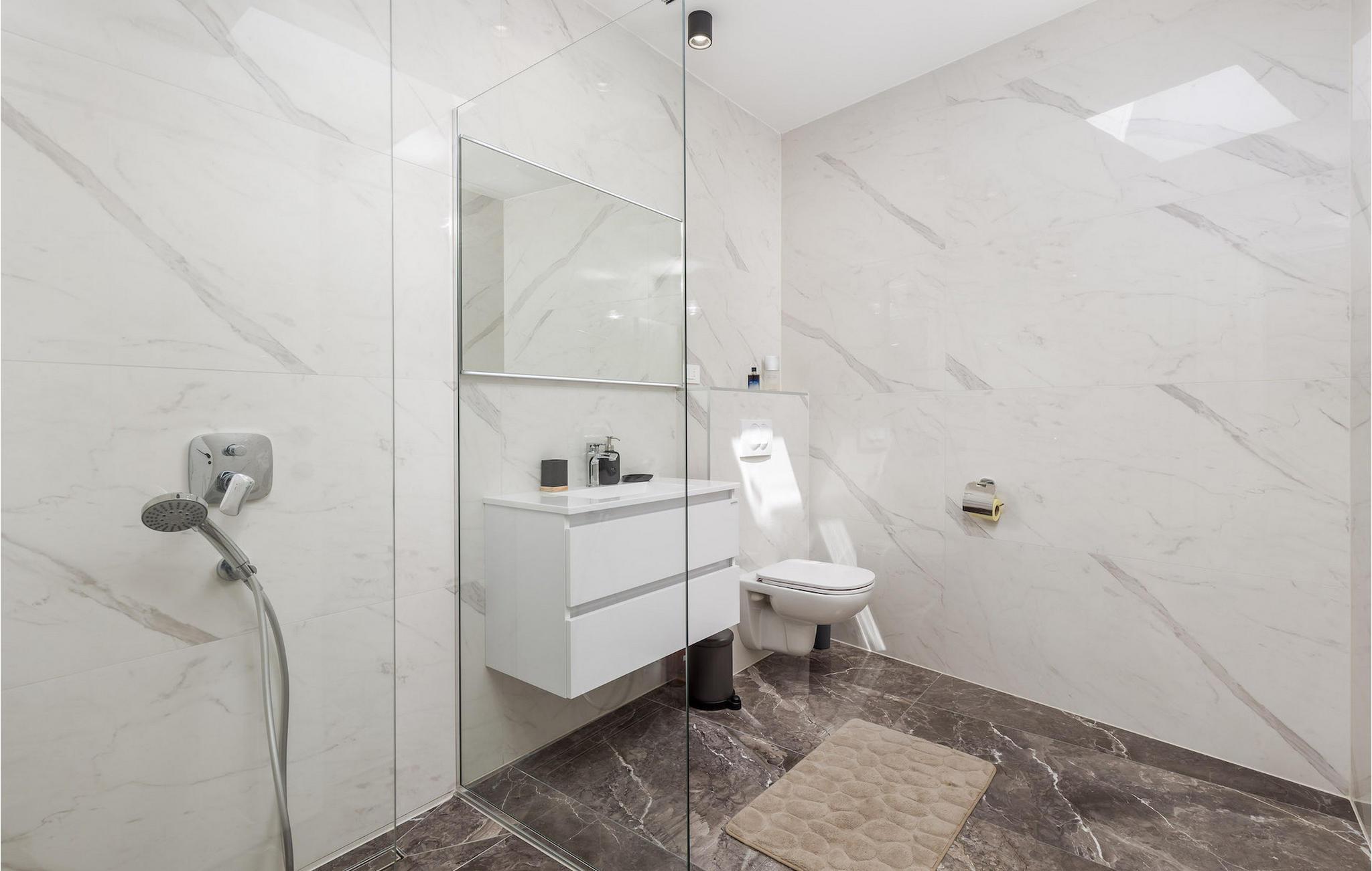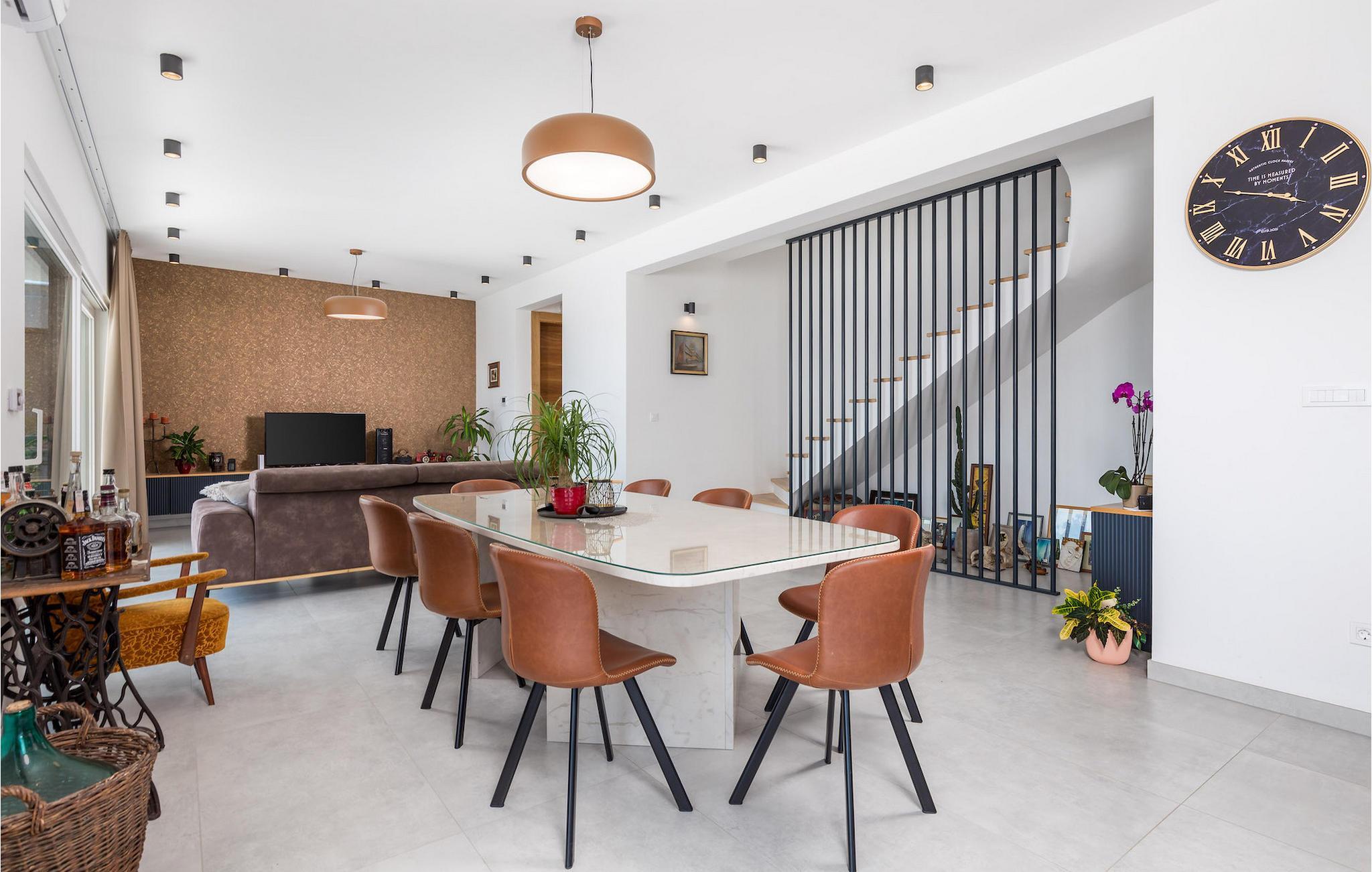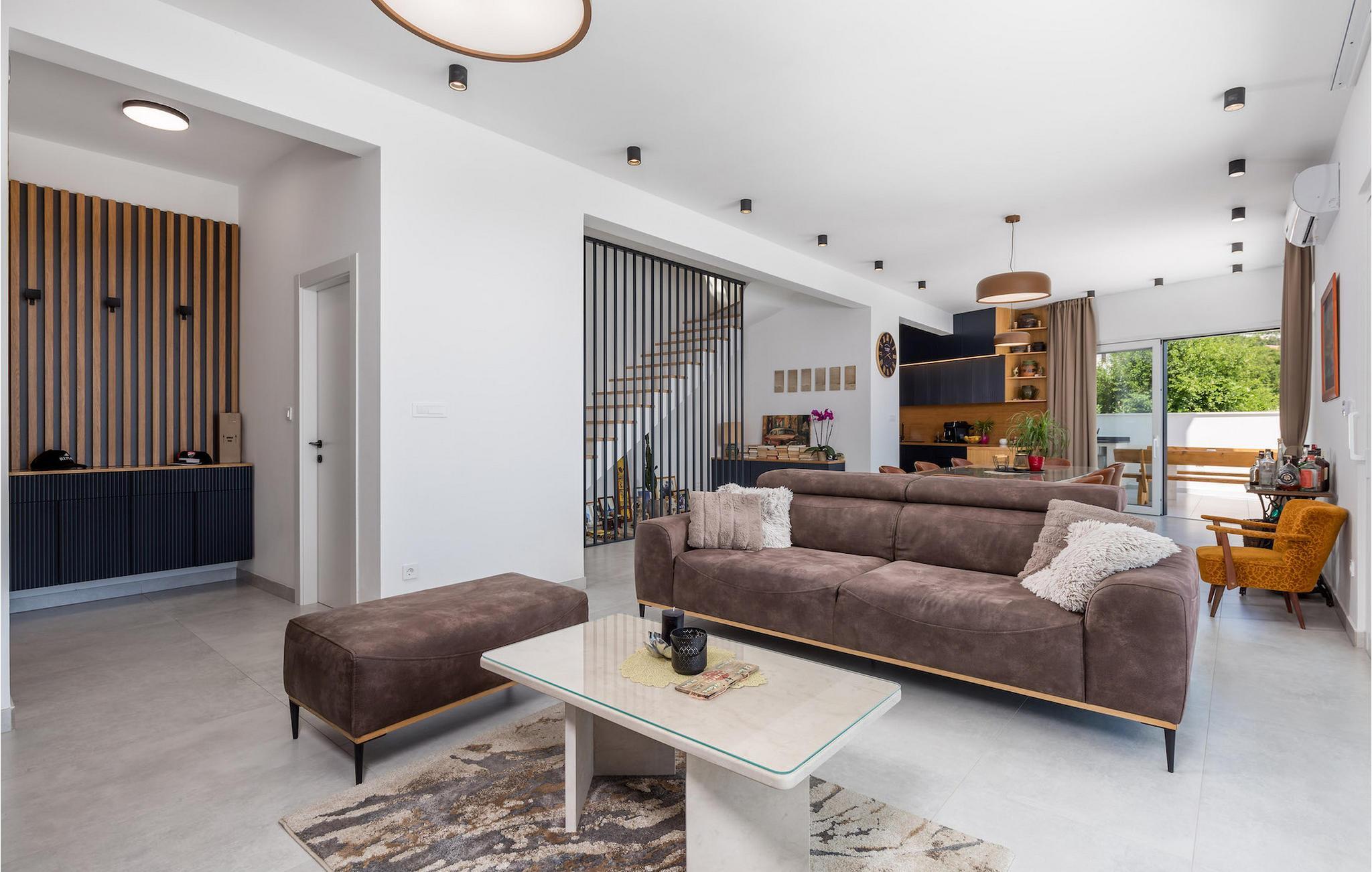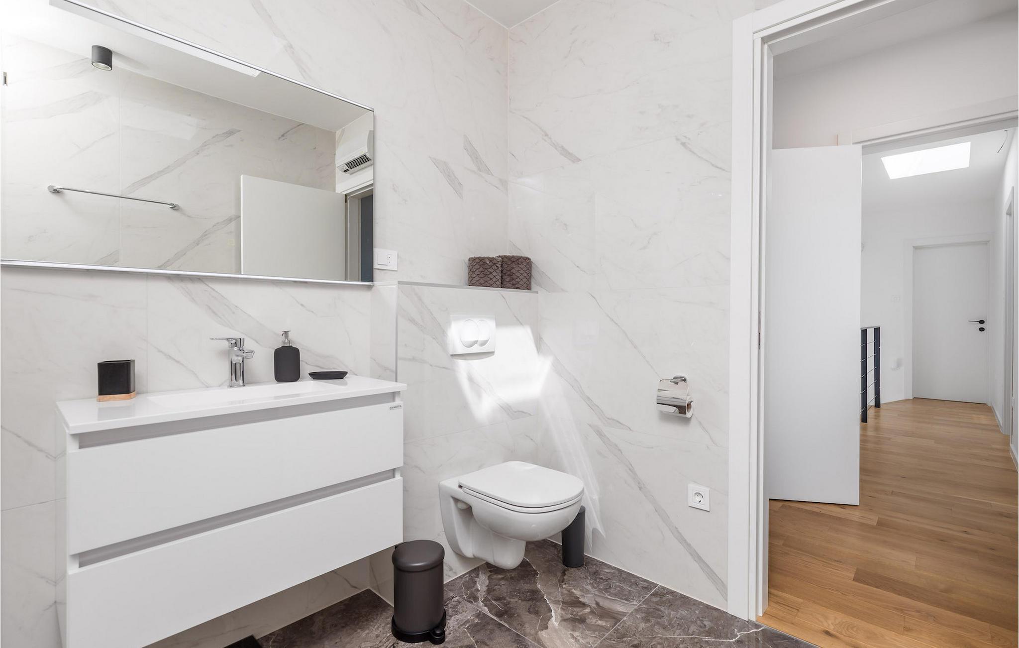 Moderne Villa Murn vil forbløffe dig med sin forbløffende panoramaudsigt over havet lige fra den private pool på kanten af terrassen. Ved siden af poolen kan du nyde solskinnet på 6 strandstole eller køle ned i det skyggefulde loungeområde. Udekøkkenet med grill og spiseplads til op til 10 gæster er perfekt til en privat middagsoplevelse med udsigt. Gennem den delvise vinduesvæg kan du komme ind i stuen, dækket af naturligt lys. På samme etage er det fuldt udstyret køkken og et andet spisebord til op til 8 personer. En etage oppe finder du 3 komfortable dobbeltværelser, hver med eget badeværelse og tv. Den solbelyste balkon byder på 2 separate små borde til to personer hver for at nyde udsigten over morgenkaffen. For en luksuriøs ferie med en uforglemmelig udsigt er Vila Murn det rigtige valg. Villa Murn ligger i Crikvenica, hvor du kan nyde sjove aktiviteter såsom dykning og besøge adrenalinparker. For en mere fredelig aktivitet kan du nyde udsigten over den smukke kyst fra pariserhjulet eller slappe af på en af de fantastiske strande. Omkring en halv time væk kan du besøge Rijeka og udforske Trsat Slot. Slottets gårdhave er nu omdannet til restaurant og er perfekt til en unik middagsoplevelse ved en fæstning.