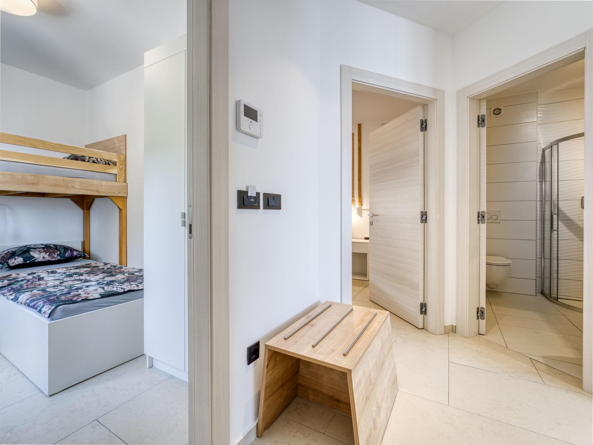"Dita 4", 3-room apartment 70 m2 on 1st floor. Modern furnishings: living/dining room with 1 double sofabed (140 cm, length 180 cm), satellite TV. Exit to the balcony. 1 room with 1 french bed (160 cm, length 200 cm), satellite TV. 1 room, 2 bunk beds (90 cm, length 200 cm). Open kitchen (dishwasher, 2 induction hot plates, toaster, kettle, microwave, electric coffee machine). Shower/WC, sep. WC. Forced-air heating. Balcony 8 m2. Terrace furniture. Facilities: washing machine, baby cot, hair dryer. Internet (WiFi, free).
