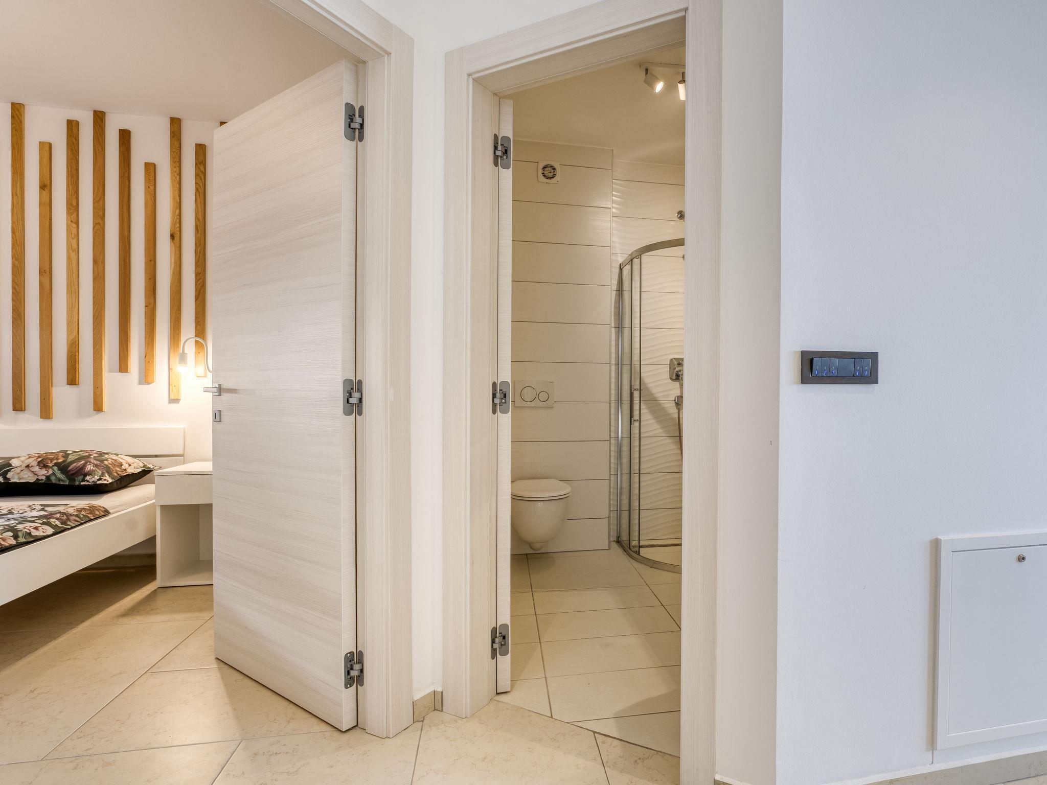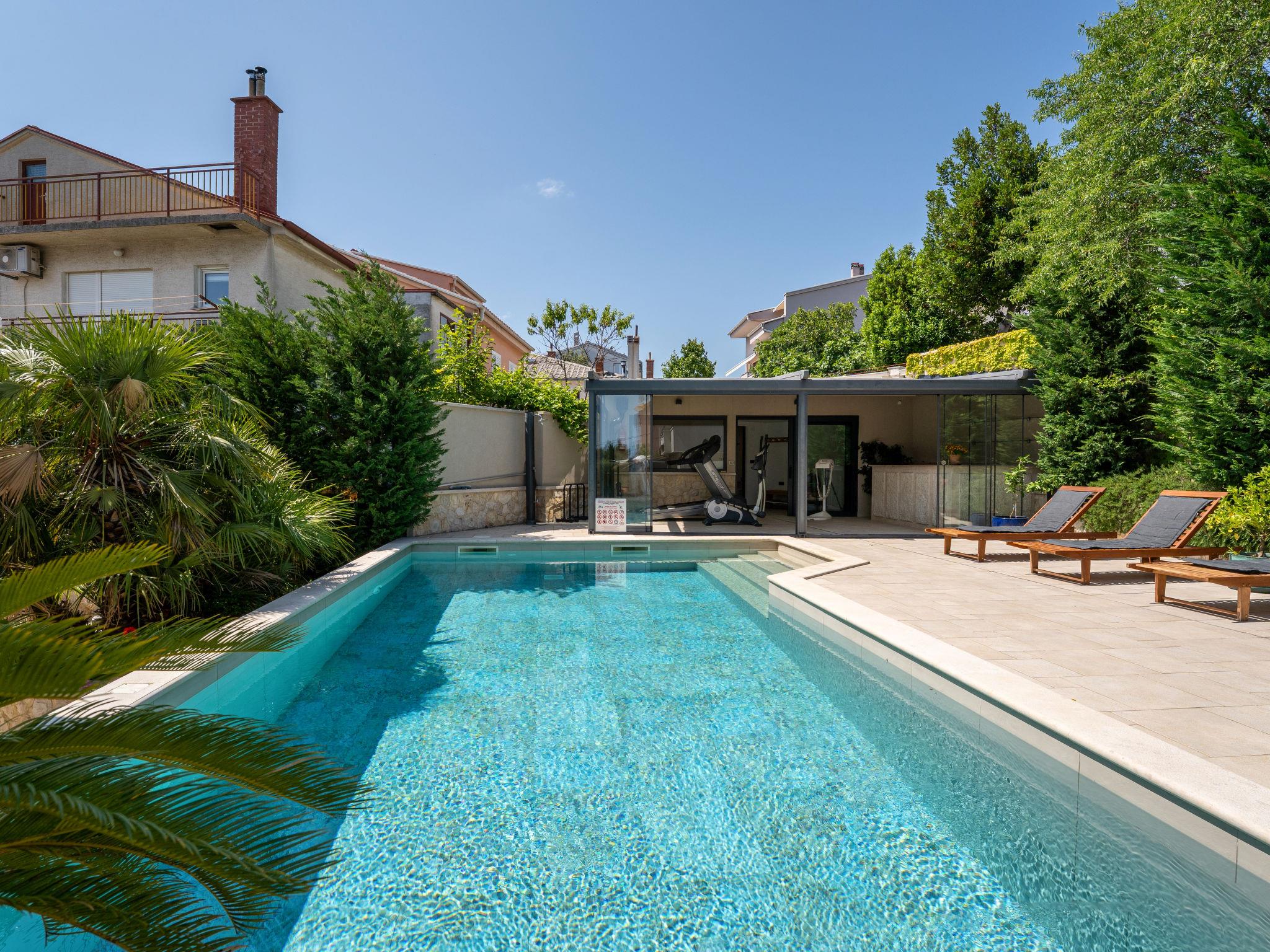 Crikvenica: Modern apartment house "Dita", 3 storeys. 1.3 km from the sea. For shared use: property 900 m2 (fenced), swimming pool angular (8 x 4 m, 32 m2, seasonal availability: 15.May. - 15.Oct.) with internal staircase. Outdoor shower, poolhouse with shower and WC, terrace (70 m2), barbecue. In the complex: internet access, sauna (extra). Parking at the house on the premises. Shop 1.1 km, bus stop 2.2 km, pebble beach 1.3 km. The owner does not accept any youth groups. Please note: the owner lives in the same residence.