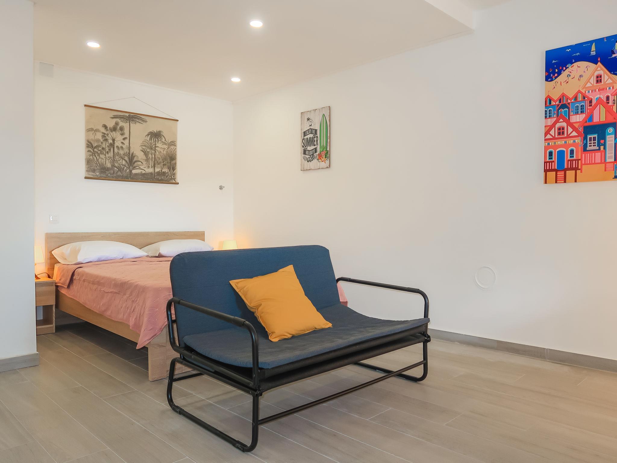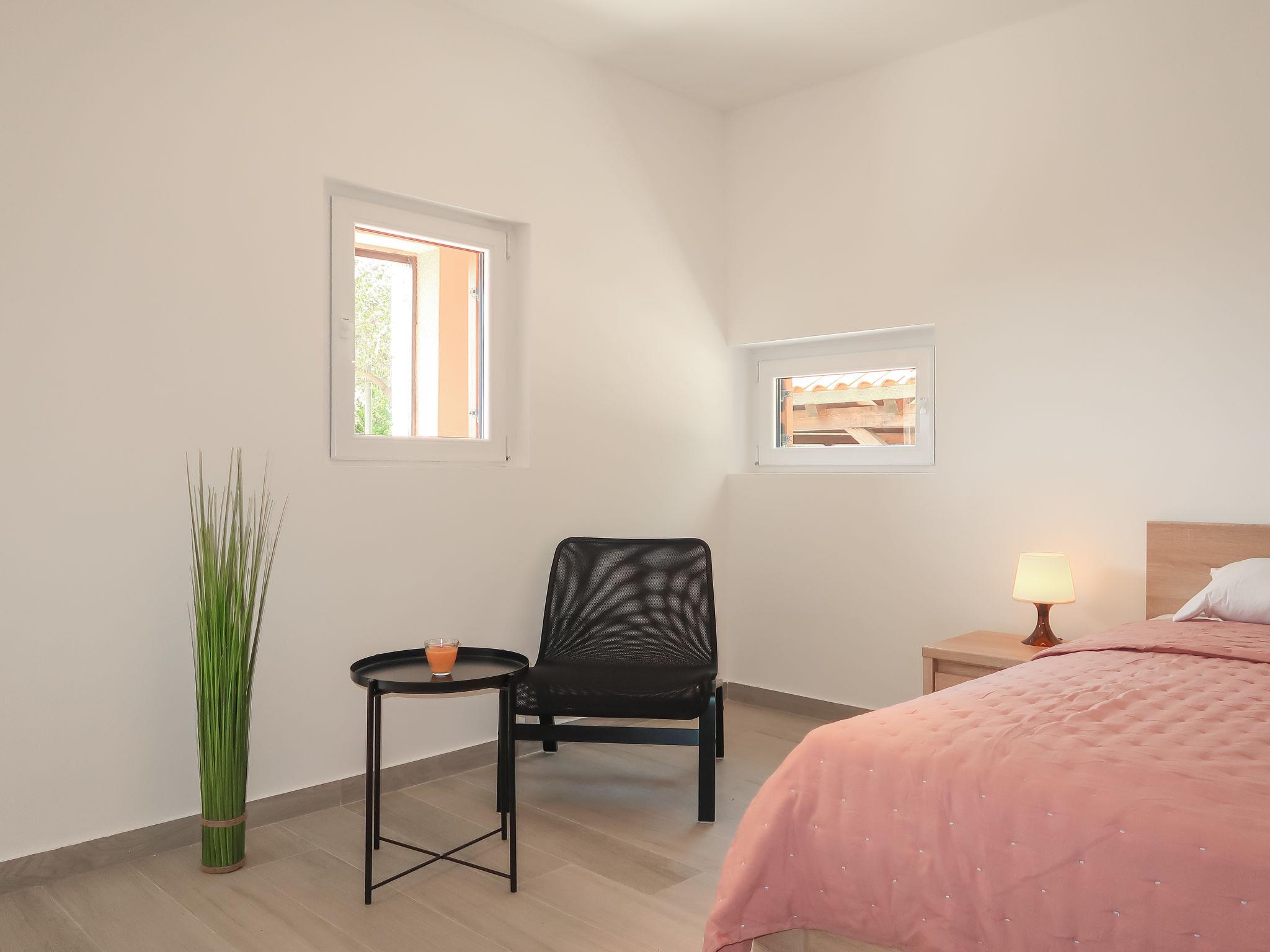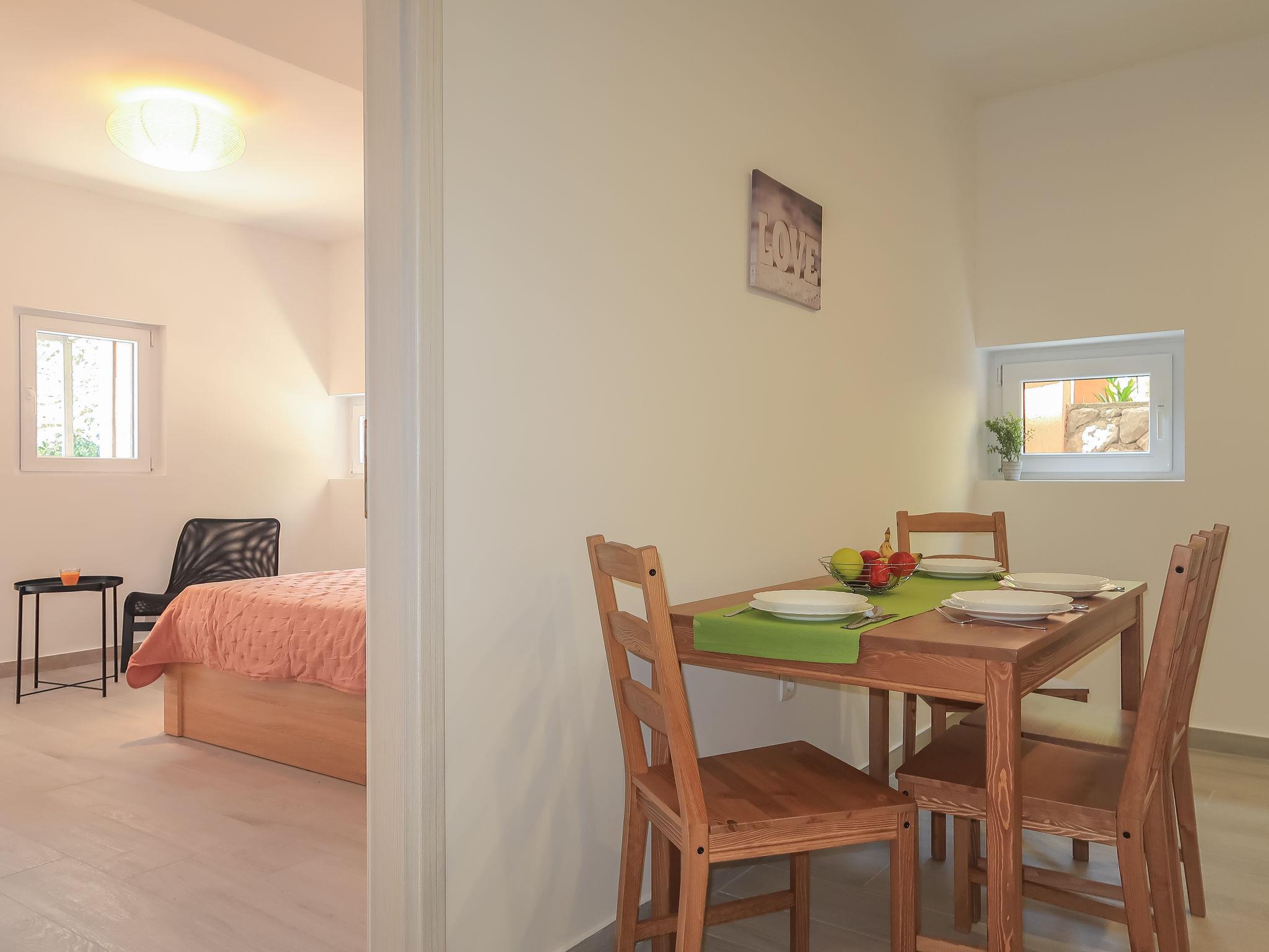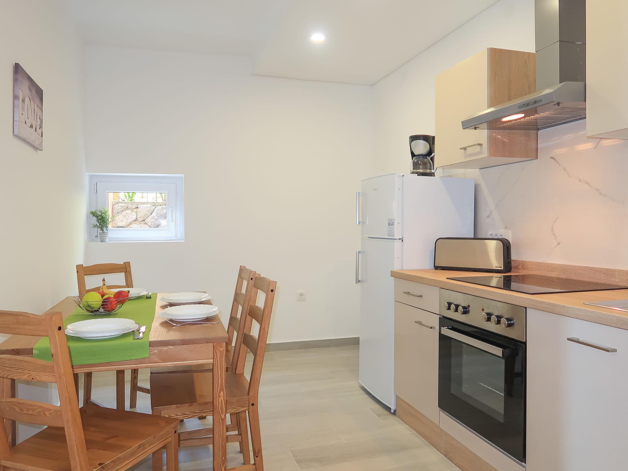 "Gordana", 3-room apartment 70 m2, on the upper ground floor. Living/dining room with satellite TV and air conditioning. 2 rooms, each room with 1 double bed. Exit to the terrace. Open kitchen (oven, dishwasher, 4 ceramic glass hob hotplates, toaster, kettle, freezer, electric coffee machine) with satellite TV. Shower/WC. Air-conditioning (extra). No heating option. Terrace 18 m2. Terrace furniture. Facilities: Internet (WiFi, free). Please note: non-smoking house. 1 small pet/ dog allowed.