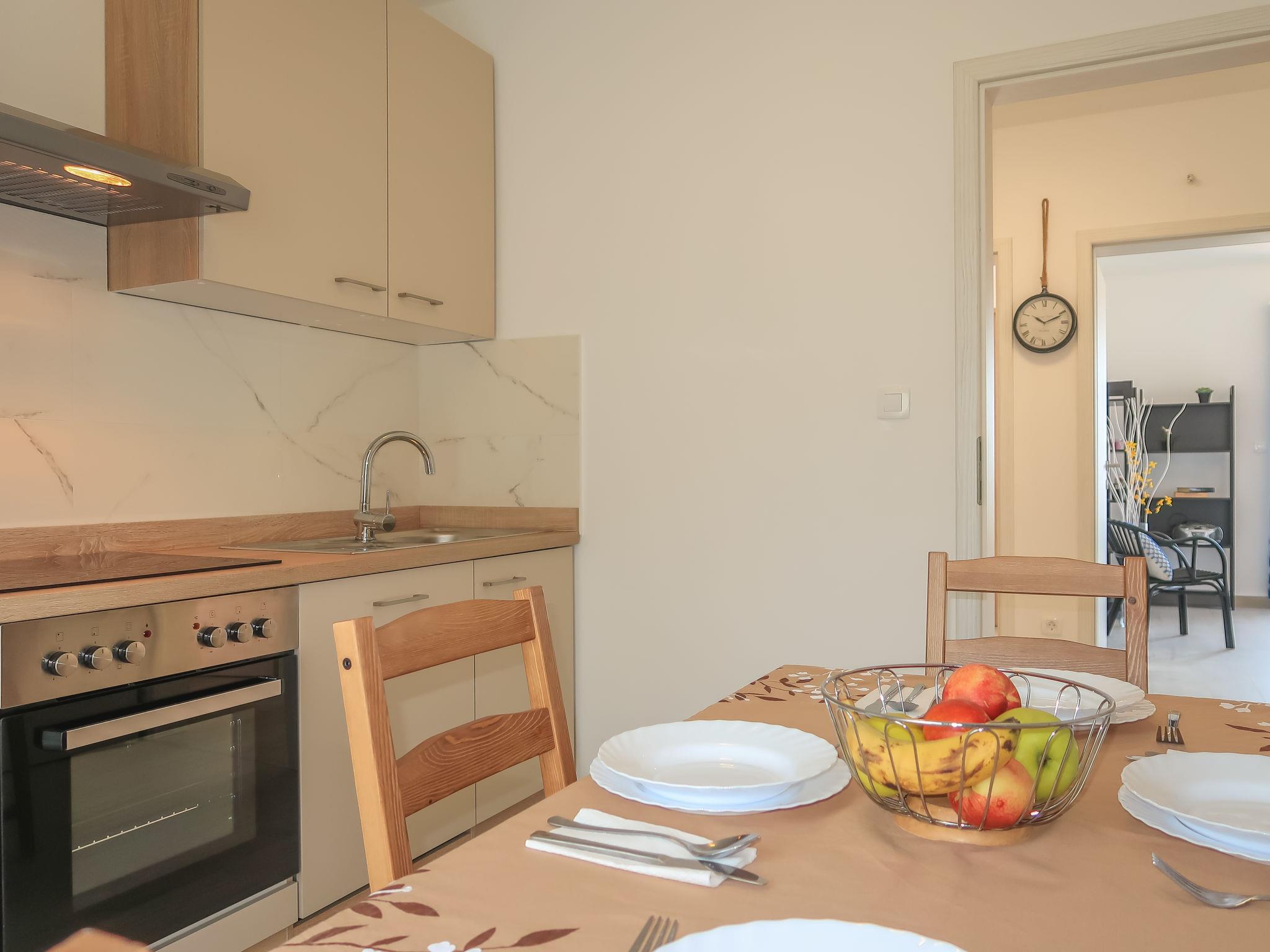 "Gordana", 3-room apartment 83 m2 on 2nd floor. Living/dining room with 1 sofabed, satellite TV and air conditioning. Exit to the balcony. 2 rooms, each room with 1 double bed. Exit to the balcony. Dining room. Exit to the balcony. Open kitchen (oven, dishwasher, 4 ceramic glass hob hotplates, toaster, kettle, electric coffee machine). Bath/WC, sep. WC. Air-conditioning (extra). No heating option. Balcony 18 m2, balcony. Balcony furniture. View of the sea. Facilities: Internet (WiFi, free). Please note: non-smoking house.
