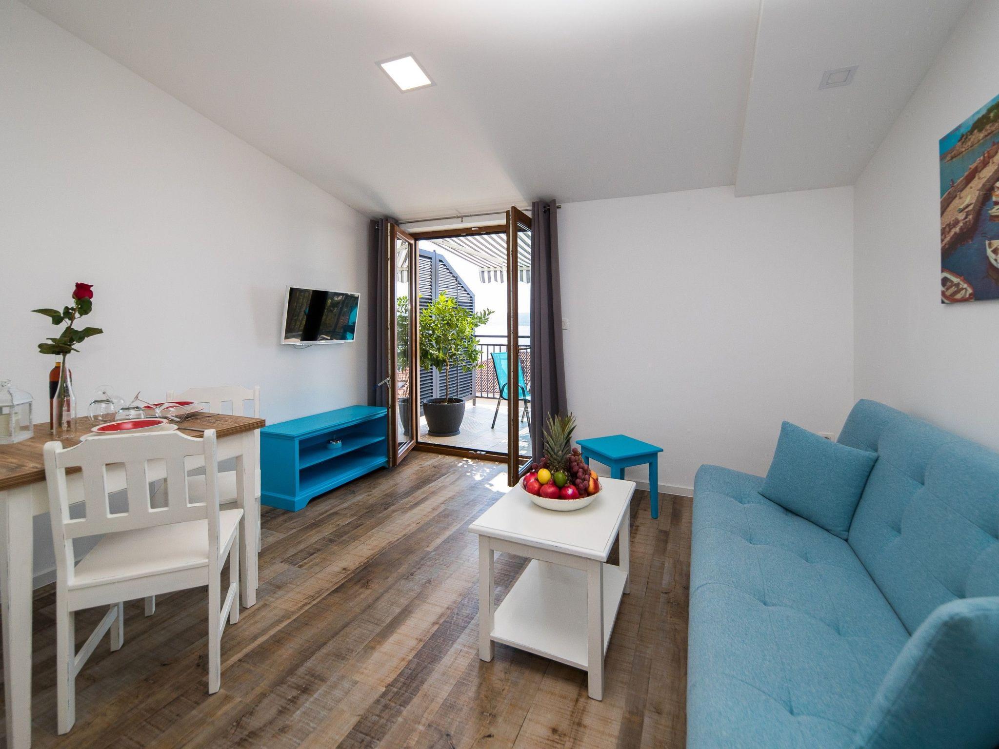 The external attributes of this apartment include accessible public parking on the street, ensuring convenience for those with vehicles. Although the focus is on the seclusion and privacy indoors, the exterior's prominent feature is the inviting balcony. It offers an intimate space to enjoy the tranquility of the sea views, a subtle reminder that you are just a breath away from the Adriatic's azure waters.