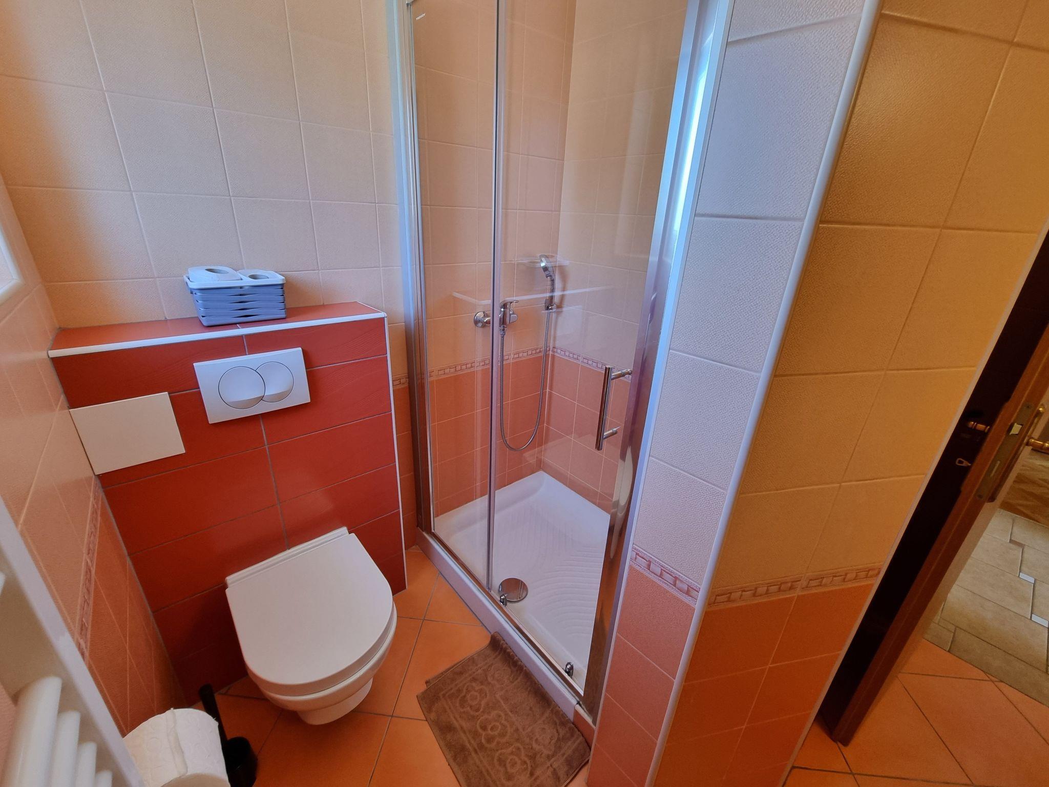 Inside, the apartment boasts a thoughtful arrangement aimed at ensuring your stay is as comfortable as possible. Two well-appointed bedrooms provide versatile sleeping options, with one housing a cozy double bed and the other equipped with two single beds to accommodate various guest needs. The inclusion of a bathroom equipped with a shower and WC enhances the convenience factor, while the living area melds seamlessly with the dining space, featuring a sleeping couch for two, thereby creating an inviting atmosphere for relaxation or enjoying meals together.