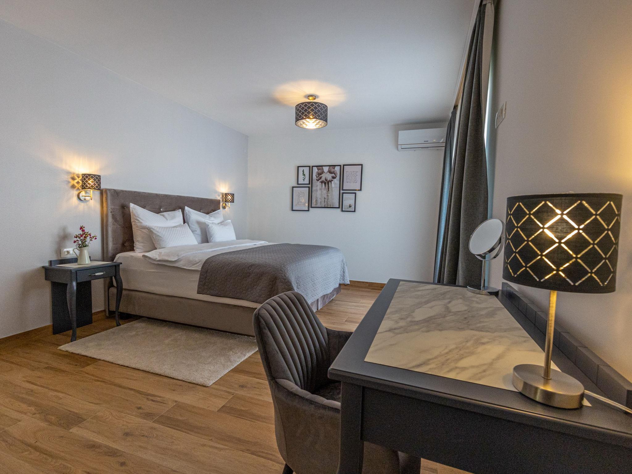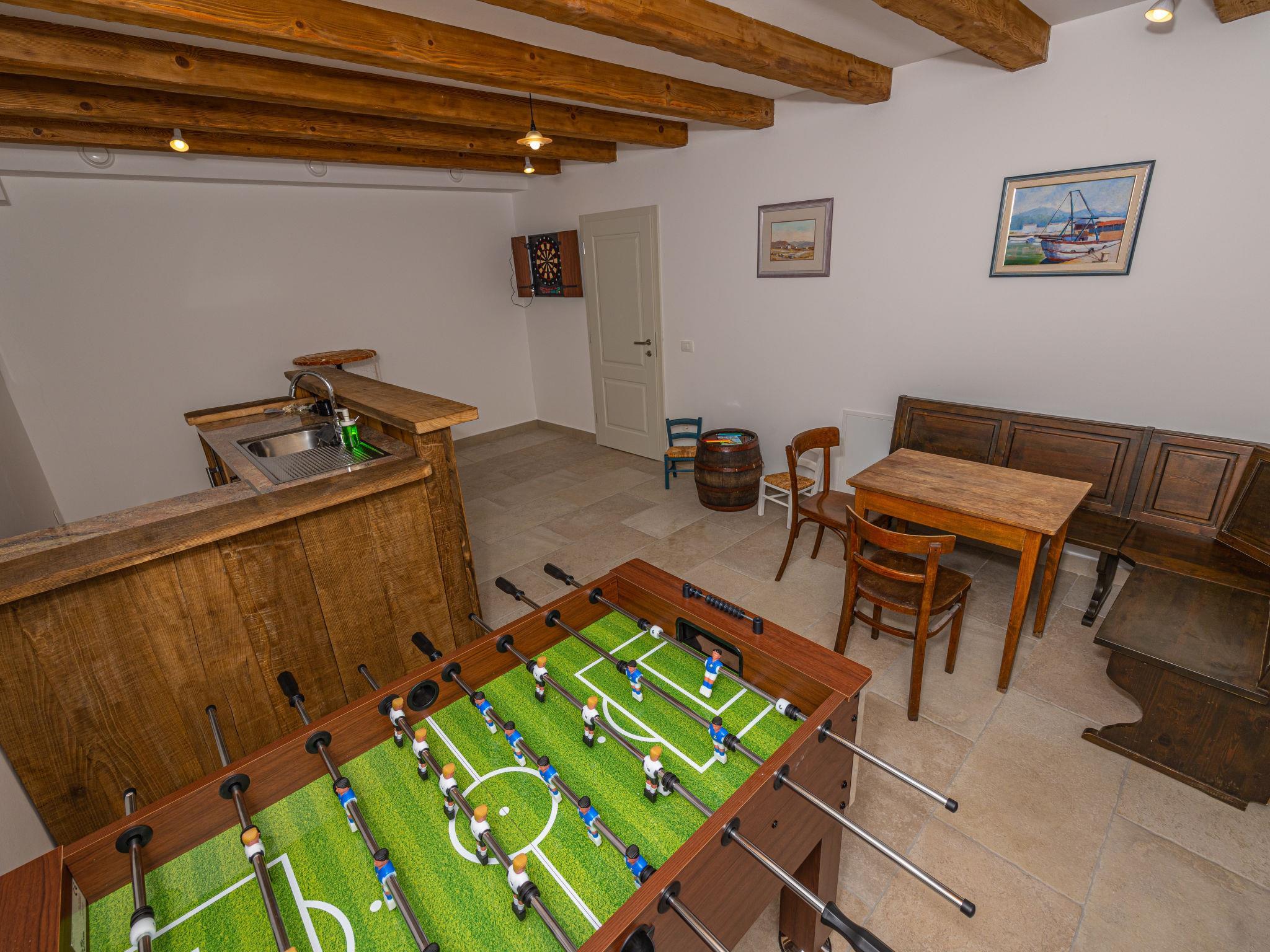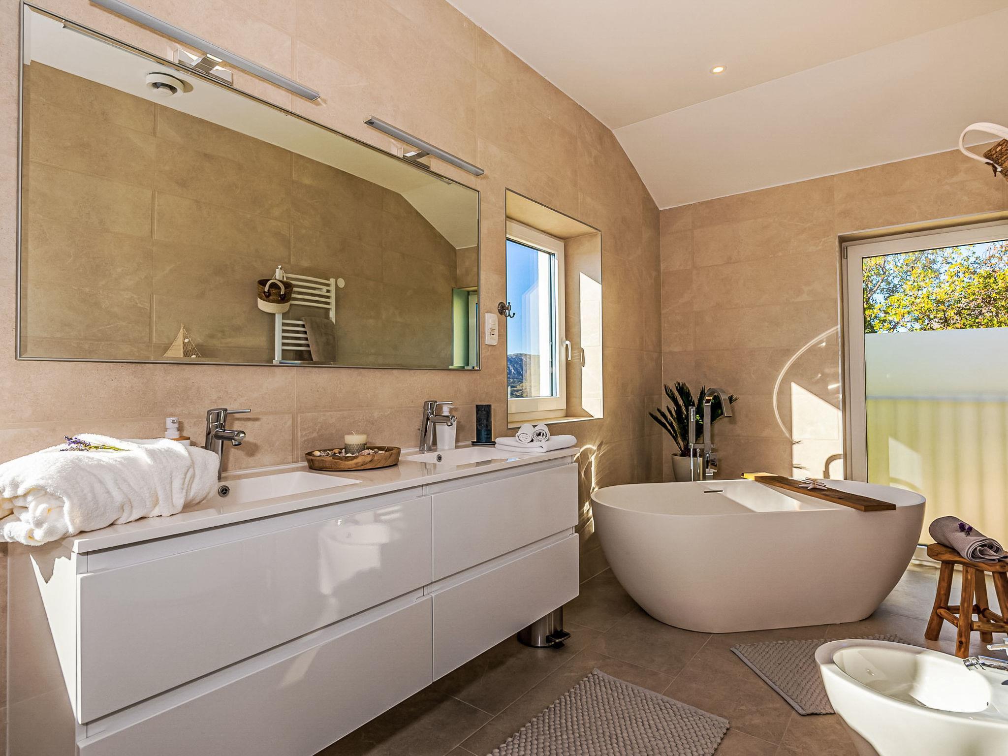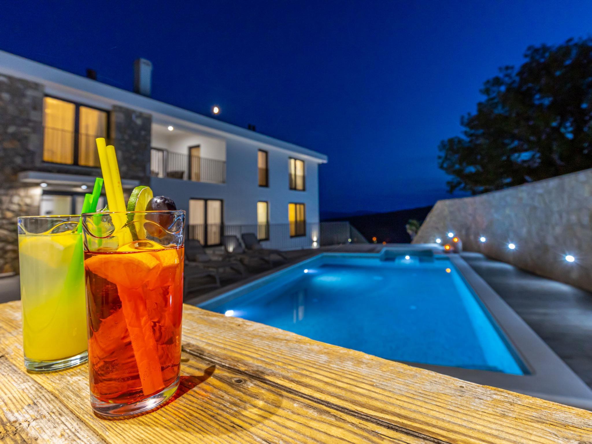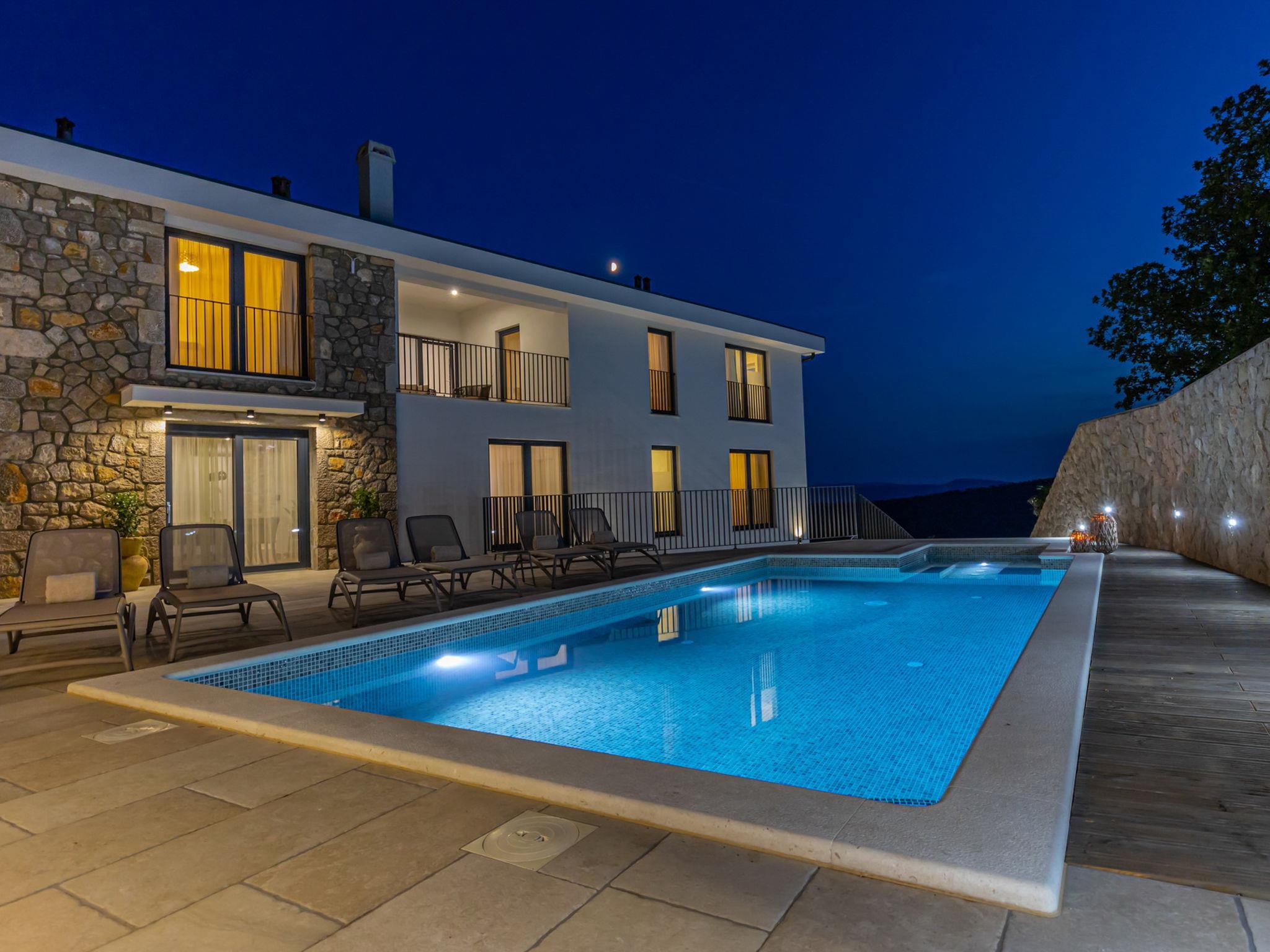Bribir 9 km from Crikvenica: Villa "Vila 21", 3 storeys in 2021. Above Crikvenica 500 m from the centre of Bribir, in a sunny, elevated position, 7 km from the sea. Private: property 650 m2 (fenced), swimming pool angular, heated (35 m2, seasonal availability: 15.May. - 31.Oct.) with internal staircase and shutter cover. Outdoor shower, badminton, terrace (70 m2), garden furniture, barbecue (swing), pool maintenance by the owner/gardener. In the house: internet access, sauna, massage (extra). Hot tub, relaxation room, spa area, table tennis, table football, sun terrace, air conditioning, washing machine. Roofed, parking (for 5 cars) at the house on the premises. E-charging station. Shop 500 m, supermarket 4 km, restaurant 4 km, bus stop 550 m, pebble beach 4 km, public bathing area 9 km. Groups of teenagers on request only. Please note: airfield 28 km from the property. For private use: Pool with hydro massage, internal staircase, heated (35m2, 140 cm deep, 15.05.-31.10.). Helipad on the property.