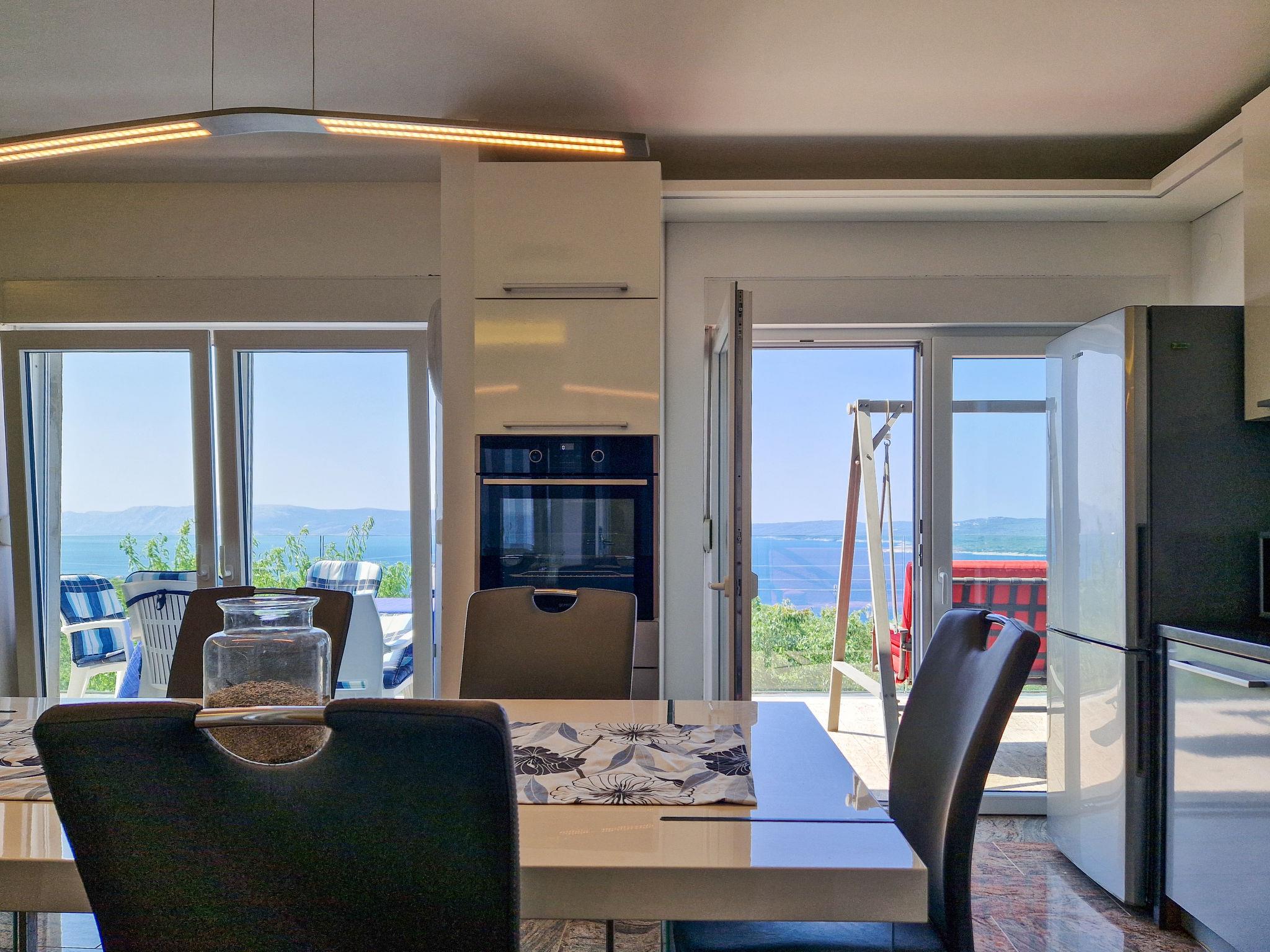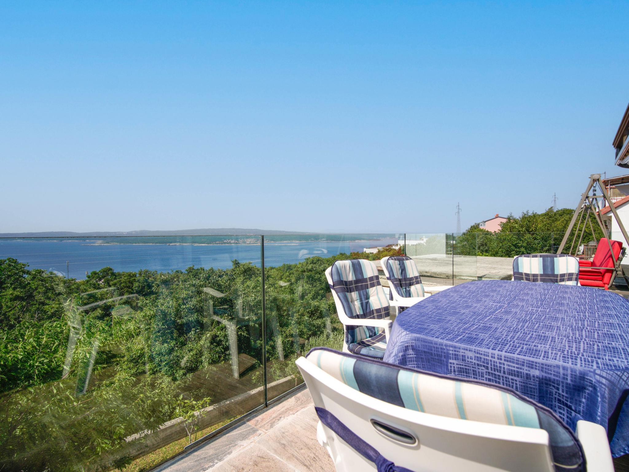 4-room apartment 78 m2 on 1st floor. Living/dining room with satellite TV and air conditioning. Exit to the terrace. 1 room with 1 bed (90 cm, length 200 cm). 1 room with 1 french bed (140 cm, length 200 cm). 1 room with 1 french bed (160 cm, length 200 cm). Open kitchen (oven, dishwasher, 2 induction hot plates, toaster, kettle, microwave, freezer, electric coffee machine). Exit to the terrace. Shower/WC. No heating option. Terrace 20 m2. Terrace furniture. Beautiful view of the sea. Facilities: washing machine, iron, hair dryer. Internet (WiFi, free). Please note: maximum 1 pet/ dog allowed. Fire extinguisher.