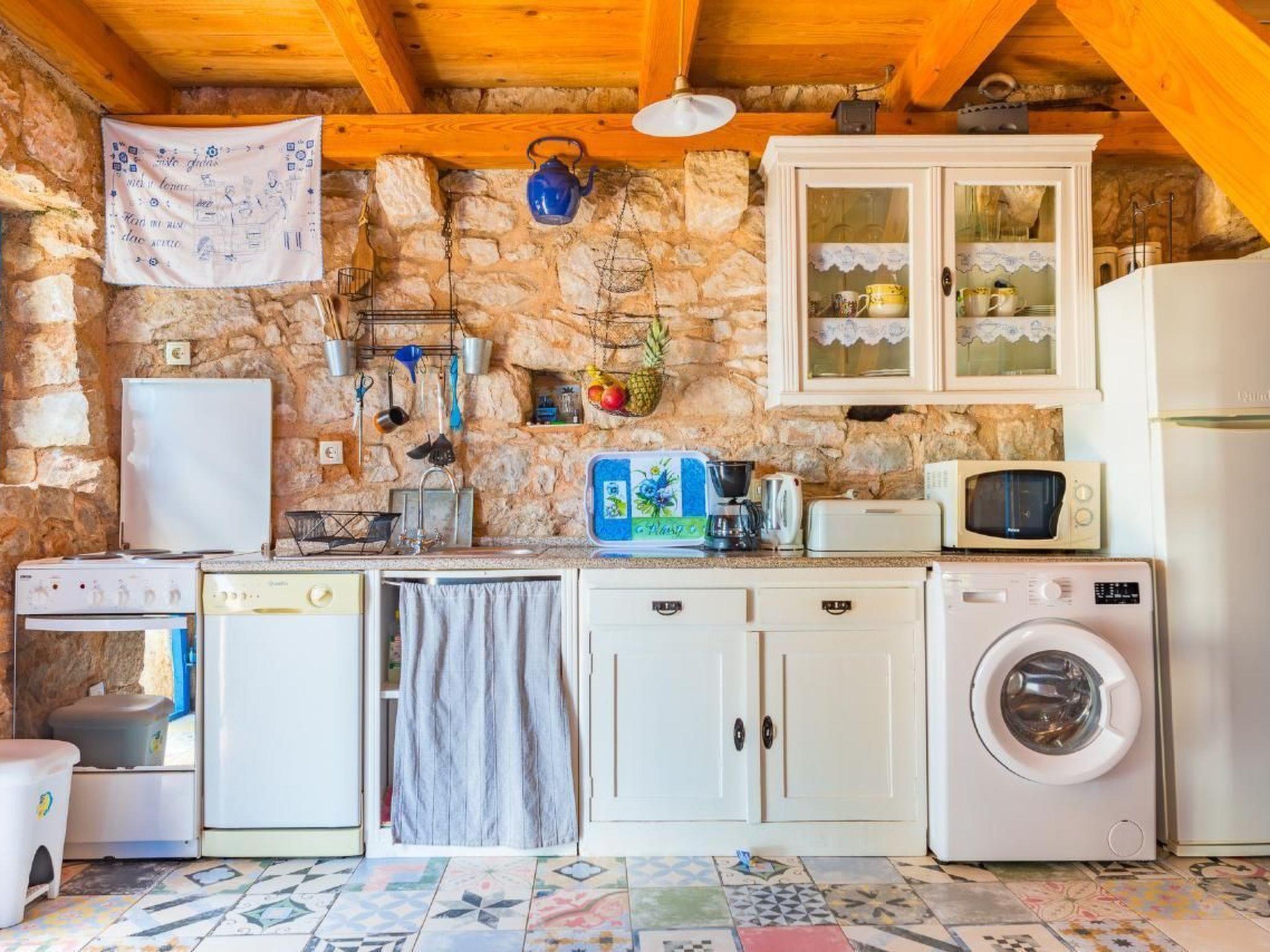 The villa, a masterpiece of renovation, blends traditional architecture with contemporary comforts. It maintains its original thick stone walls and beam ceilings from the late 19th century while incorporating modern amenities. The interior is cheerfully furnished and practically designed, ensuring all needs are met for a memorable holiday. It features an open-plan kitchen that leads to a large shady terrace, creating a seamless integration of indoor and outdoor living spaces. The bedroom, located upstairs, offers a breathtaking view of Selce and the Adriatic Sea, enhancing the villa's romantic allure.