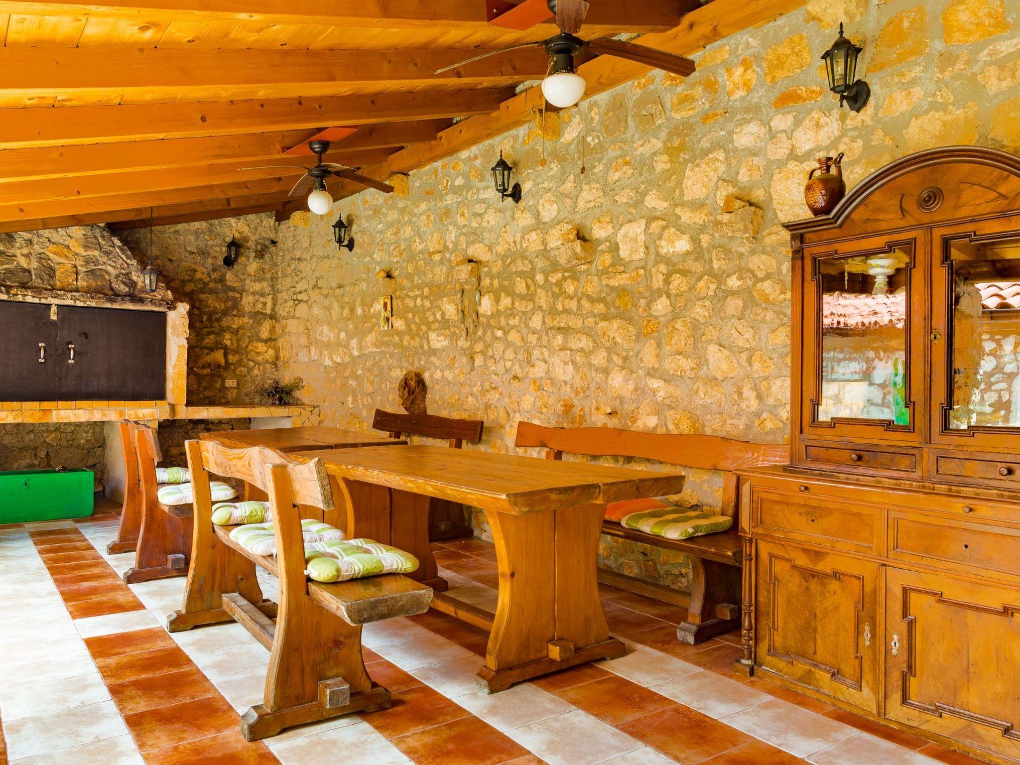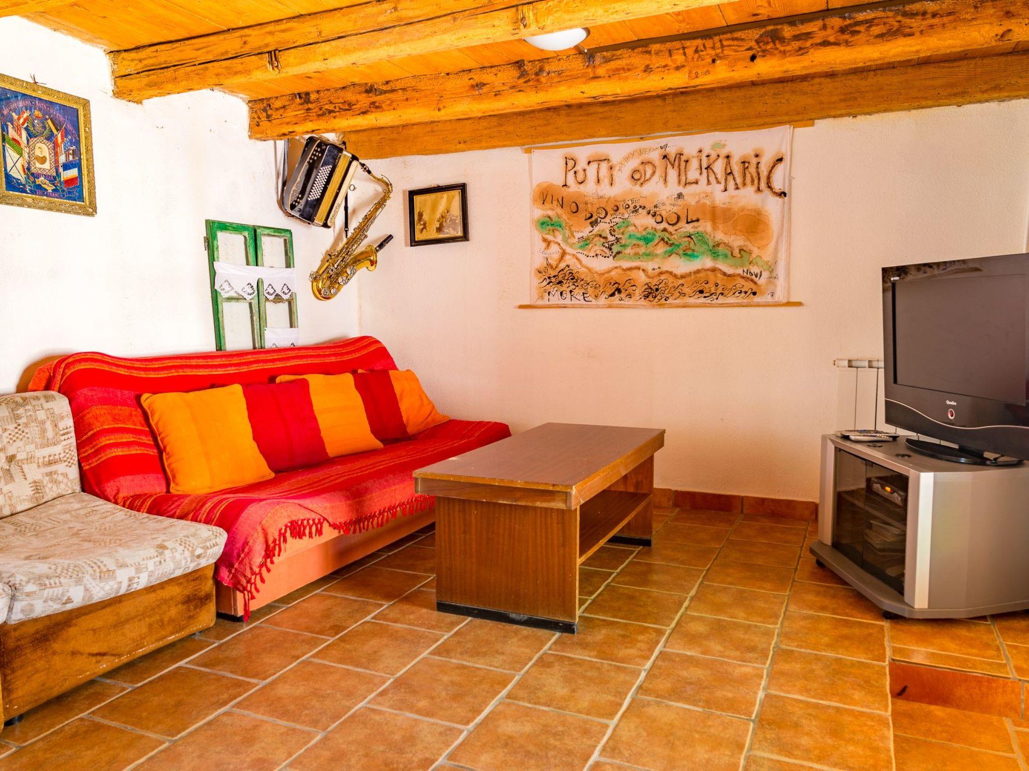 Inside, Villa Vesna does not disappoint. Each of the four bedrooms boasts an en-suite shower, attractive paintings, colorful fabrics against white walls, wooden floors, and breathtaking views of the Adriatic Sea, ensuring every stay is both comfortable and picturesque. The villa's thoughtful layout includes two double bedrooms on the ground floor and two on the upper floor, all designed to provide guests with the utmost privacy and comfort. A traditional style lounge sits on an intermediate floor, offering a cool retreat in the summer and a cozy spot by the fireplace in winter, complemented by a spacious kitchen that leads out to a large covered outdoor eating area complete with BBQ facilities.