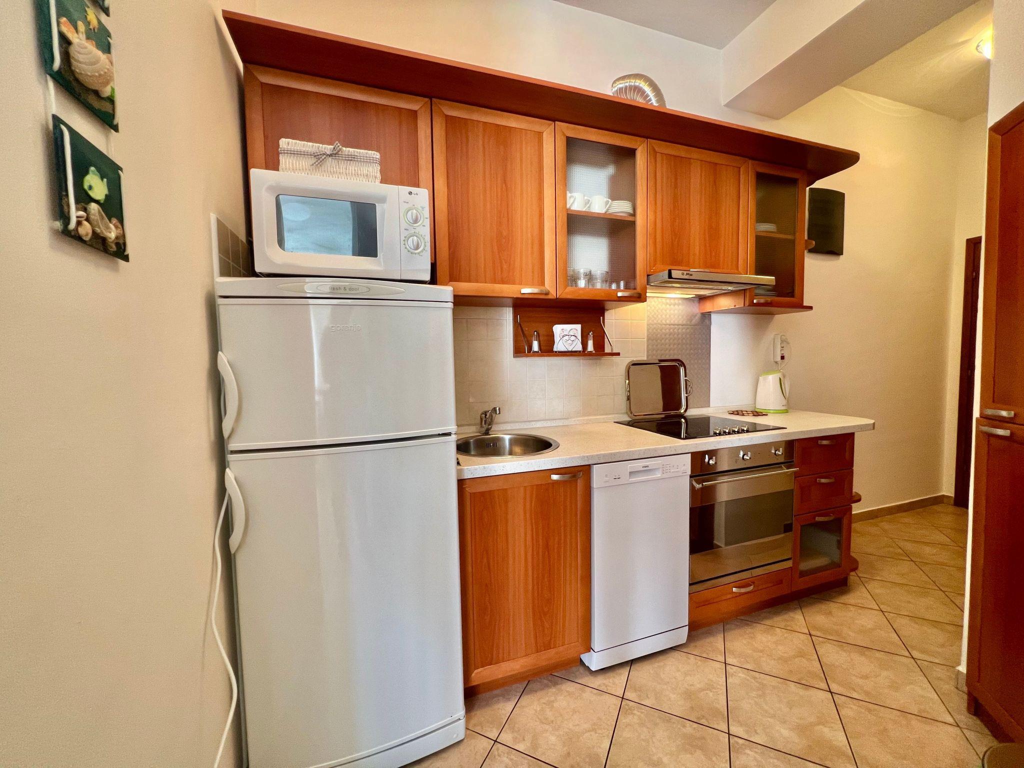 The holiday flat is in an excellent location in Crikvenica, just a few steps from the water. A grocery shop is just 50 metres away, so you can easily get everything you need. The nearest town centre is only 700 metres away and offers a variety of restaurants, cafés and shopping facilities. Dogs and their owners are also well catered for, with a dog beach just 100 metres away.
