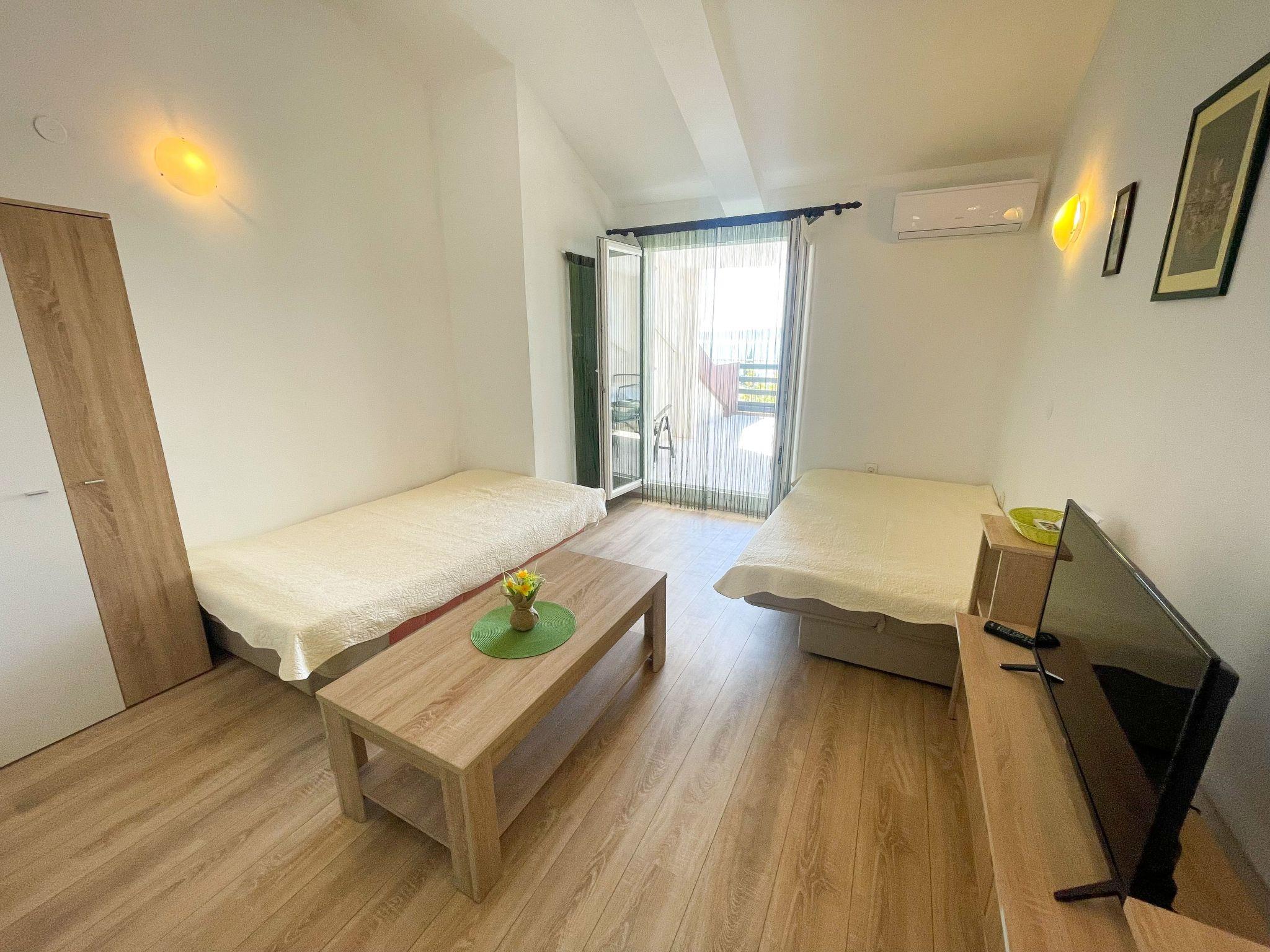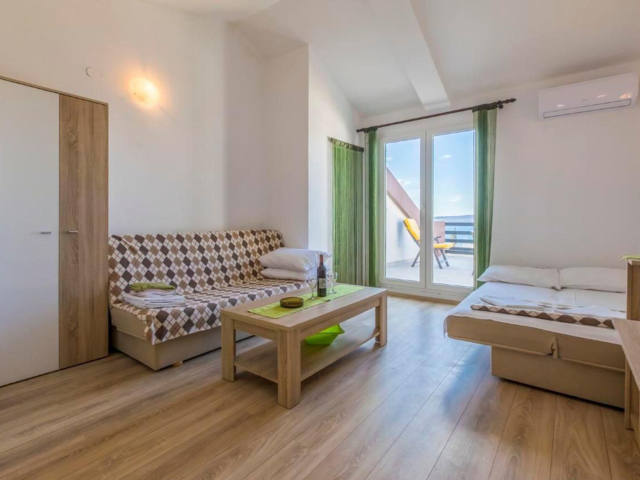Enjoy a wonderful view of the sea from the balcony of this holiday accommodation in the town of Crikvenica. The 25 m² holiday flat on the 2nd floor can accommodate up to four people. It is a studio flat for four people. It has two new sofas for 4 people, a bathroom and a living/dining room with kitchen. Outside, the furnished balcony invites you to linger with a view of the sea. The accommodation is equipped with air conditioning, WLAN internet. There is a TV, but without SAT programmes. Barbecuing is allowed, in consultation with the owner. Parking for your car is available on the property. Shops and restaurants as well as the nearest beach can be reached within a few minutes on foot. The centre of the resort is approx. 400 m away.Brief description 1Number of kitchens : 1SurroundingsLeisure facilities : car rental, bicycle rentalSports facilities in the area : basketball, football pitch, bicycle tours, tobogganing, sailing, sports centre, surfing, diving, tennis, water skiing