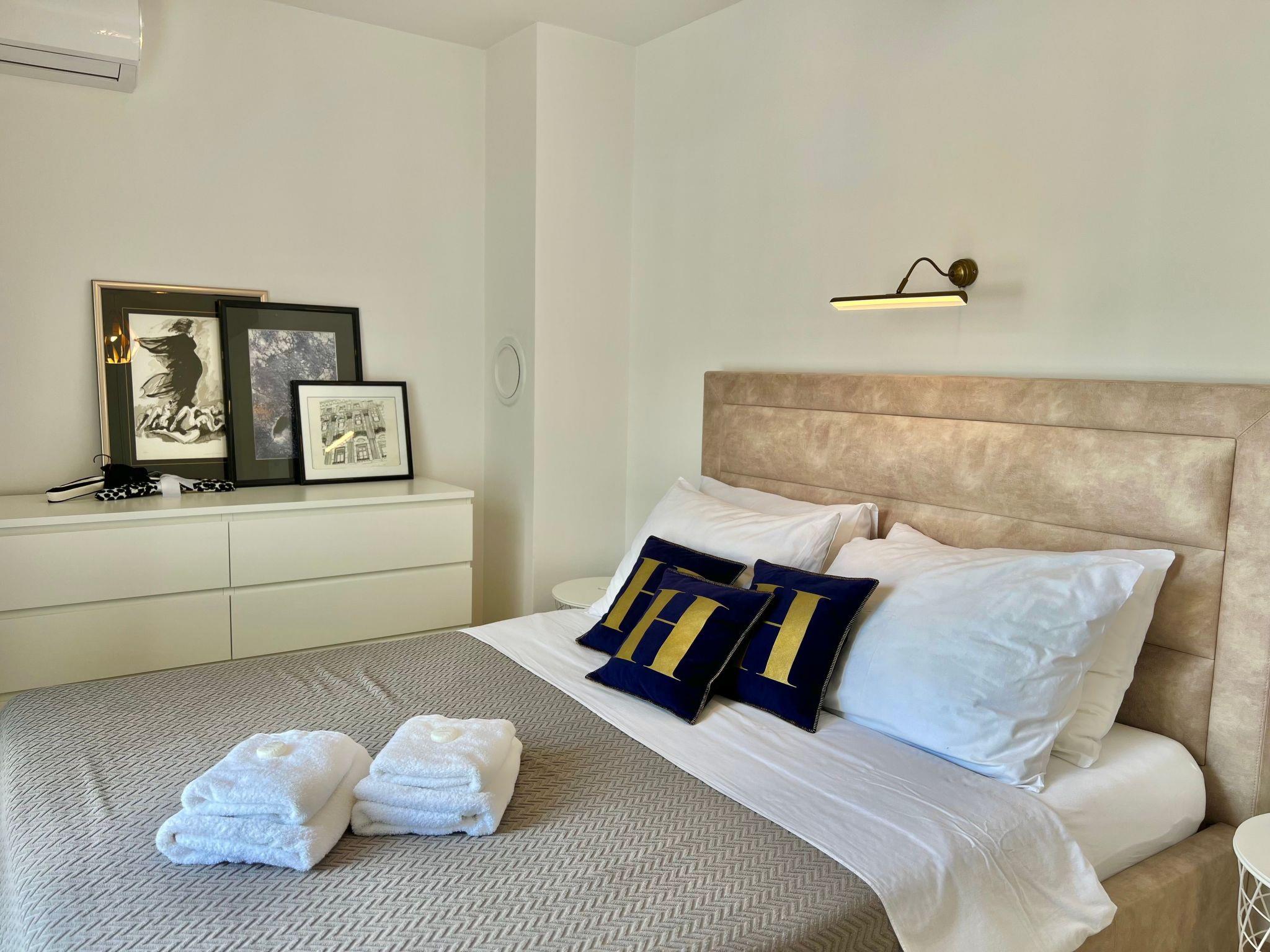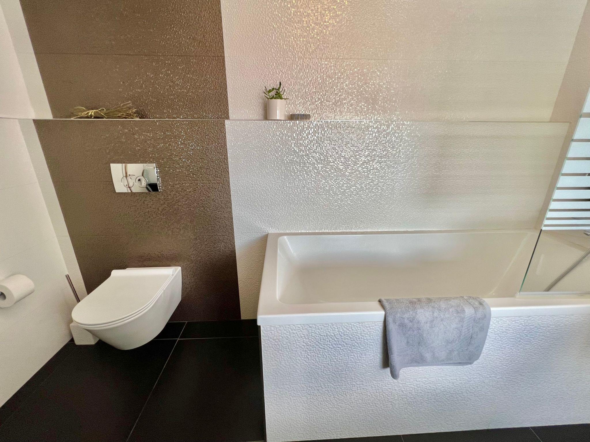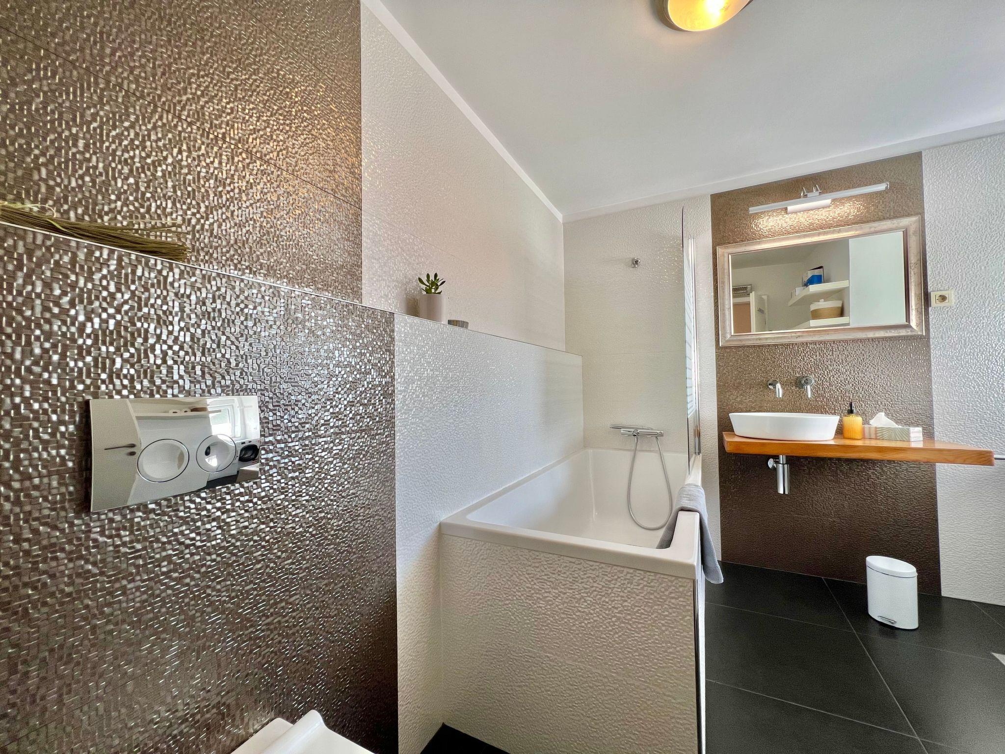 Inside, you will find a practical combination of a hallway, a fully equipped bathroom, an additional toilet and two inviting bedrooms. In addition, a fully equipped kitchen and a cosy dining area provide the ideal place for shared meals. You can spend relaxing hours in the adjoining living room. The entire flat is equipped with air conditioning, ensuring a pleasant indoor climate all year round. The amenities of a washing machine and tumble dryer, both for your sole use, as well as a dishwasher and kettle round off the offer.