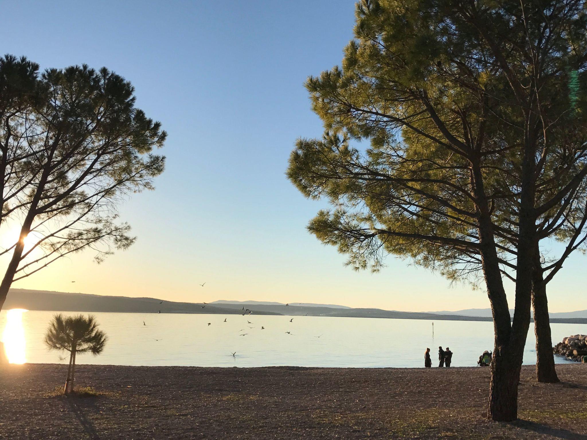 Step outside to the 36m2 furnished terrace where awe-inspiring views over the island of Krk beckon. With two awnings to shield you from the summer sun, the terrace offers a serene spot to unwind. This top-floor retreat, boasting a private entrance and air conditioning throughout, features a cozy sitting area perfect for lounging and an additional breakfast nook overlooking the sea. Sat TV, bedding, towels, kitchen equipment including a microwave and dishwasher, and a “safe kit” with protective gear ensure a well-appointed outdoor living space. A private, video-monitored parking space within the villa grounds, and the option to use the barbecue in the garden upon request, adds to the outdoor amenities.