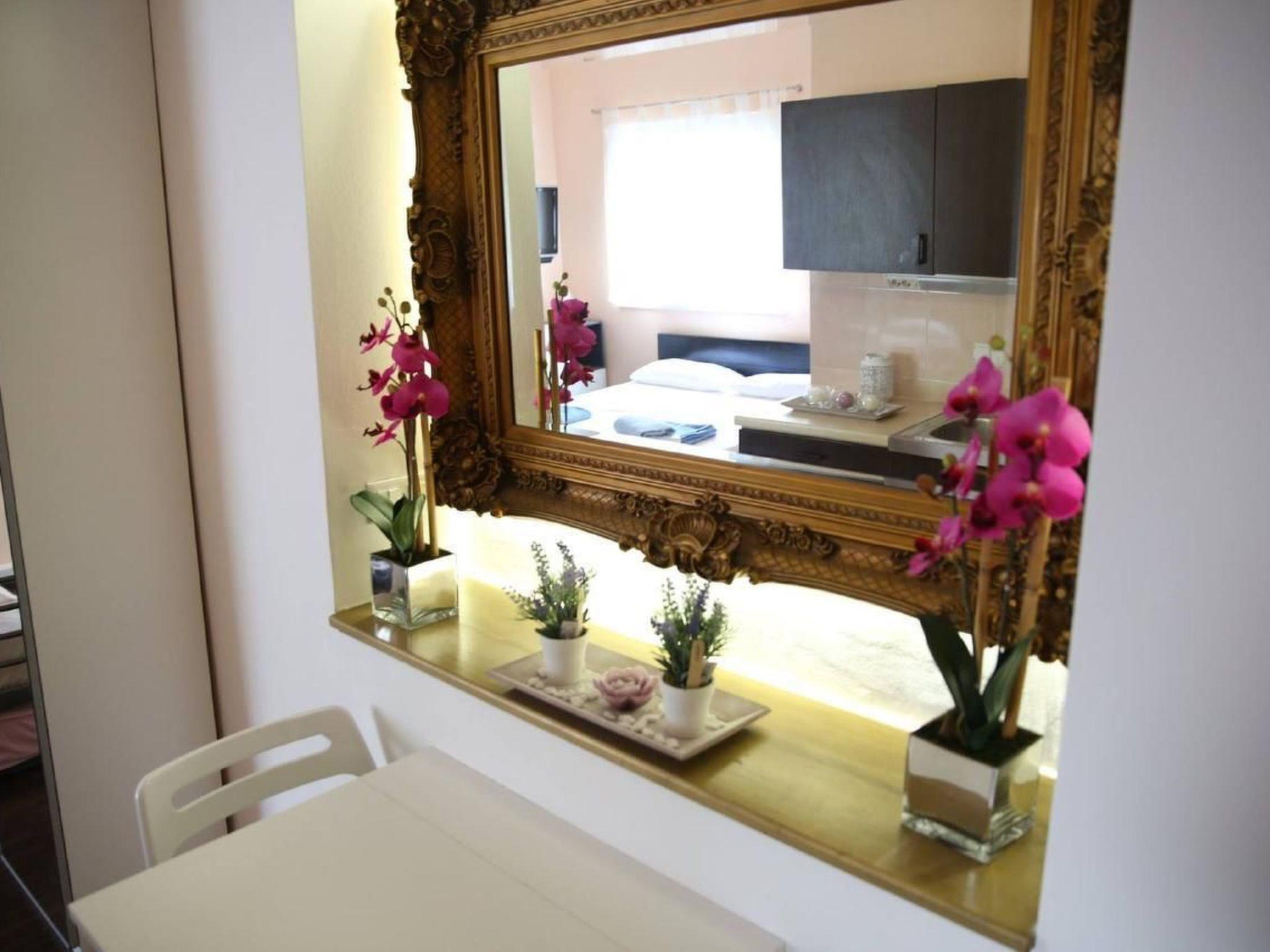 The studios are equipped as follows: Studio 1 - combined living/bedroom with bunk beds for 3 people, kitchenette and separate bathroom