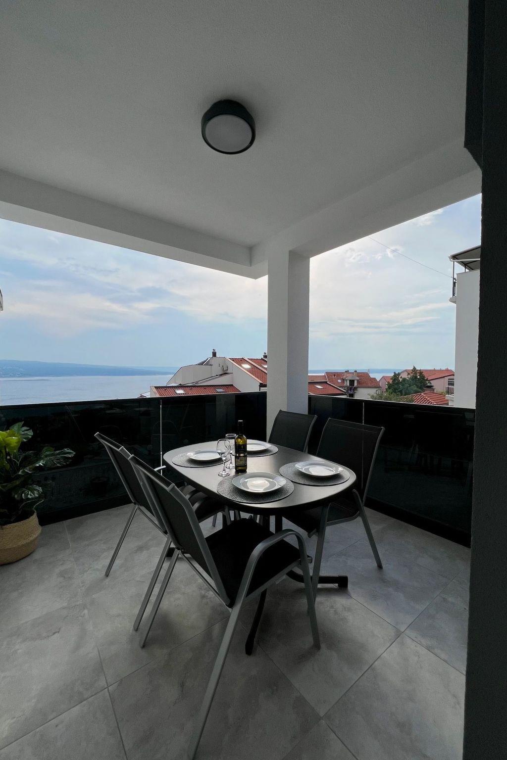 You can enjoy meals outdoors on the balcony at the round garden table with four outdoor chairs, with a beautiful sea view of the island of Krk.